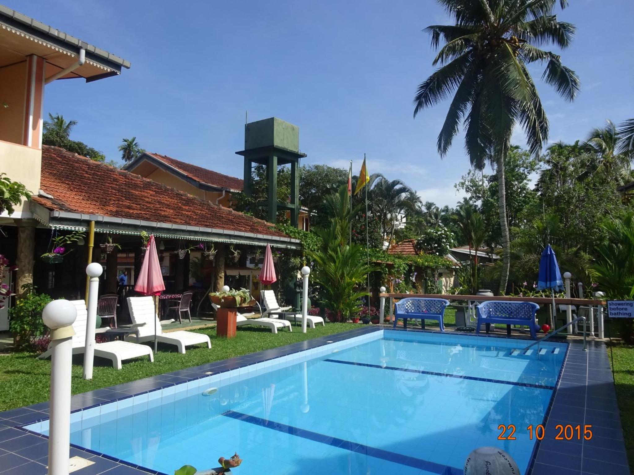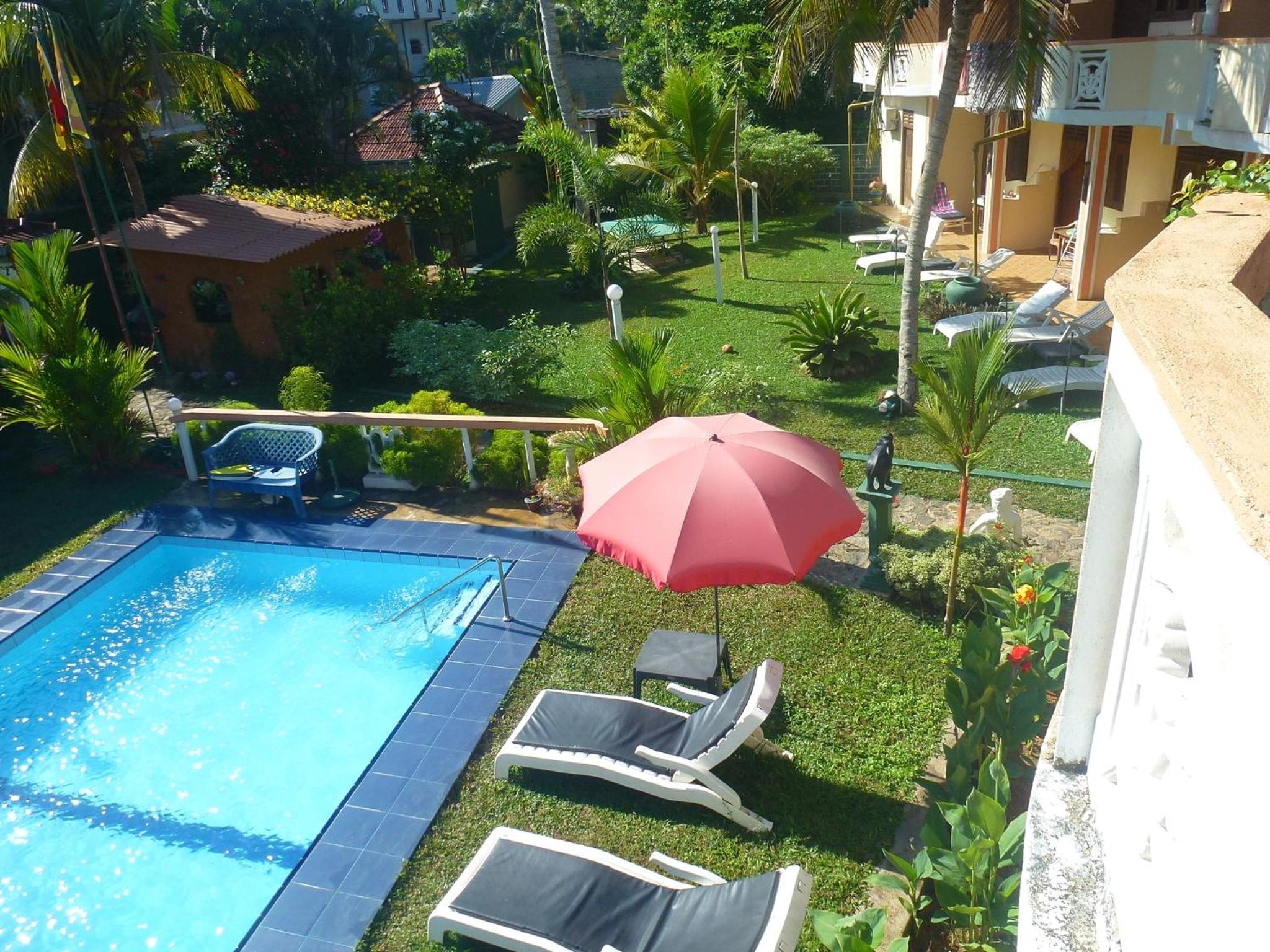 Hilda Guest House in Hikkaduwa offers a serene escape with an inviting outdoor pool and picturesque garden views. Relax in the tranquil atmosphere and soak in the beauty of the surroundings from the comfort of your guestroom's balcony.