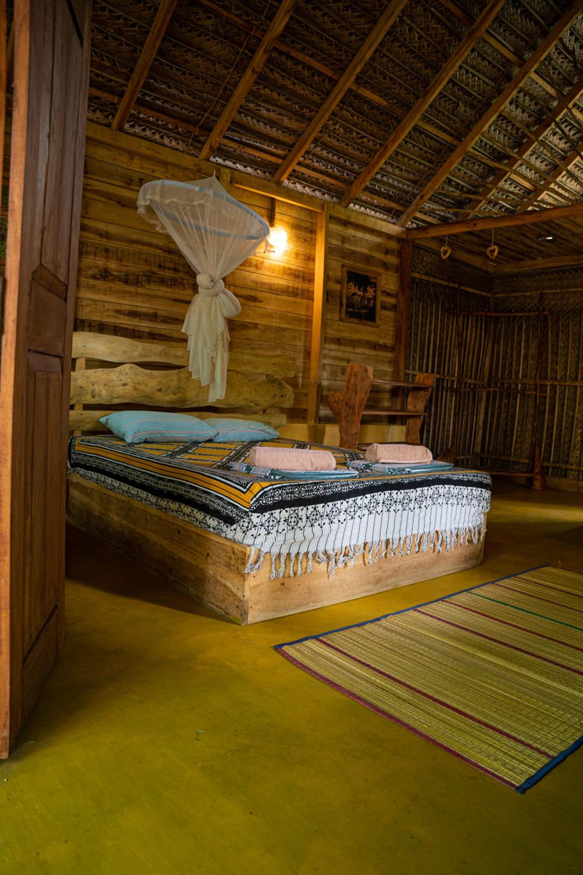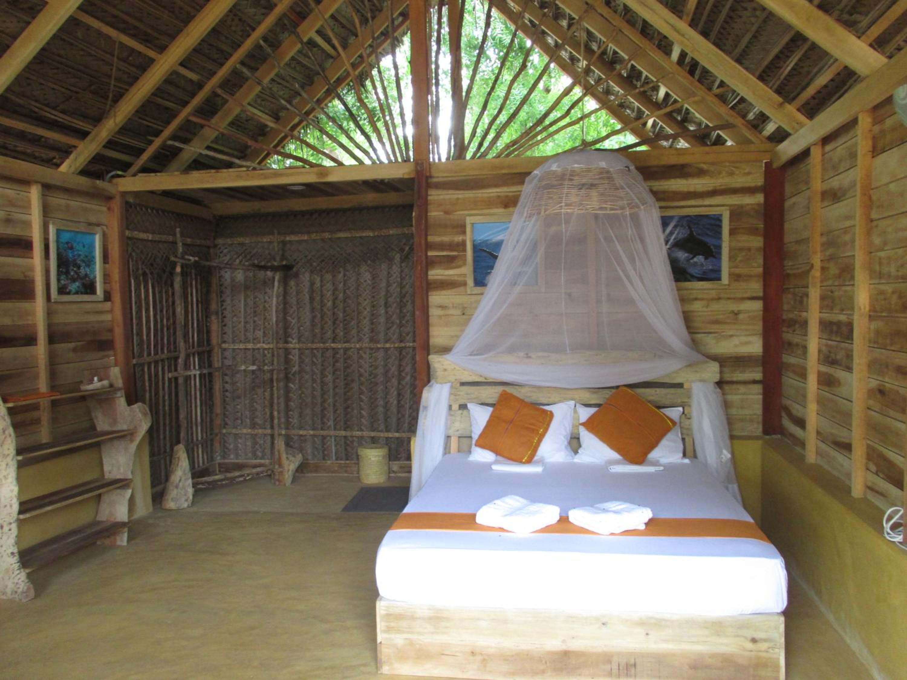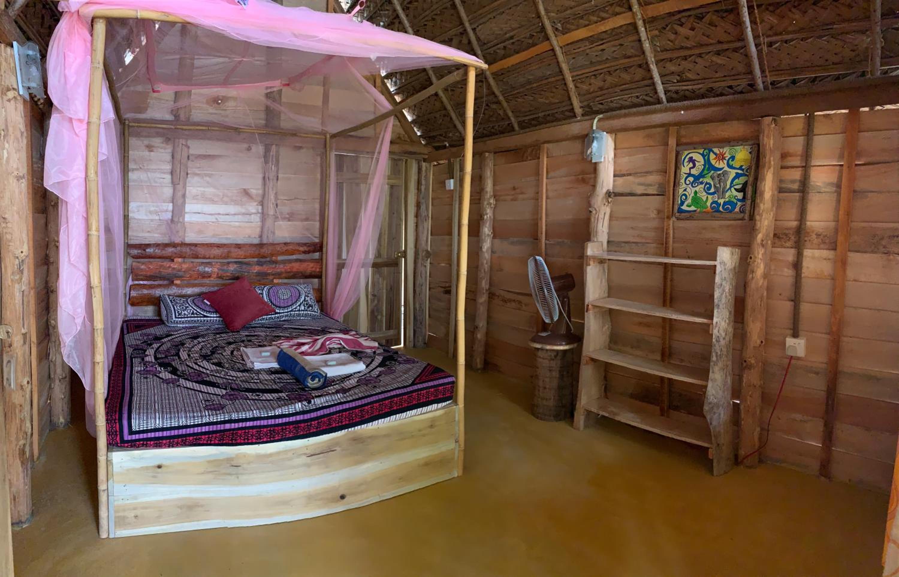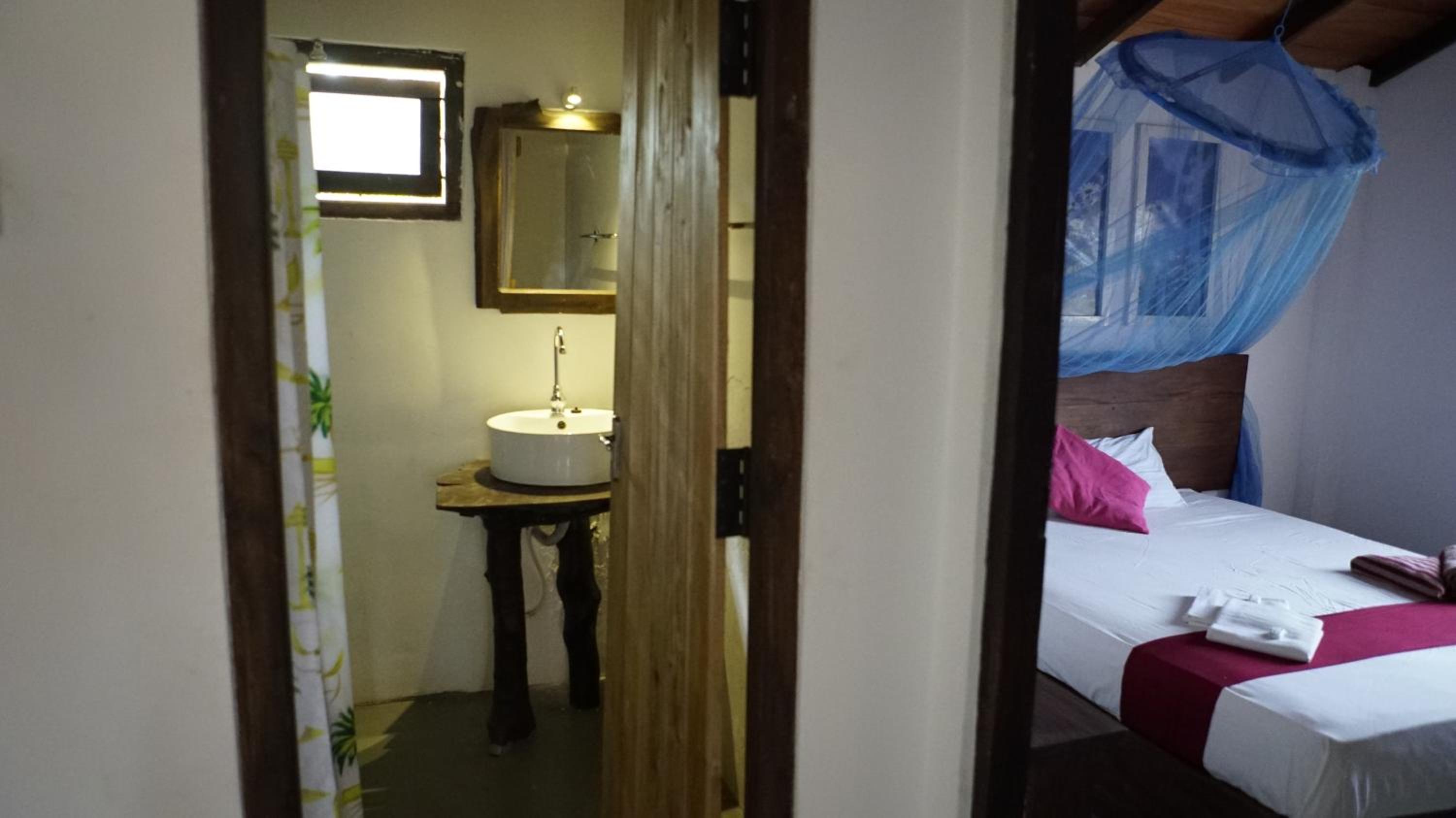 Die halboffenen Bungalows sind einfach eingerichtet und erlauben durch ihre Bauweise natürlich keine Klimaanlage im Zimmer. Der vorhandene Ventilator ist jedoch mehr als ausreichend, sodass in der Nacht nicht auf guten Schlaf verzichtet werden muss. Das Moskitonetz hat seinen Job ebenfalls hervorragend gemeistert, vor allem dann, wenn es (wie empfohlen) unter die Matratze gesteckt wird. Ja, ein paar Insekten und Geckos verirren sich im Zimmer und das Bad befindet sich wie in der Beschreibung unter freiem Himmel, es ist aber trotzdem alles sehr sauber und im Bungalow werden Räucherstäbchen und Spiralen gegen Mücken zur Verfügung gestellt.