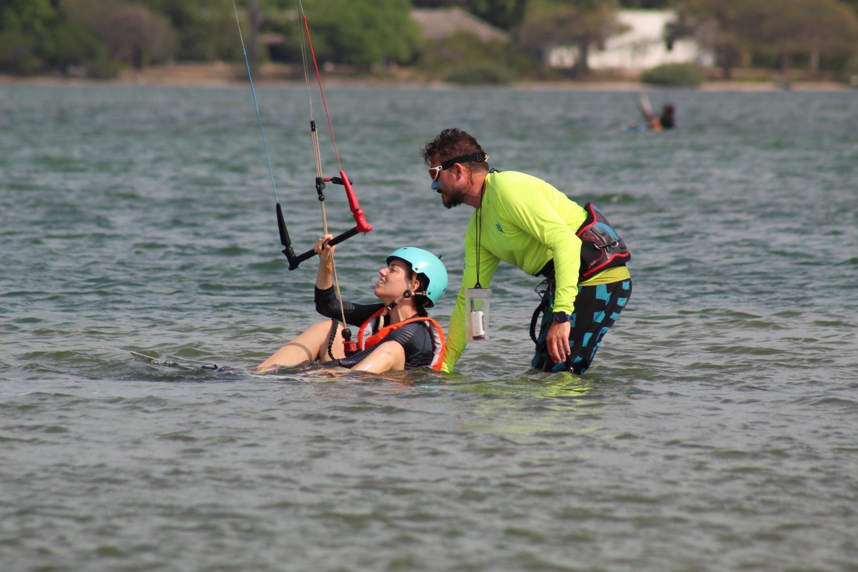 No se puede levantar el kite desde el hotel, hay que ir en barco en frente. Hay poco espacio y desventa. Además la laguna y donde está situado en general es un culo de saco donde el viento rachea mucho y navegar es muy incómodo