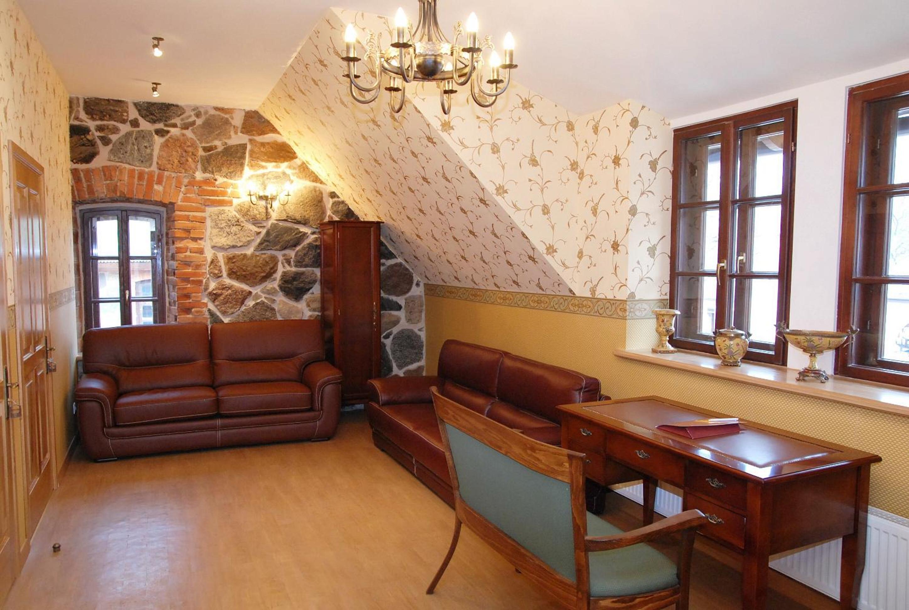 Step back in time at Vecgulbenes muiža, a beautifully renovated 19th-century manor offering comfortable rooms with antique furniture and unique atmospheres. Some rooms even feature original masonry walls, adding to the historic charm.