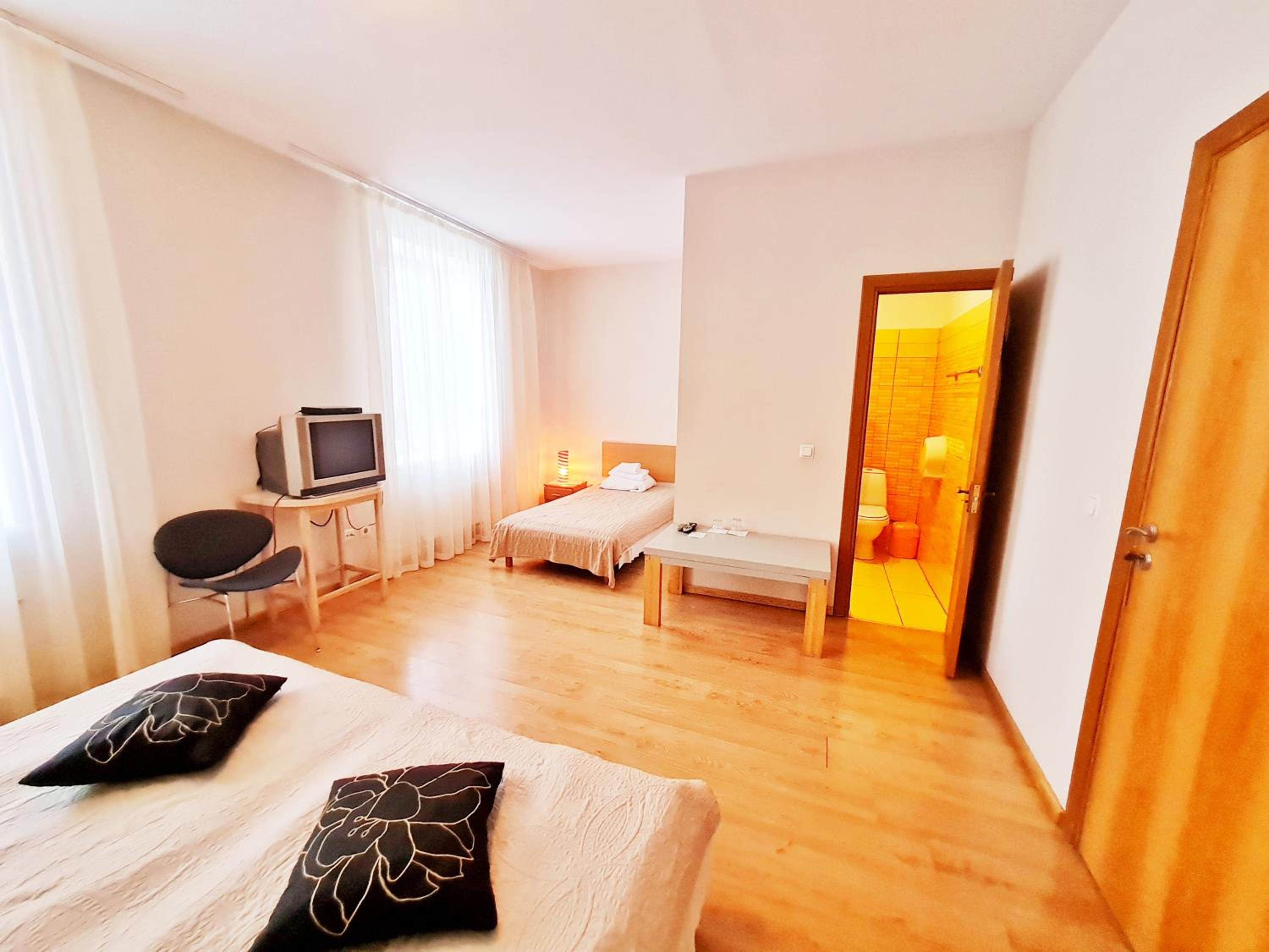 Experience comfort in our modern rooms featuring free Wi-Fi, wooden floors, satellite TV, and private bathrooms. Some rooms even boast private balconies for a tranquil outdoor retreat.