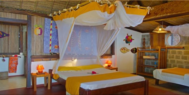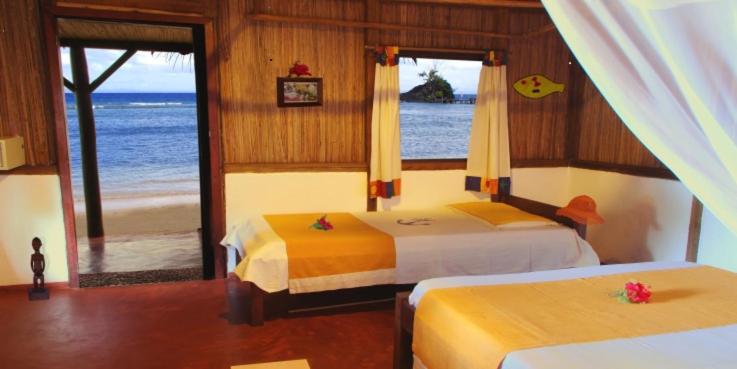 La disponibilité du propriétaire, informations, location de scooters avec son partenaire de location,emplacement avec sa piscine vue sur mer,au bout du ponton ou on peut faire du snorkeling.les chambre spacieuse avec accès direct sur la plage.le calme et le petit déjeuner et la restauration qui est vraiment formidable.je recommande.
