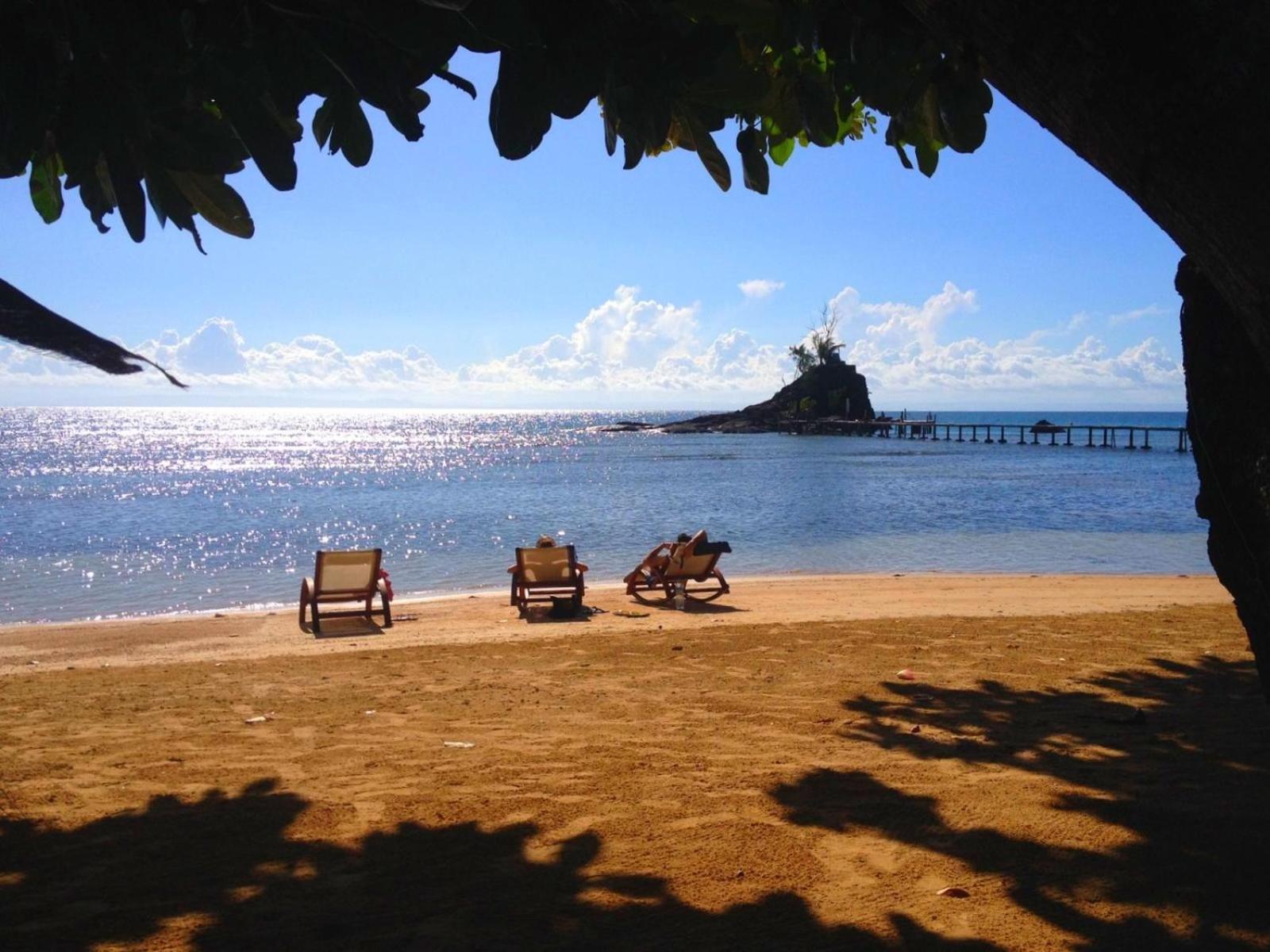Le bungalow spacieux et propre les pieds dans l eau, le personnel tres sympathique, la grande et belle véranda, les repas, le calme...