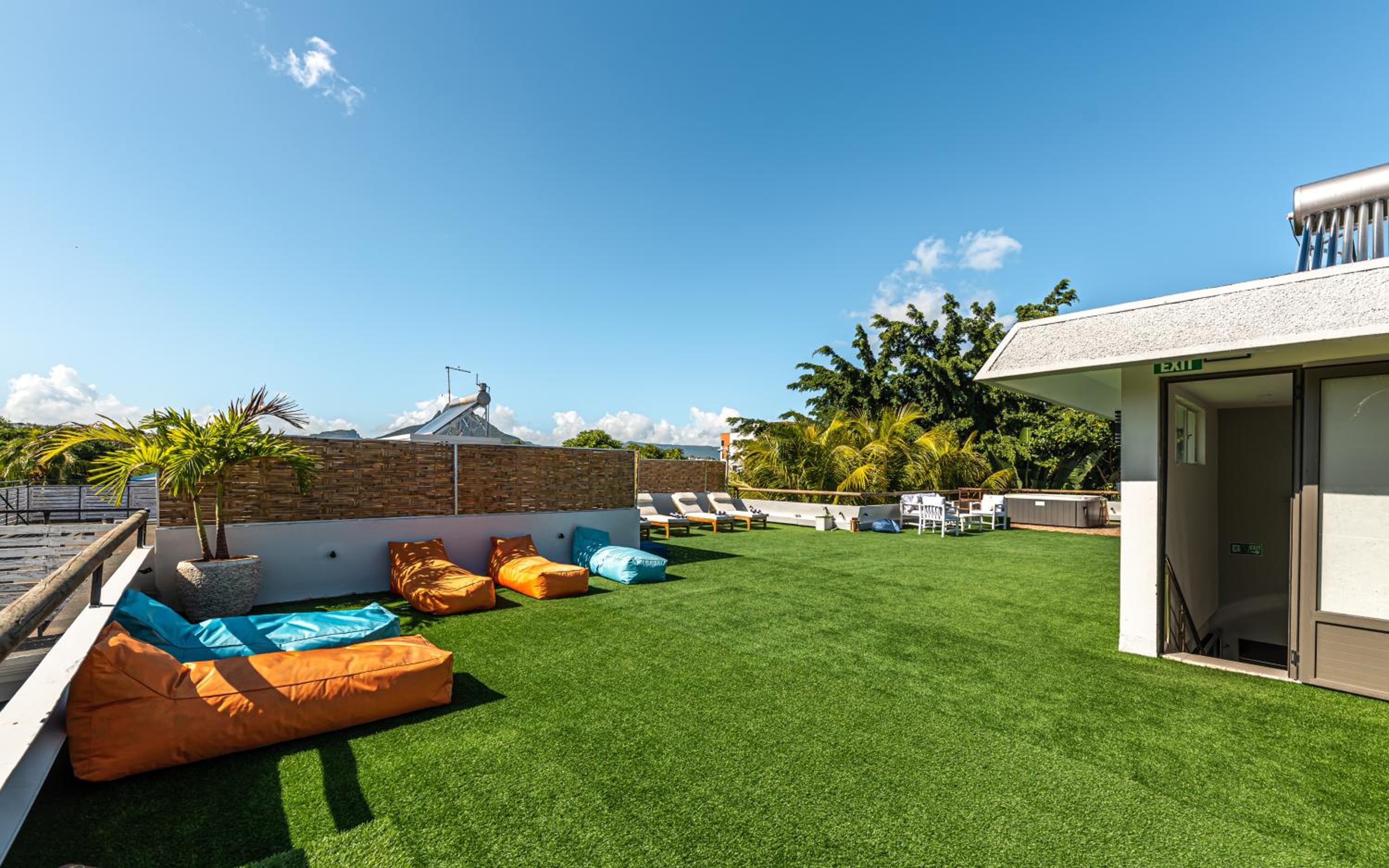 Unwind by the outdoor swimming pool or in the hot tub, perfect for a soothing soak after a day of exploring. Explore the lush garden or socialize in the shared lounge. Free WiFi keeps you connected, and the terrace offers a serene spot to enjoy the tropical surroundings.