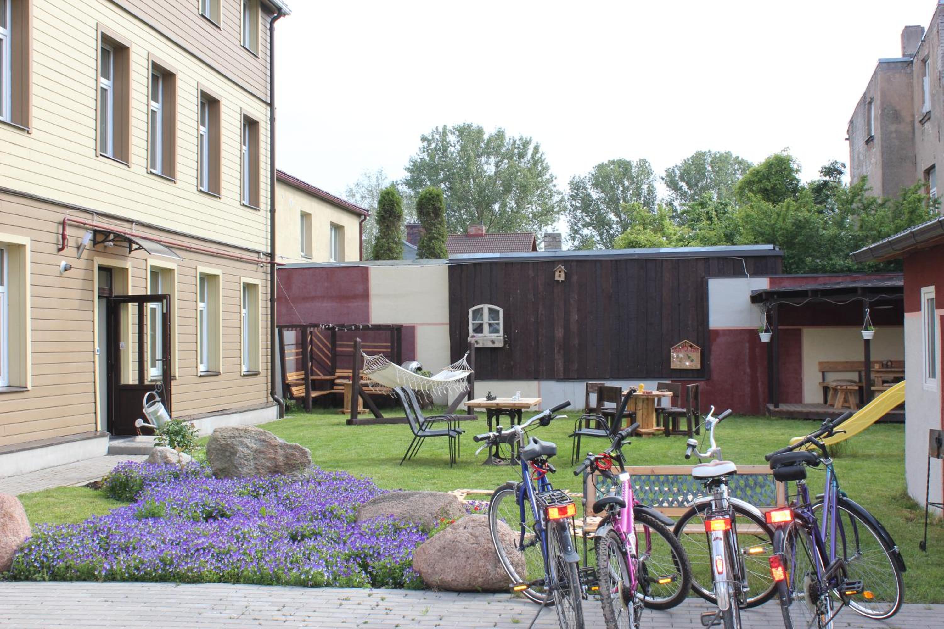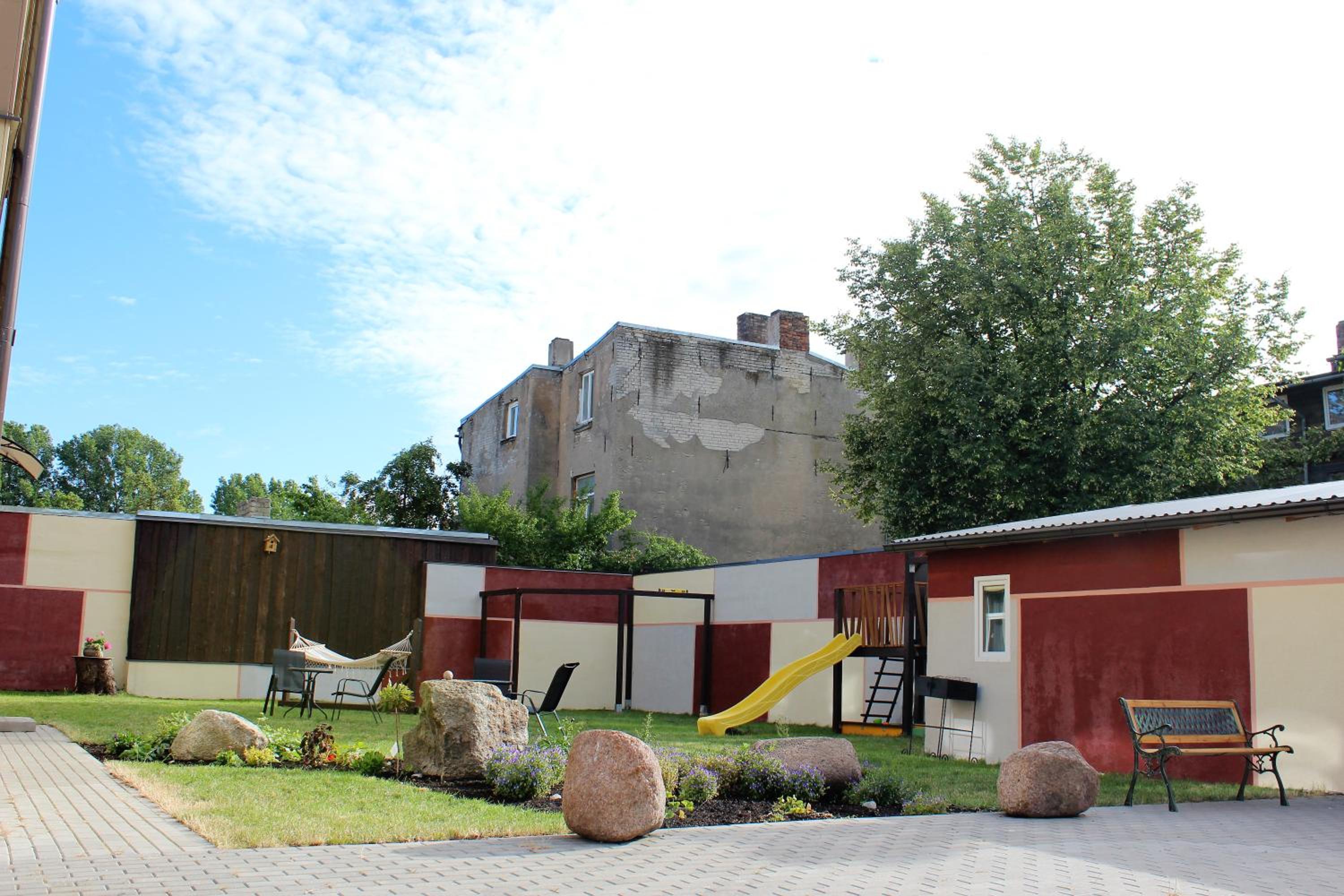 Nice location, clean rooms, courtyard for kids. A lot of space for parking on the street.