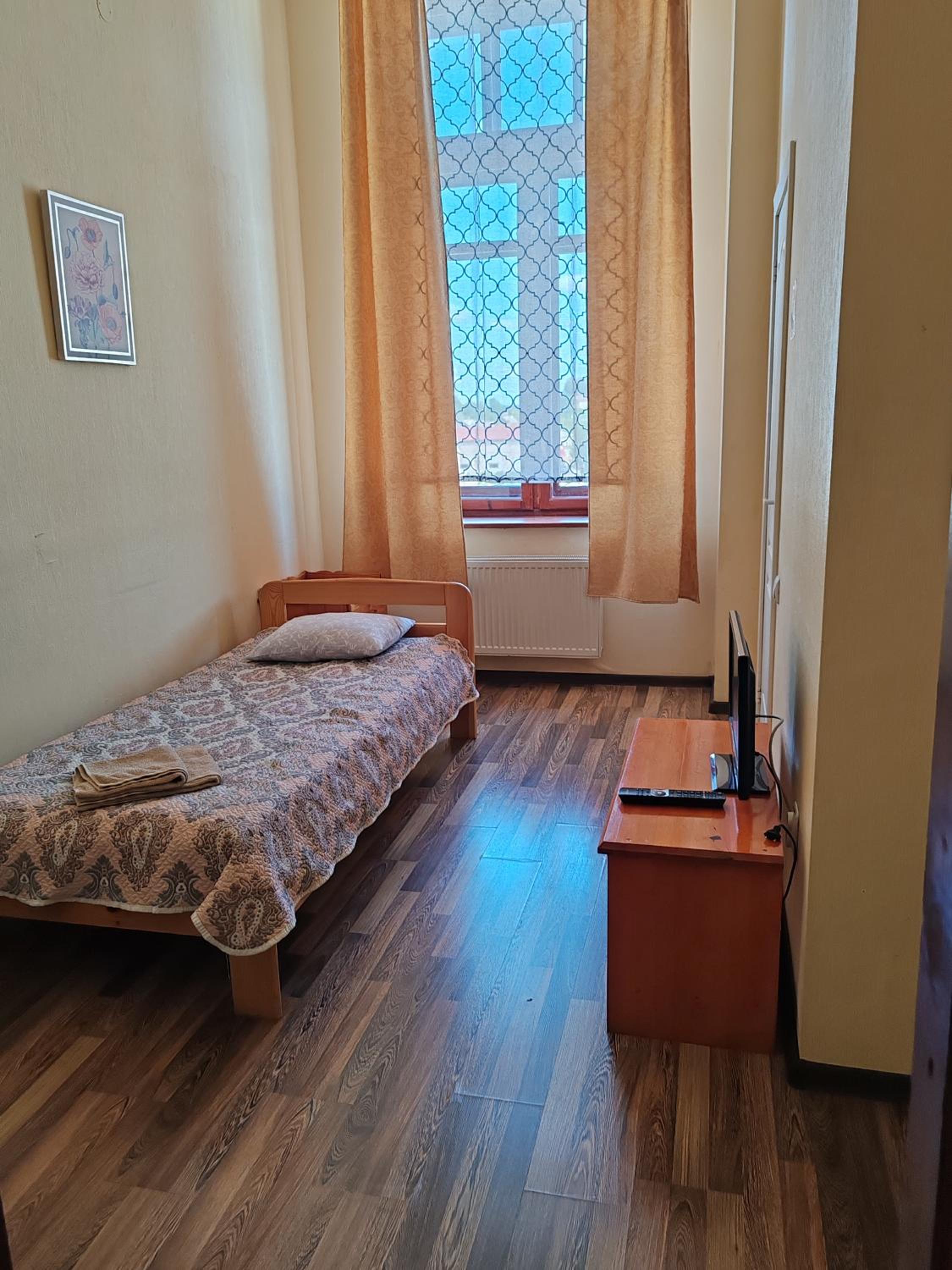 Заказанный номер полностью соответствует описанию. Номер не большой, есть всё необходимое для остановки на одну ночь. Произвело впечатление - высота потолков, очень высокие. Горячая вода в номере есть. Номер находился на третьем этаже. В номере было достаточно прохладно, но для сне под тёплым одеялом, это прекрасно. Цена и качество номера отеля соответствовала. Завтрак за отдельную плату. Понравилось, что персонал (Андреас) с заботой относится к проживающим. Регистрация быстрая, и персонал был на месте, хотя я заезжал довольно поздно.