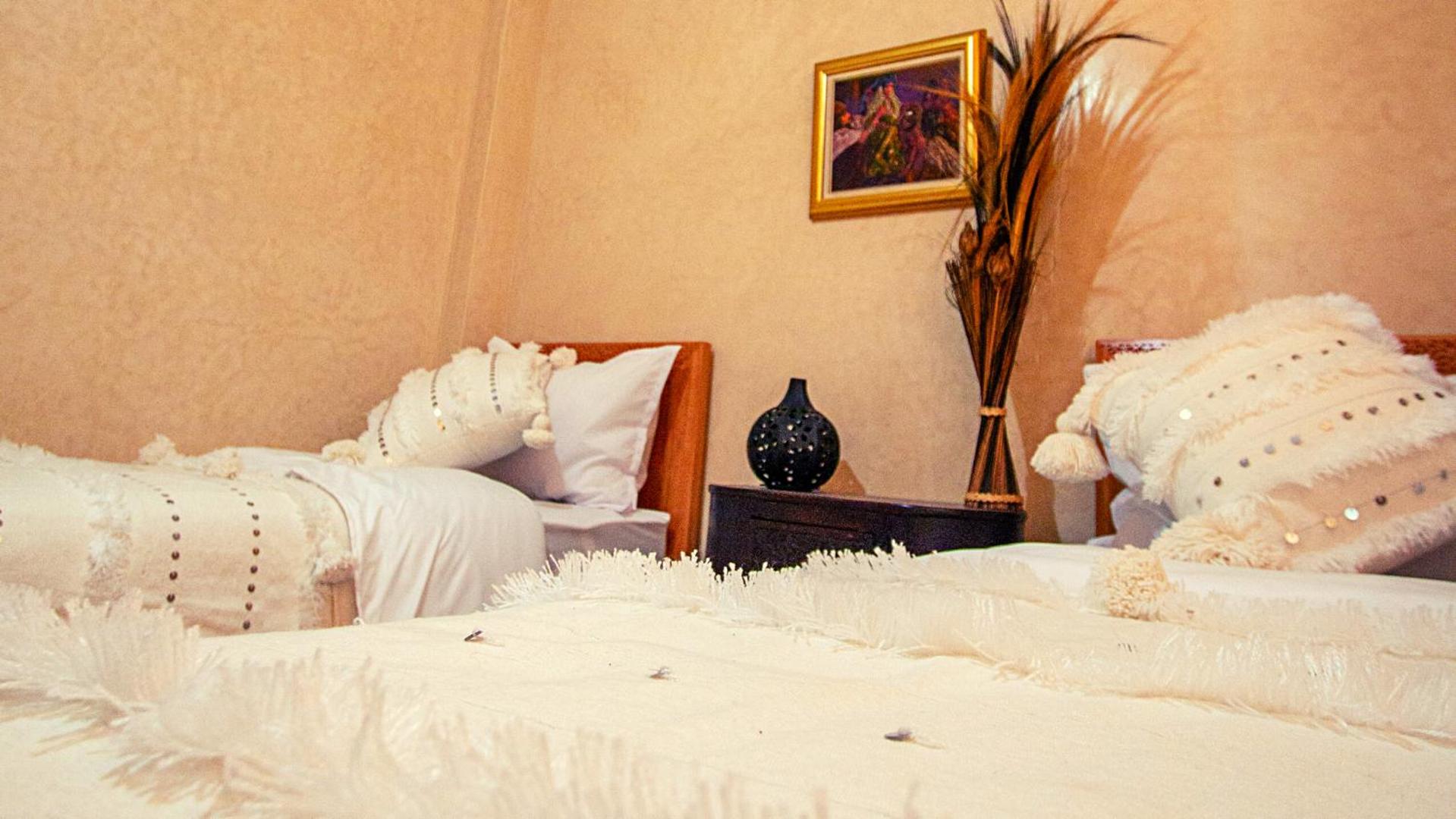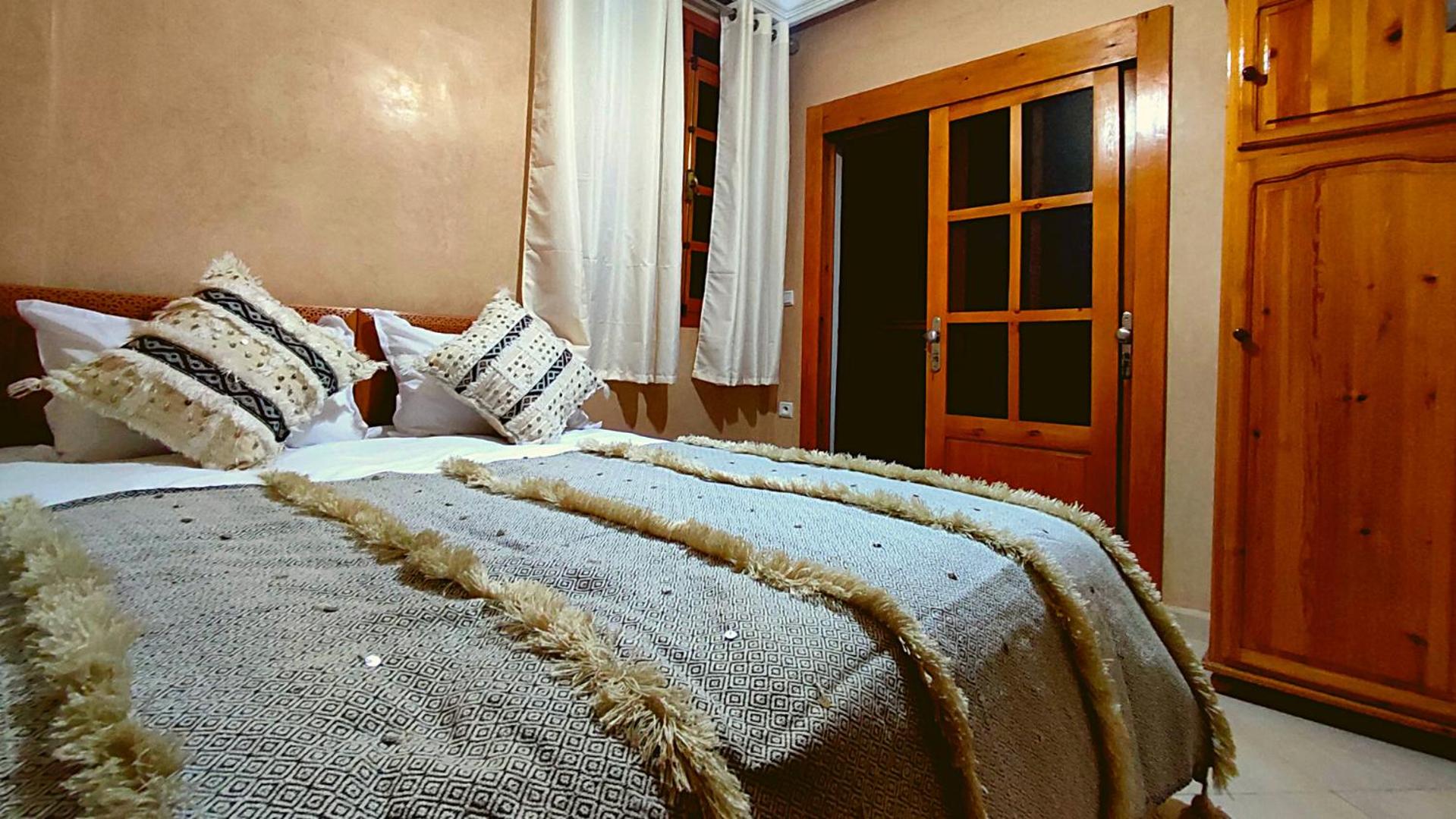 The room had no AC, and closing all windows at night felt claustrophobic and hot. There is a mosque right across the street, so we heard their singing at 5 am and then at 7 am, very loud. On top of that, you can hear all the motorcycles driving through the adjacent little street, people talking, and the cars until 1 am or so. So we didn't sleep at all for two nights. The rooms were very basic; they had no character like the other places we stayed in Morocco. So the price was too expensive in our opinion. I'd suggest that the owner change the bathroom curtain as well.