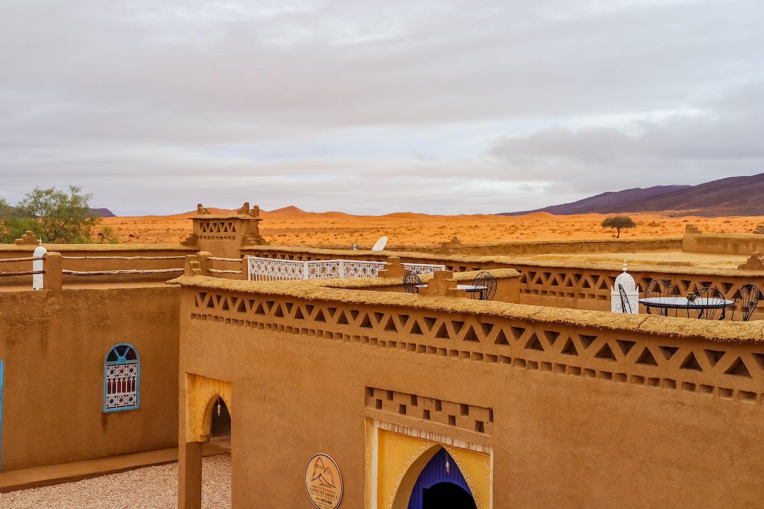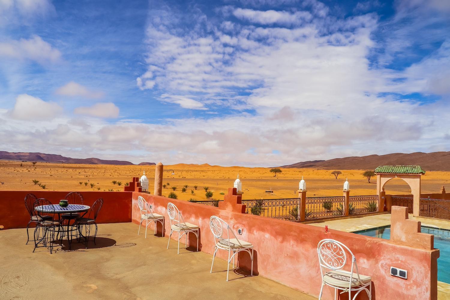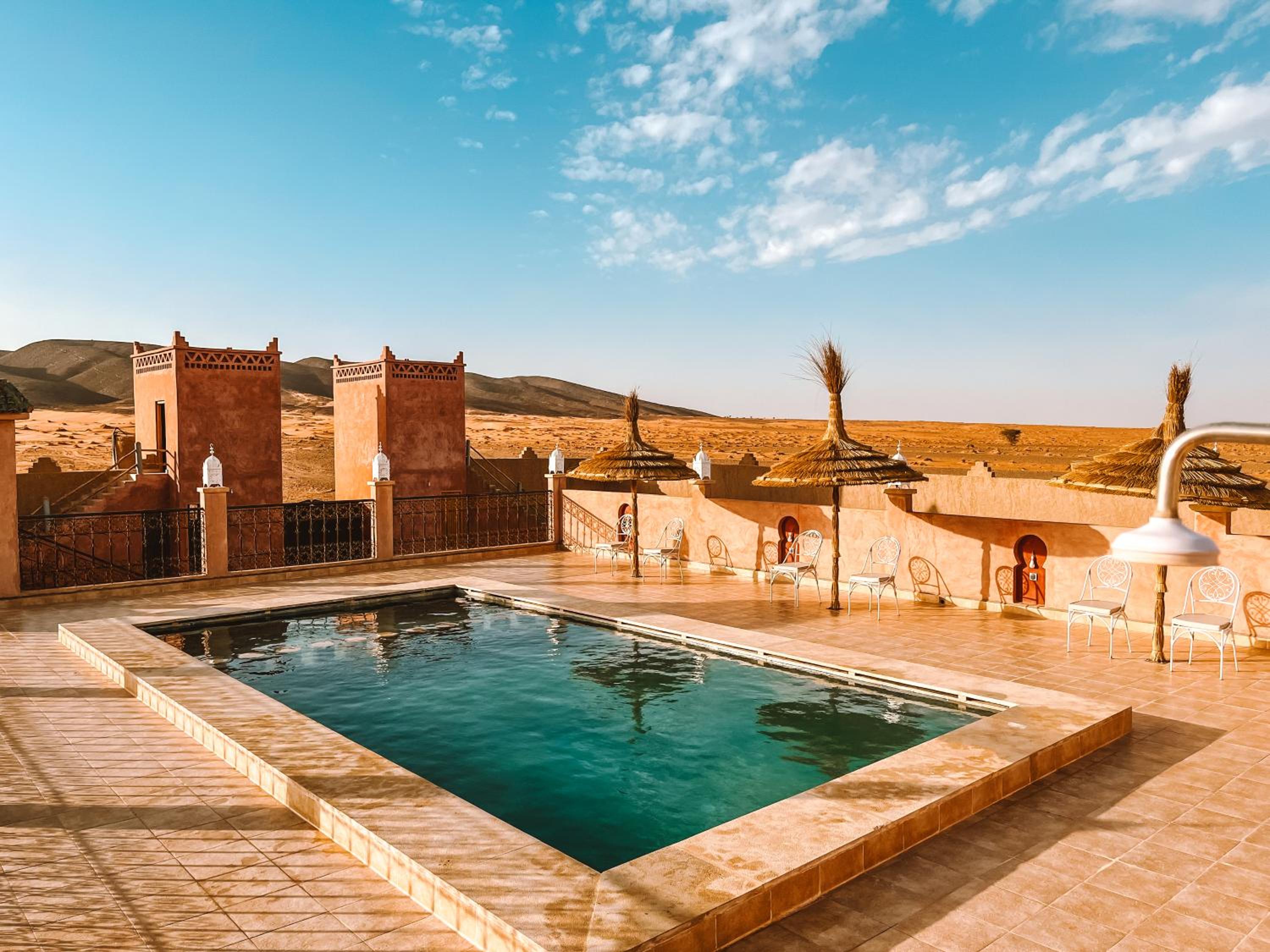 La struttura è dotata di una bella terrazza dalla quale godersi il tramonto se non si vuole andare a vederlo in mezzo alle Dune del deserto e piscina nella quale rilassarsi dopo una giornata tra le Dune.