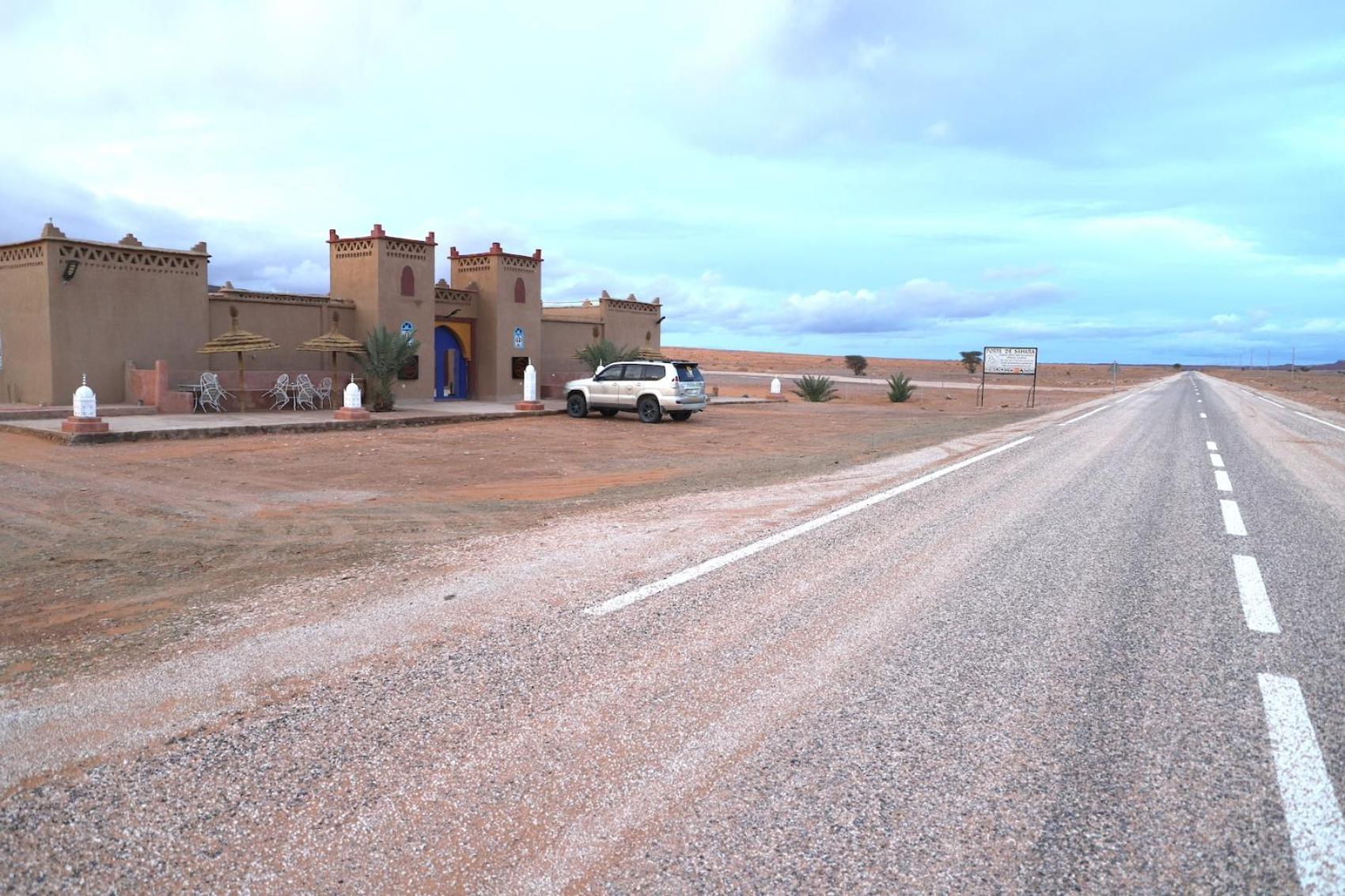 È proprio la porta del deserto dove finisce la strada asfaltata e comincia la pista in mezzo al nulla fino a Zagora!!