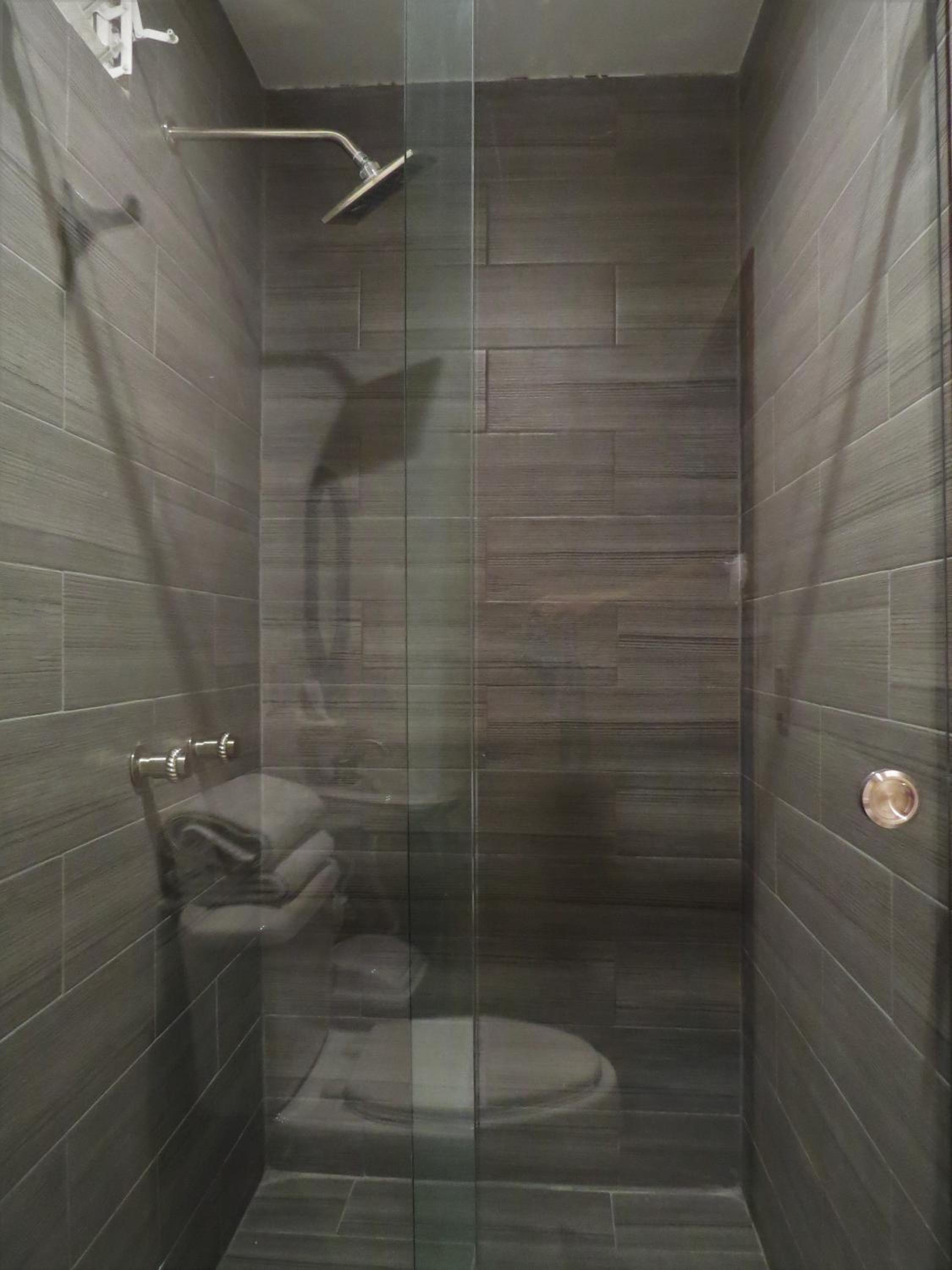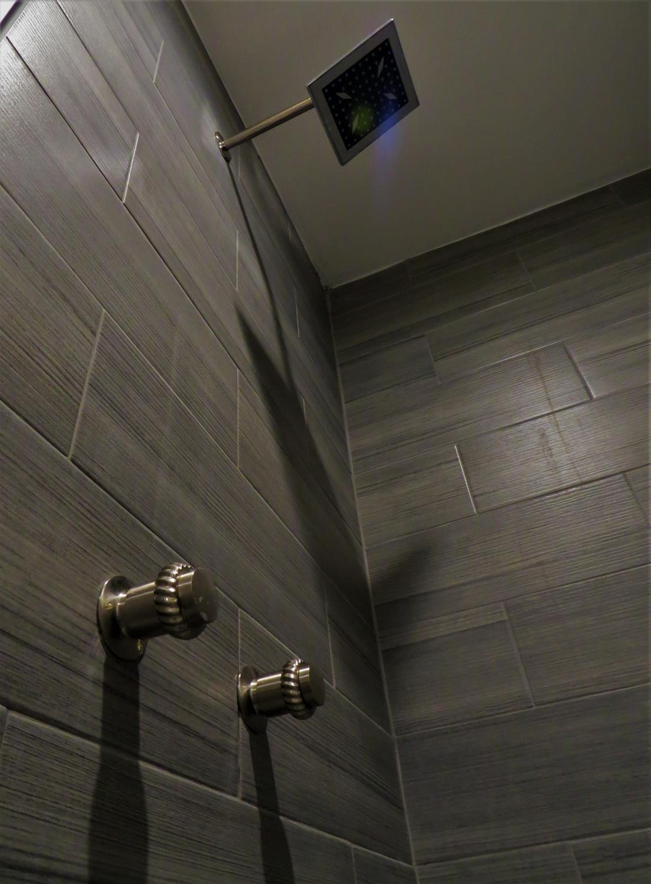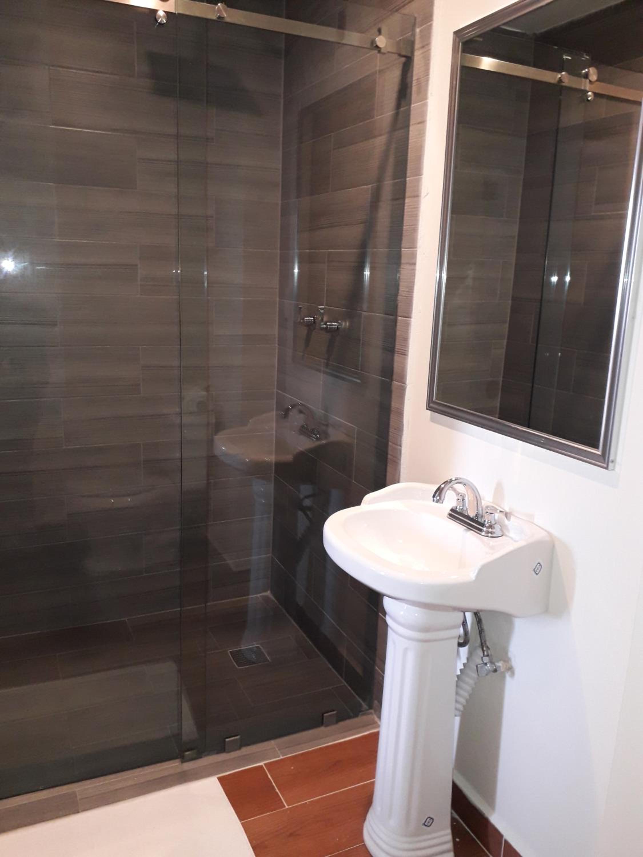 La cama King size y la ducha.