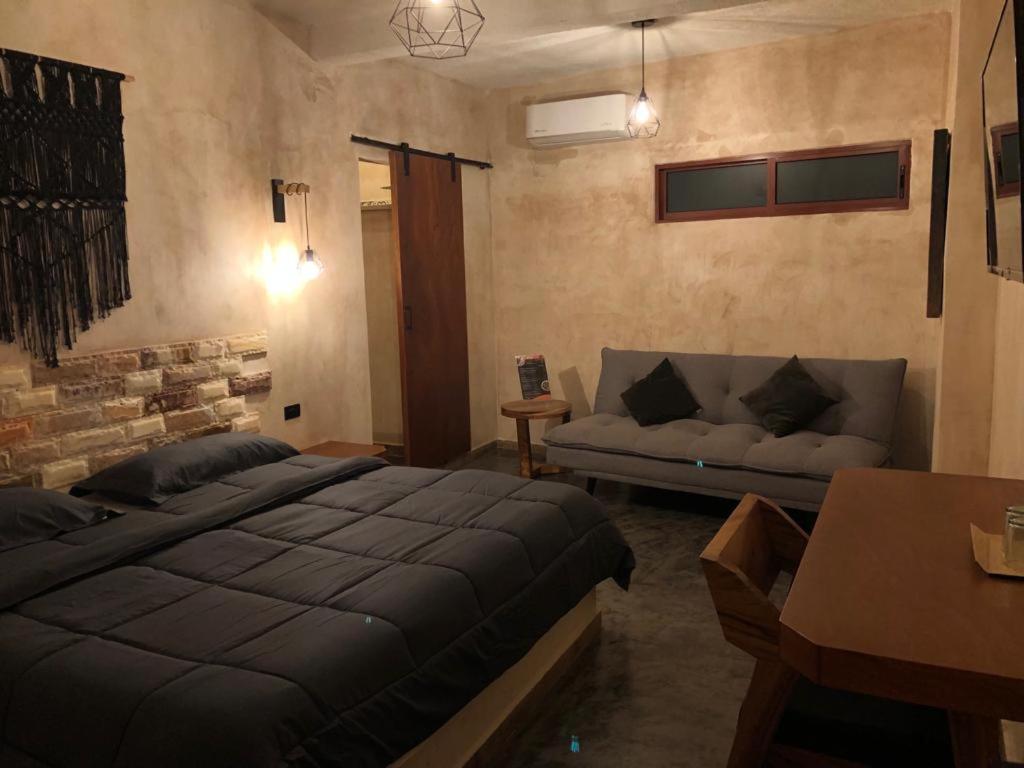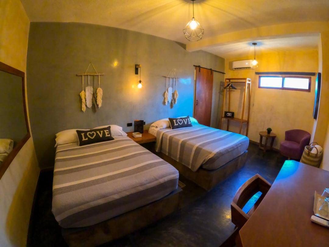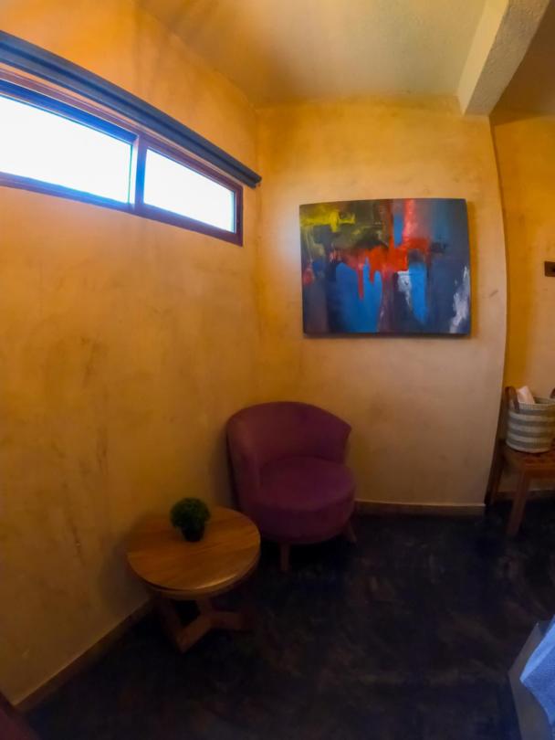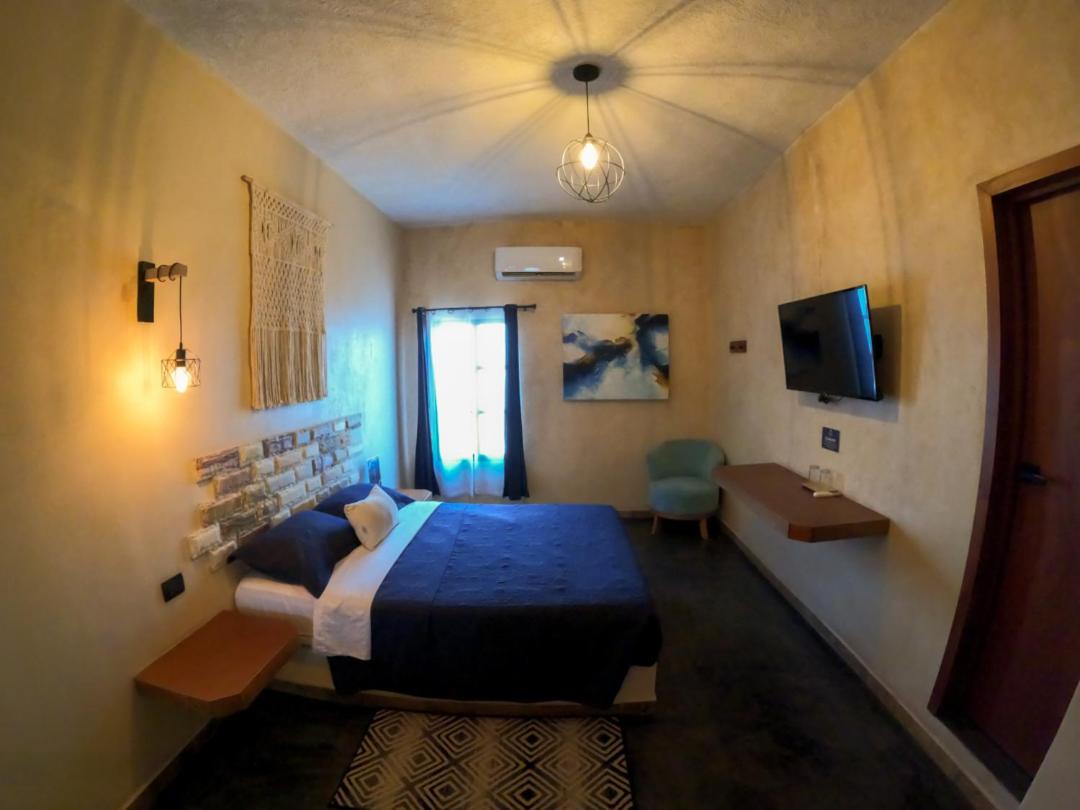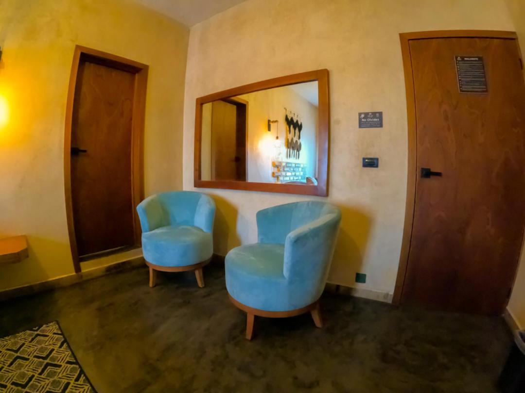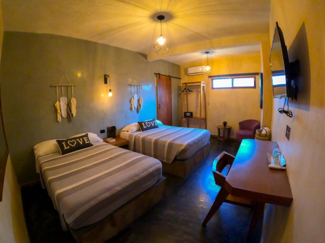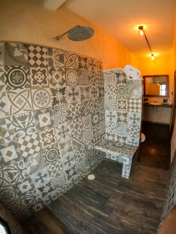 This room is great for an overnight stay. Basically a bed and shower. No coffee machine, no mini fridge...small selection of cold drinks in cooler downstairs and OXXO a block away. We both had showers, one in the evening and one in the morning. There was hot water for maybe a minute, then it went to cool, then only slightly warm. The neighbourhood was noisy (for us). We kept our windows closed...typical for the country.