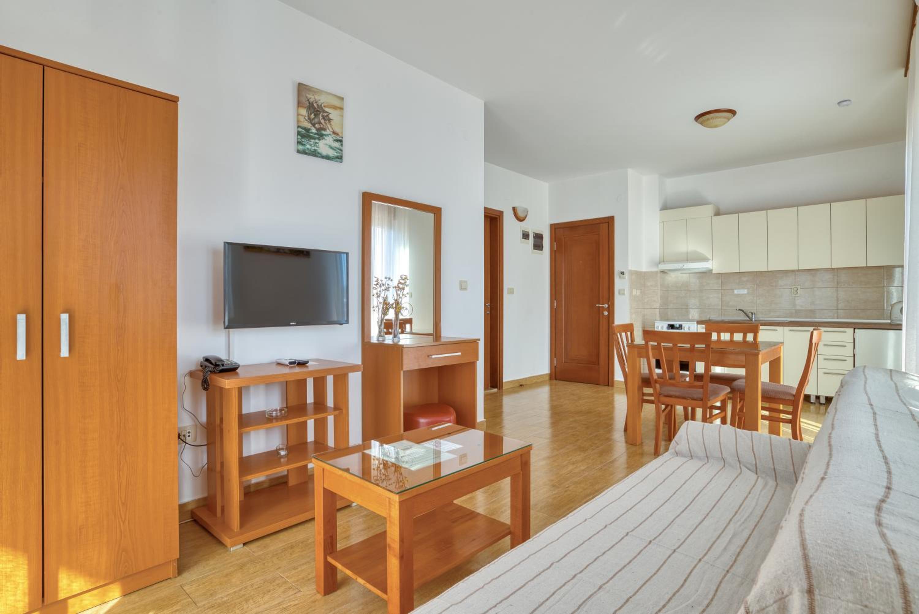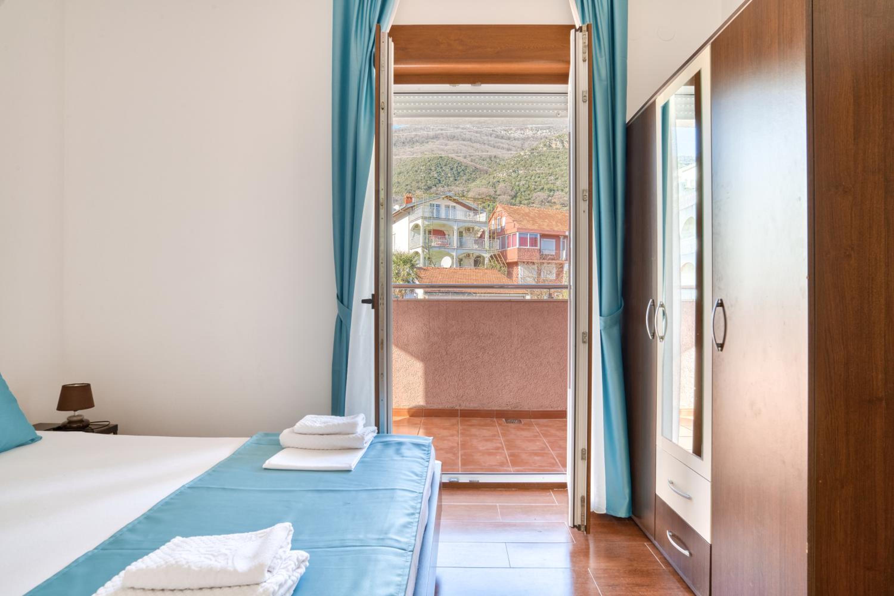 Trevlig personal i reception och frukosten. Väldigt fint läge, jättenära strandpromenaden där det fanns flera restauranger och strandbad man kunde hyra solstolar. Vi tyckte det var skönt att bo i en lite lugnare by utanför Herceg Novi. God frukost med både varmt och kallt.