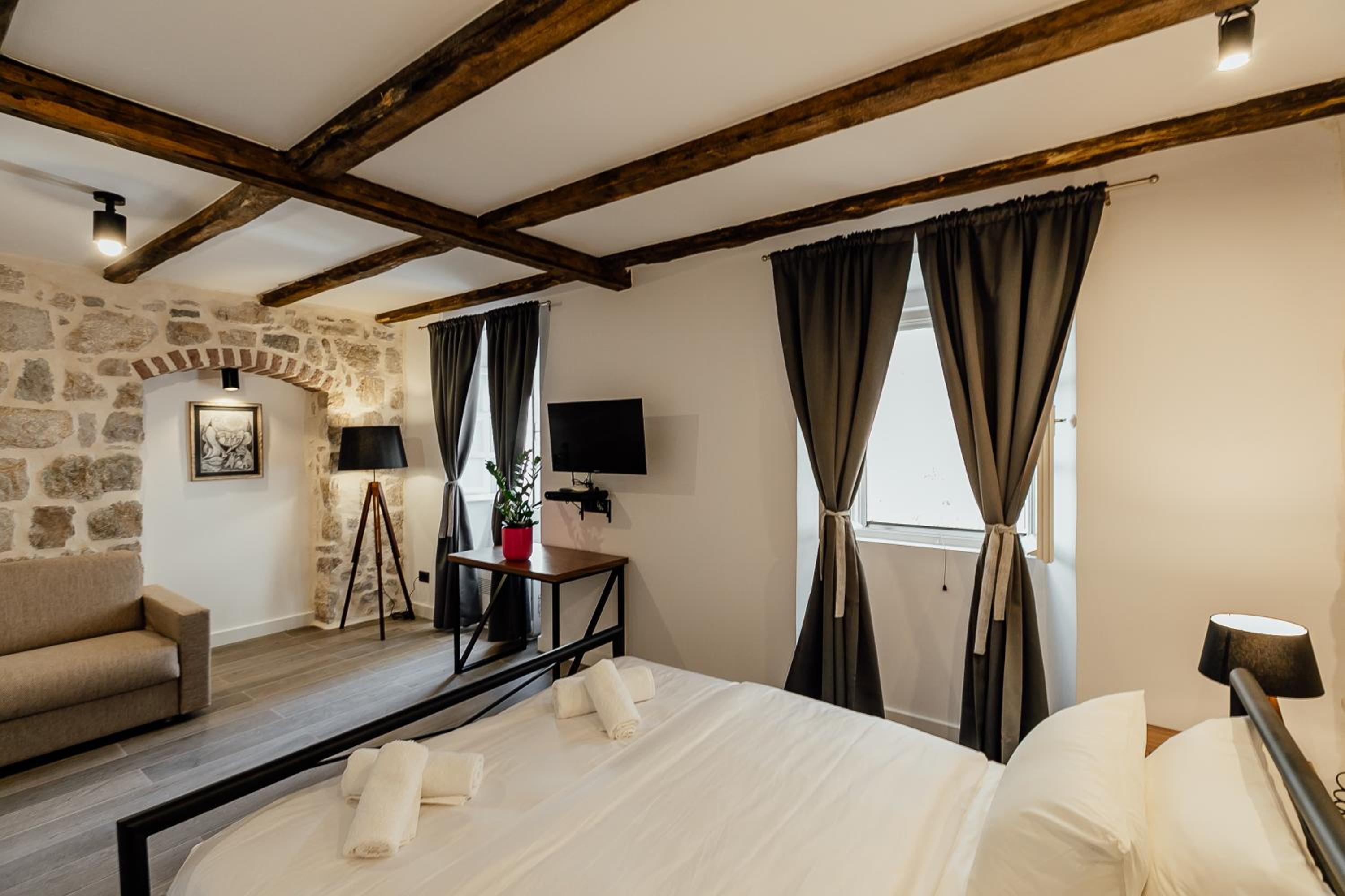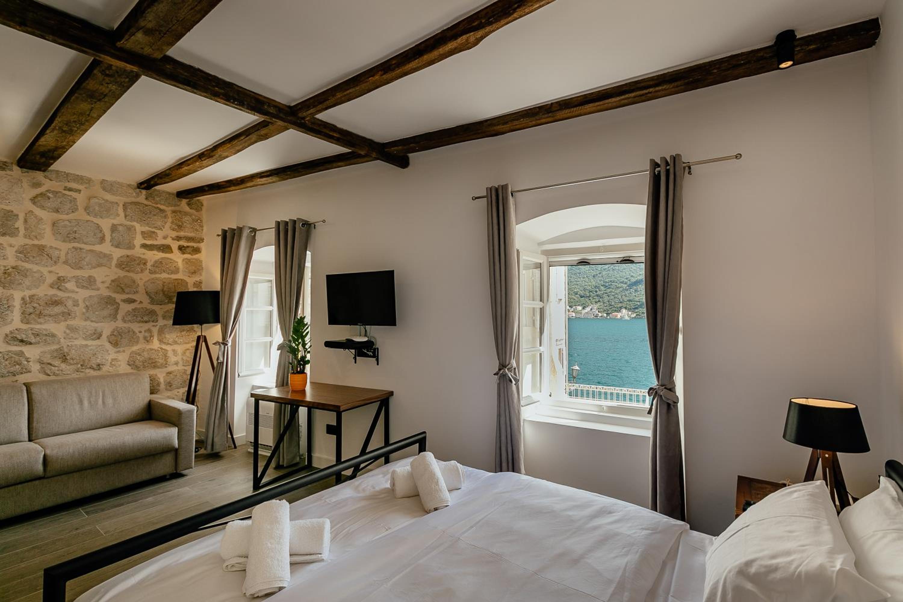 Chambre dans le centre de Perast, lit confortable, jolie décoration.