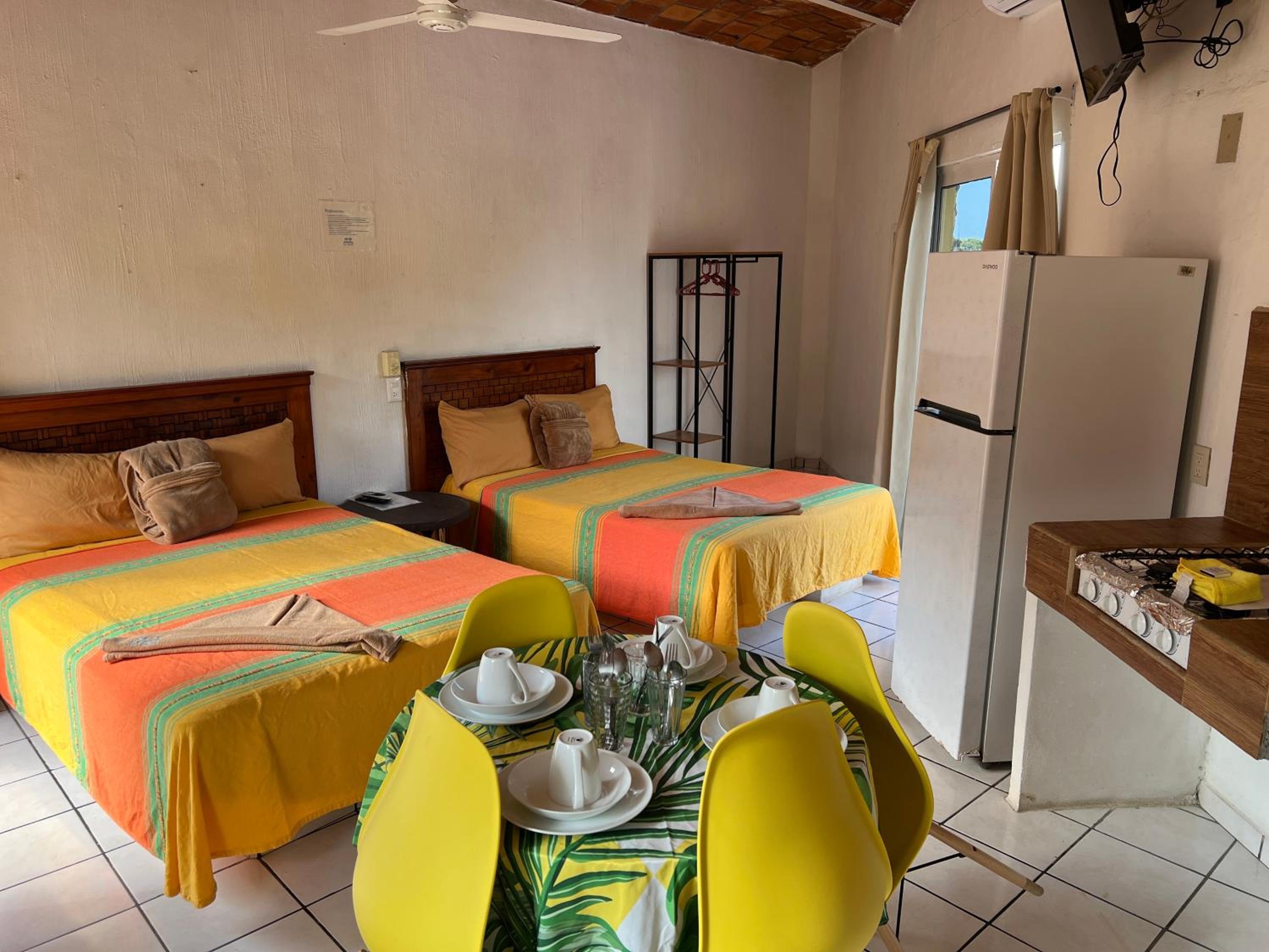 Excelente ubicación, muy cerca al acceso a la playa. Y al interior de la habitación todo lo que necesita; camas cómodas, tv, ventilador, aire acondicionado, cocineta , refrigerador