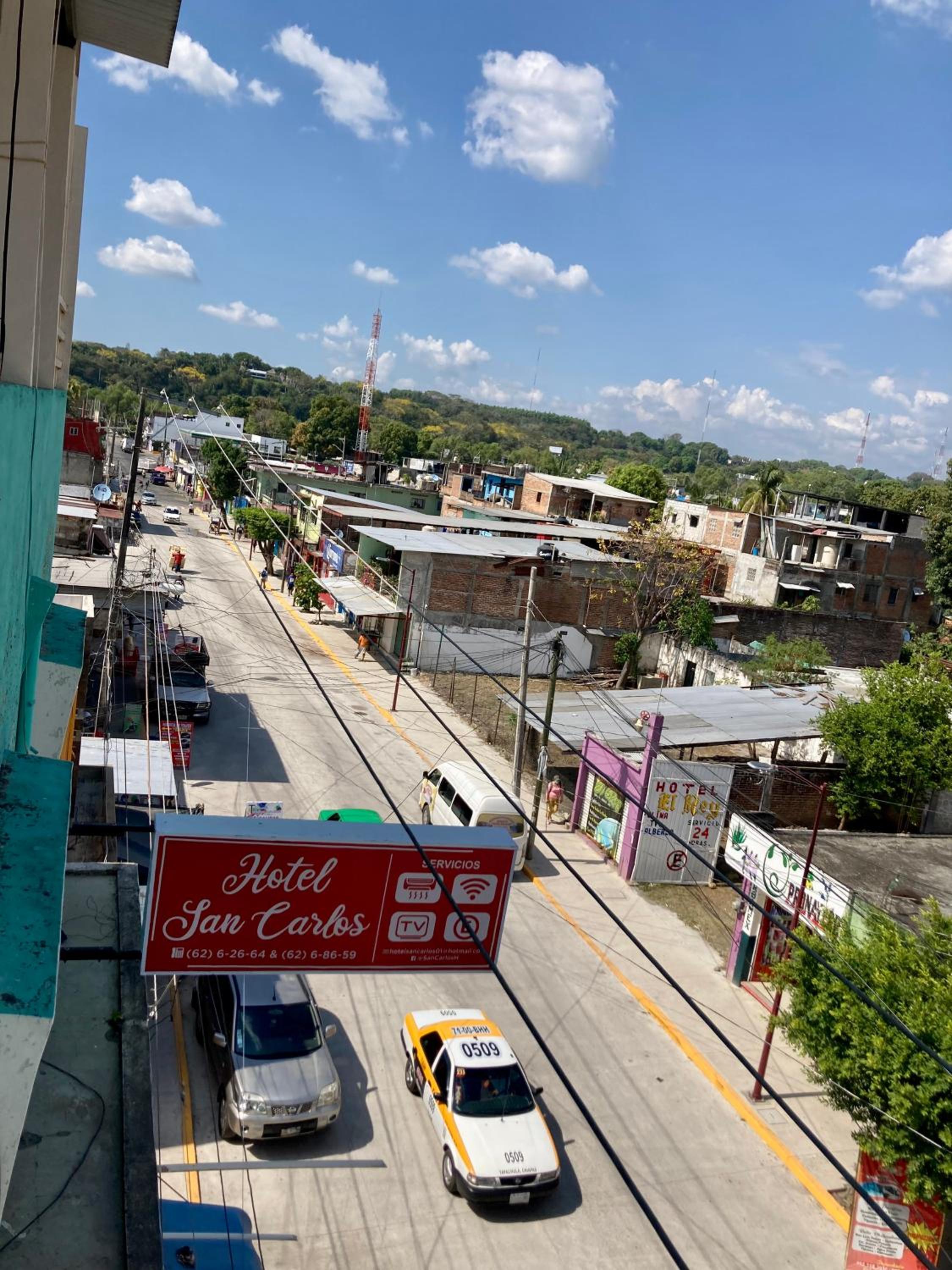Hotel San Carlos, nestled in Tapachula, Chiapas, offers a luxurious stay just 13 km from the fascinating Izapa Archeological Zone. Each room features a charming patio, air conditioning, and a private bathroom, ensuring utmost comfort for guests.
