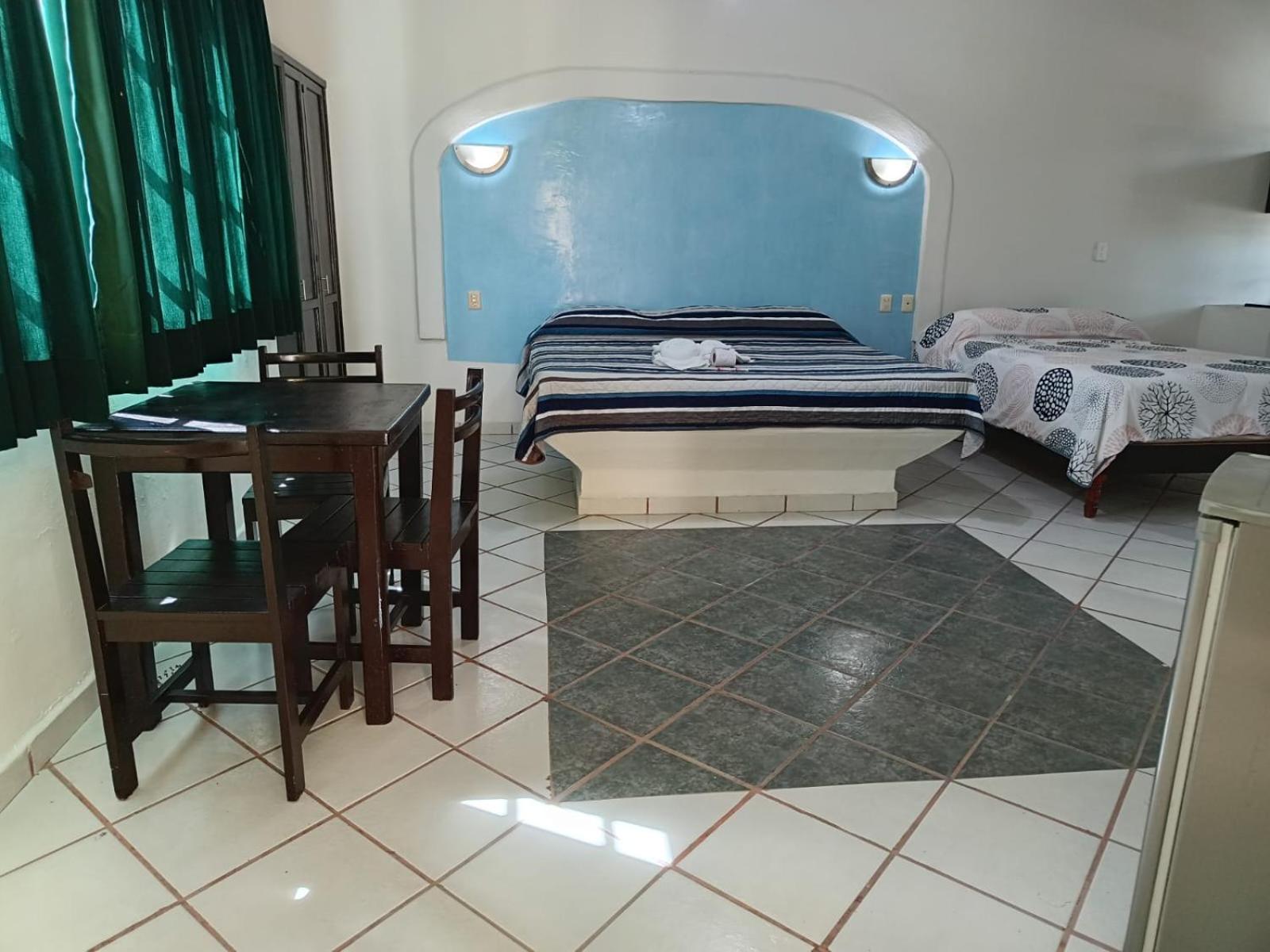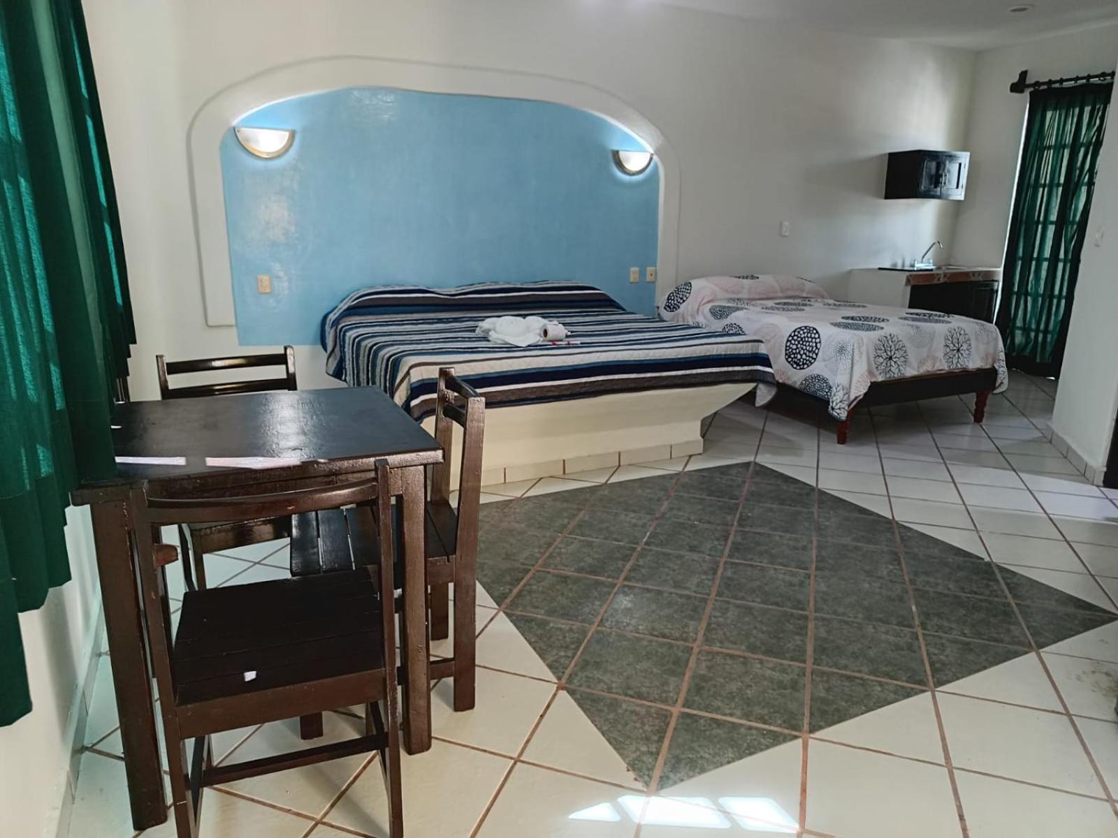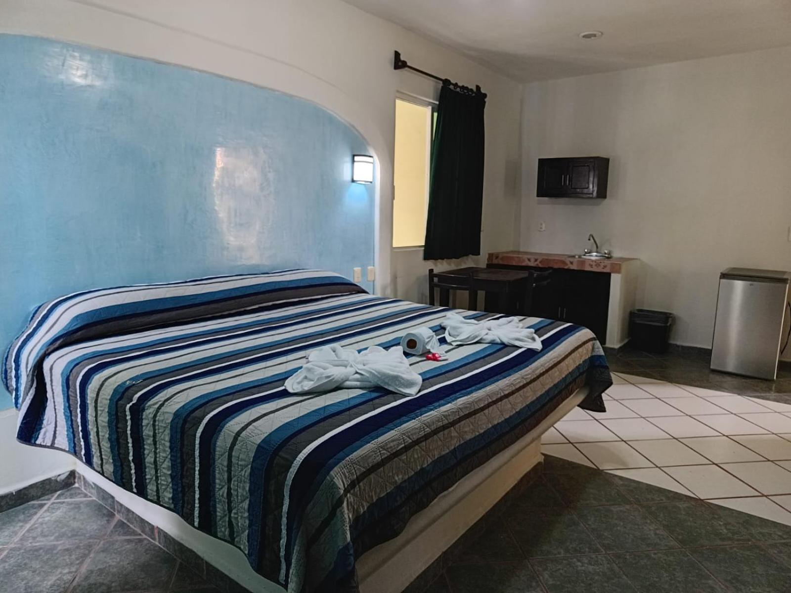 We stayed five nights at the new and bright Atlantida hotel over the Christmas holidays. Our room was large and bright and very clean. We had a huge king bed and a double bed and also a small refrigerator and "convenience kitchen." Our room had a large balcony that faced avenida 15 and it was nice to sit out there and watch all the happenings of city life in Playa del Carmen going on. We found the property to be a good value for the money and the location was excellent- a short walk to the beach and restaurants but had more of a local feel as it is located in town not right on the beach. The room was kept very clean and had huge windows you could open during the day to get a nice cross breeze going in the room. We noticed a small pool in the courtyard of the property but it was not filled when we stayed there.