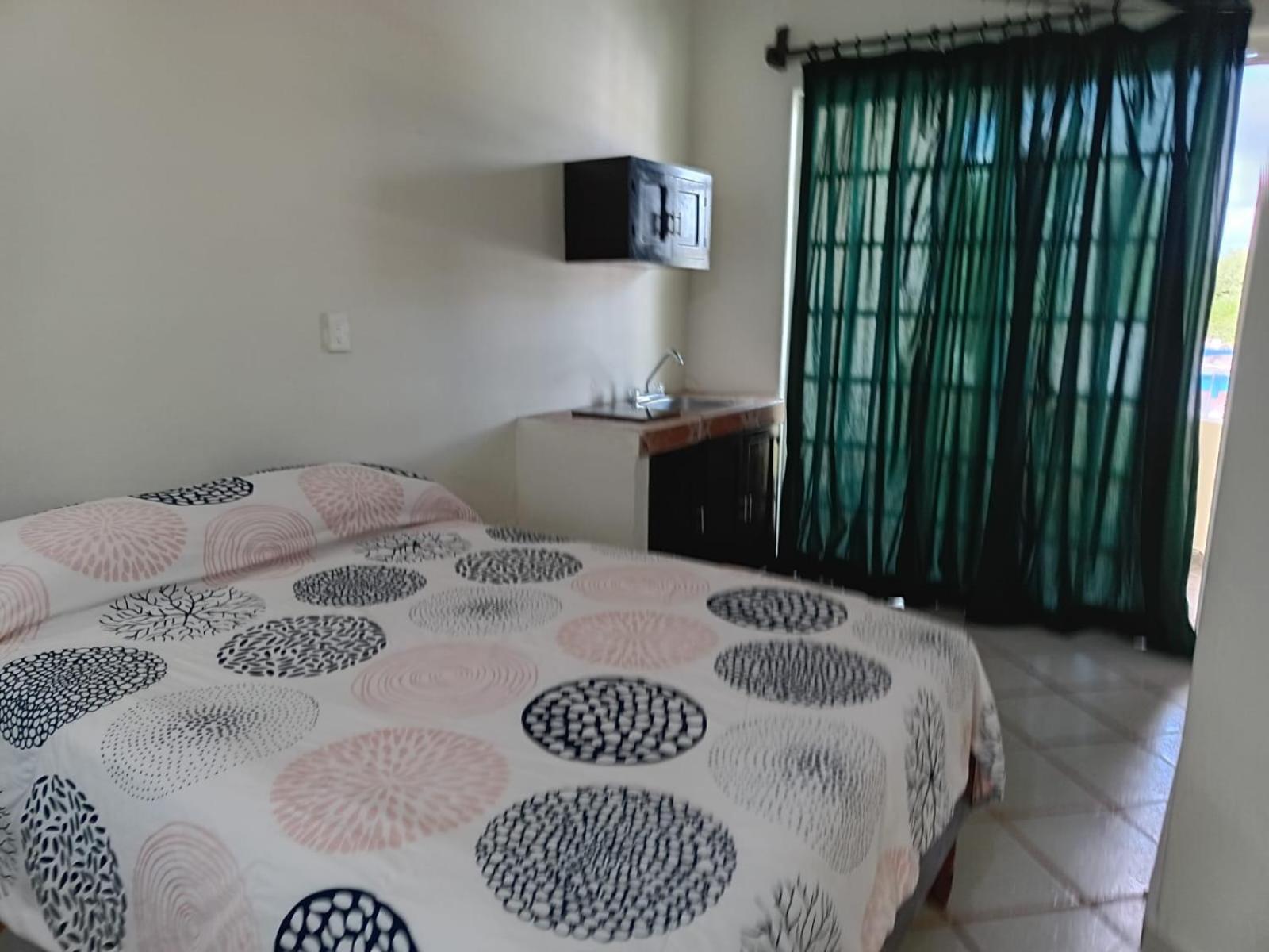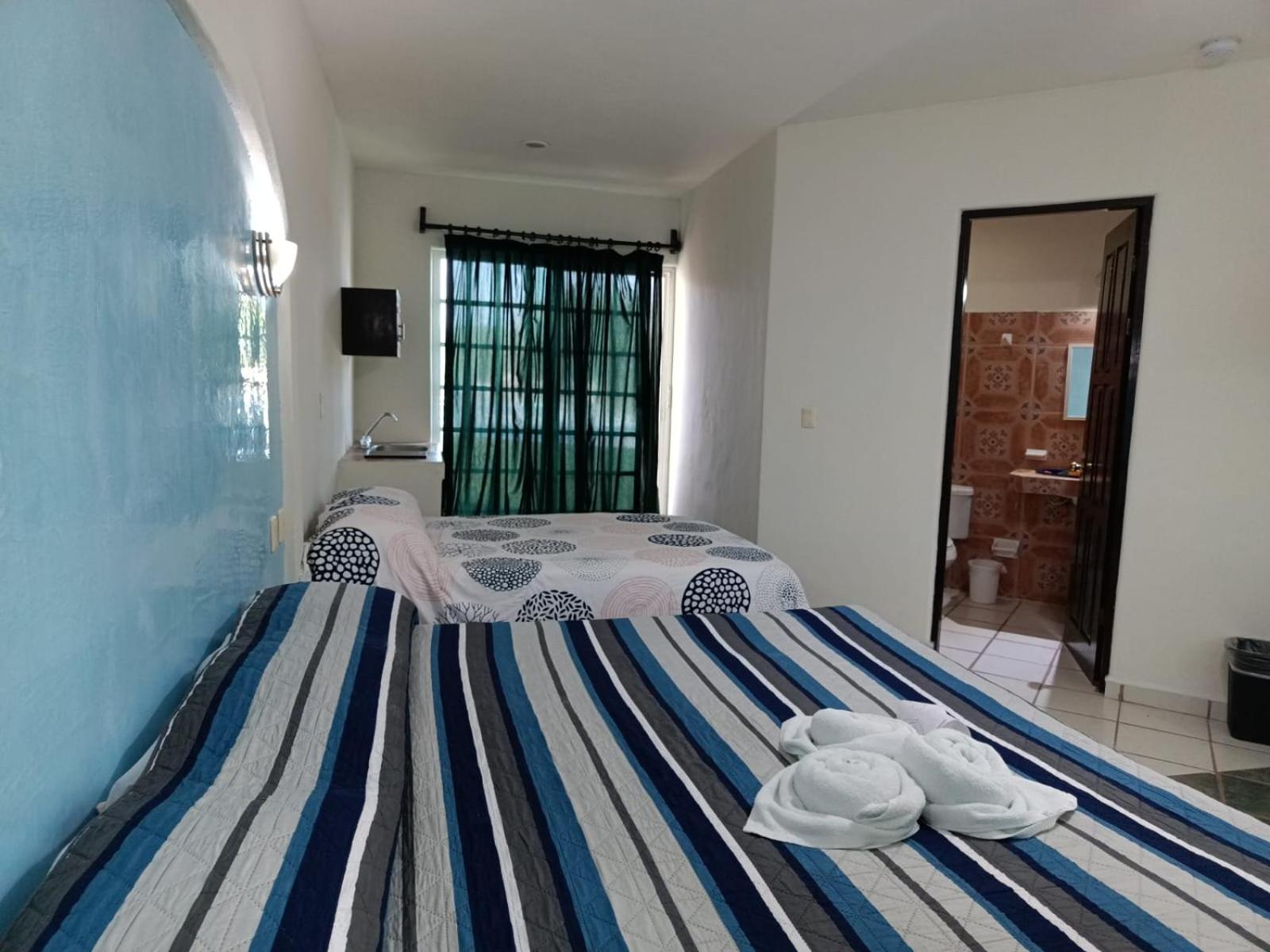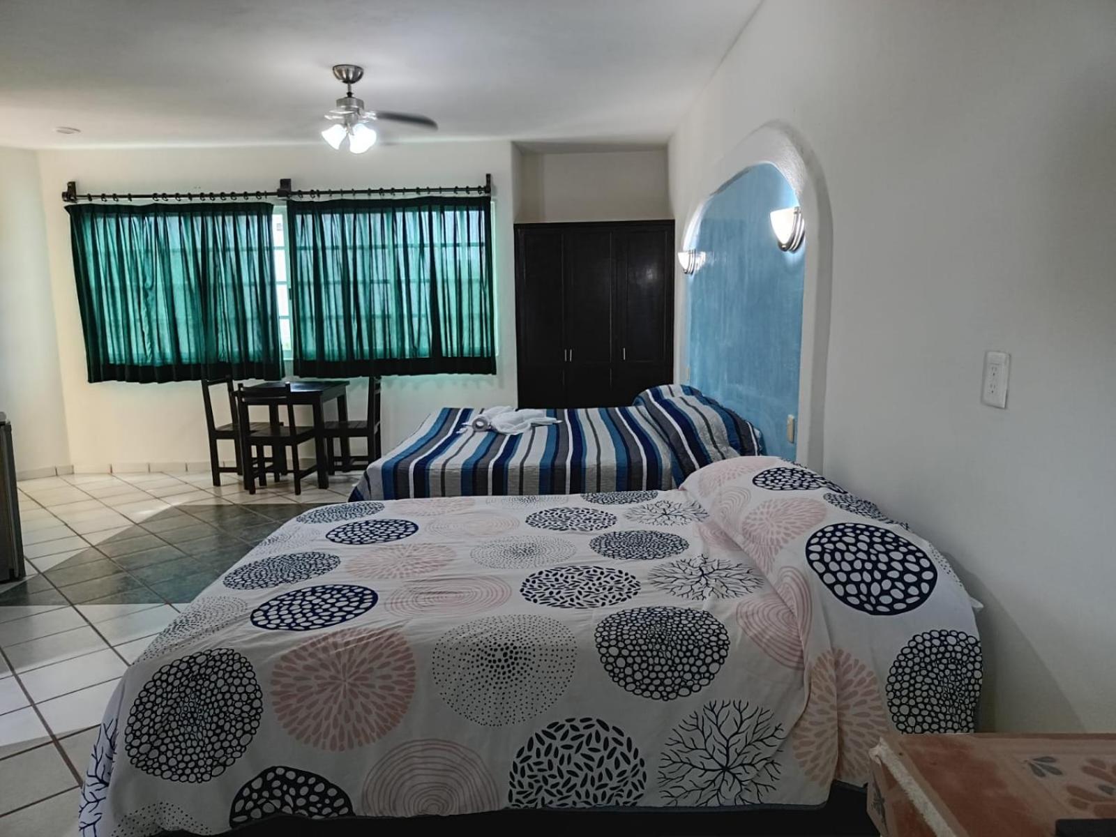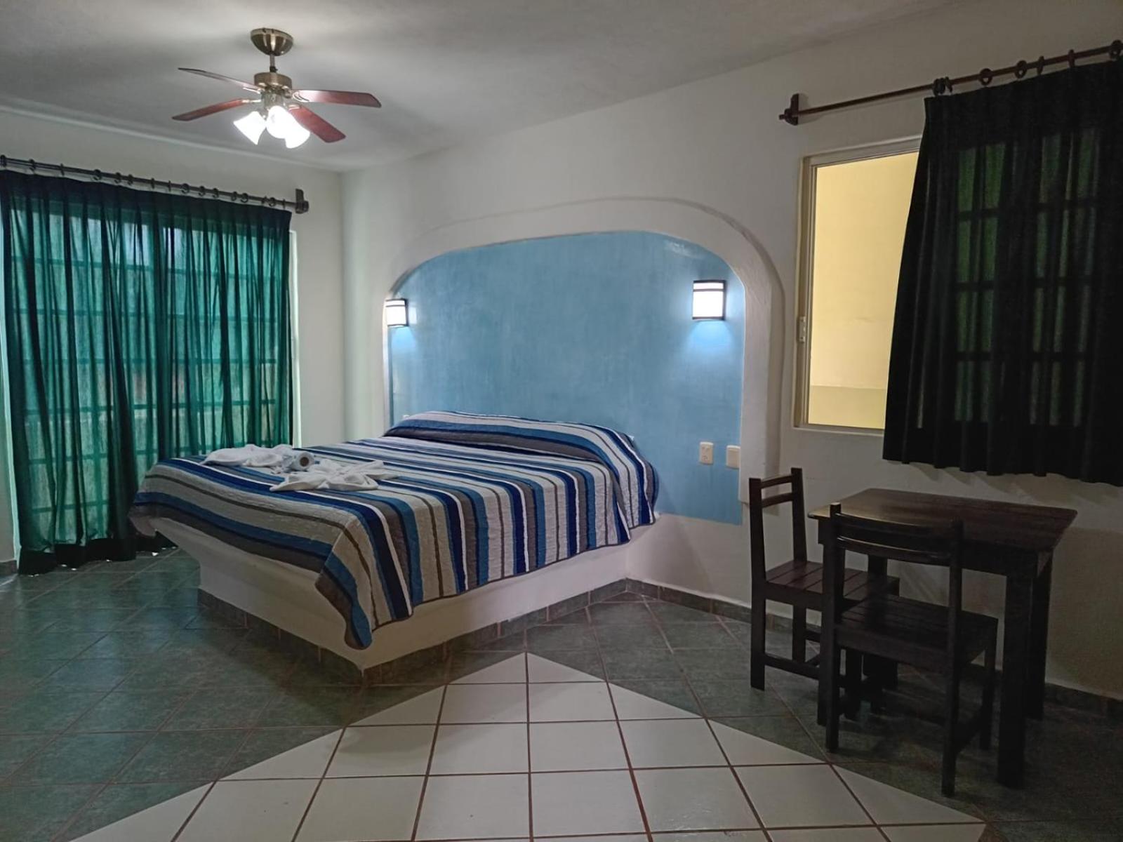 We stayed five nights at the new and bright Atlantida hotel over the Christmas holidays. Our room was large and bright and very clean. We had a huge king bed and a double bed and also a small refrigerator and "convenience kitchen." Our room had a large balcony that faced avenida 15 and it was nice to sit out there and watch all the happenings of city life in Playa del Carmen going on. We found the property to be a good value for the money and the location was excellent- a short walk to the beach and restaurants but had more of a local feel as it is located in town not right on the beach. The room was kept very clean and had huge windows you could open during the day to get a nice cross breeze going in the room. We noticed a small pool in the courtyard of the property but it was not filled when we stayed there.