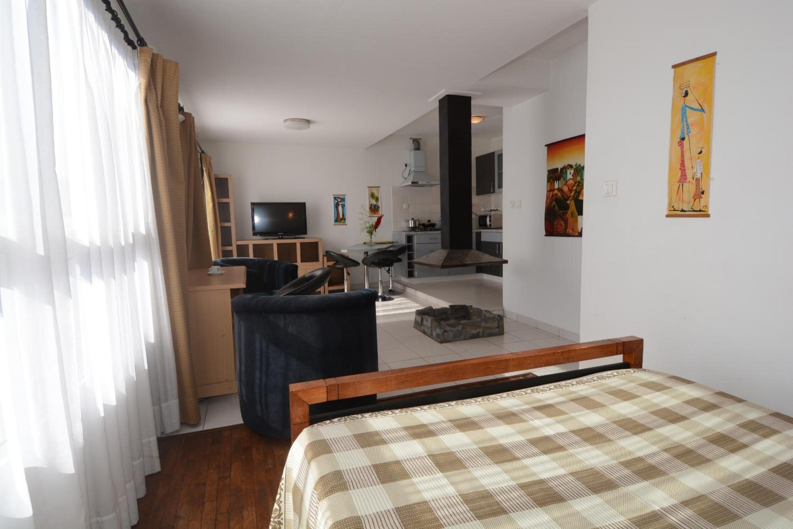 Each room at Aina Hôtel is thoughtfully equipped with a safety deposit box and a desk, ensuring a secure and productive stay. For those seeking more space and amenities, the studios offer a cozy seating area, dining table, and a kitchenette with modern appliances for added convenience.
