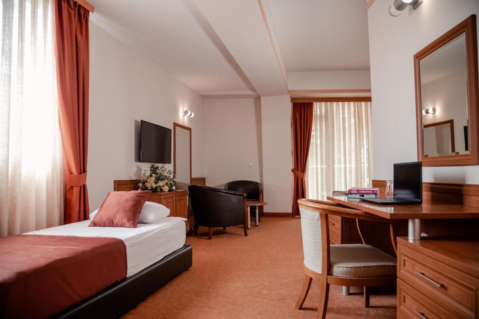 Diverse Dining Options and Leisure Activities: Indulge in traditional Macedonian and international cuisine at the hotel's 3 restaurants, relax on the common terrace, utilize the barbecue facilities, and explore activities like canoeing and windsurfing.