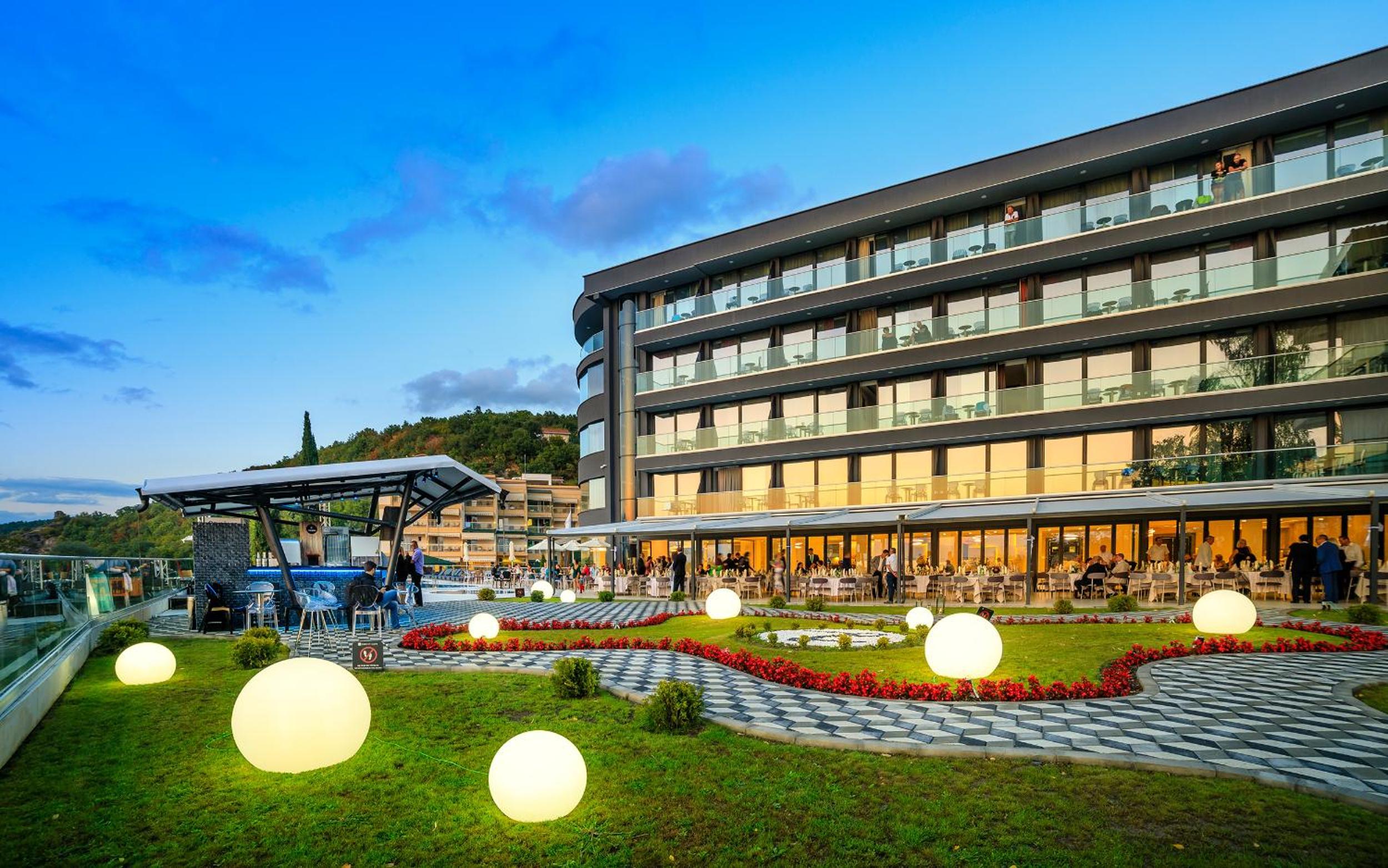 Laki Hotel & Spa, located in Ohrid, offers 4-star accommodation with modern amenities. The rooms feature air conditioning, flat-screen TVs, and private bathrooms, some with city views and balconies.