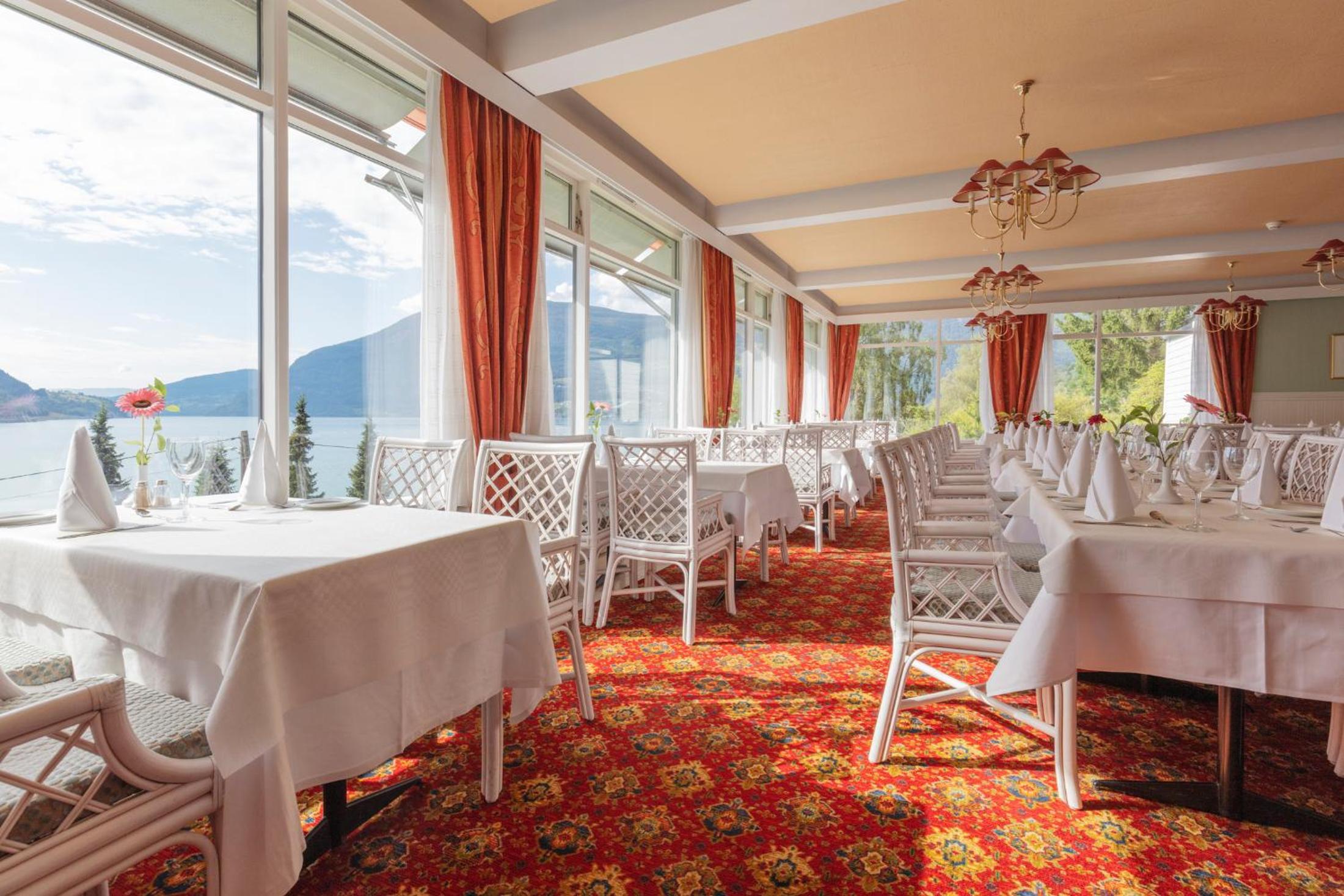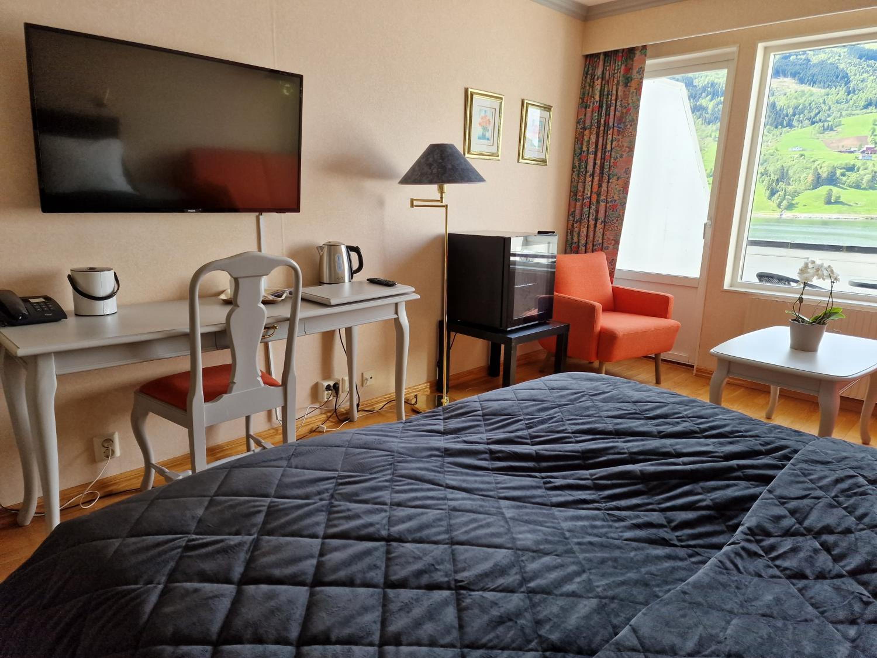 Relax in guest rooms with classic décor, private bathrooms, and amenities like satellite TV and work desks. Many rooms offer balconies with scenic fjord views, providing the perfect backdrop for your getaway.