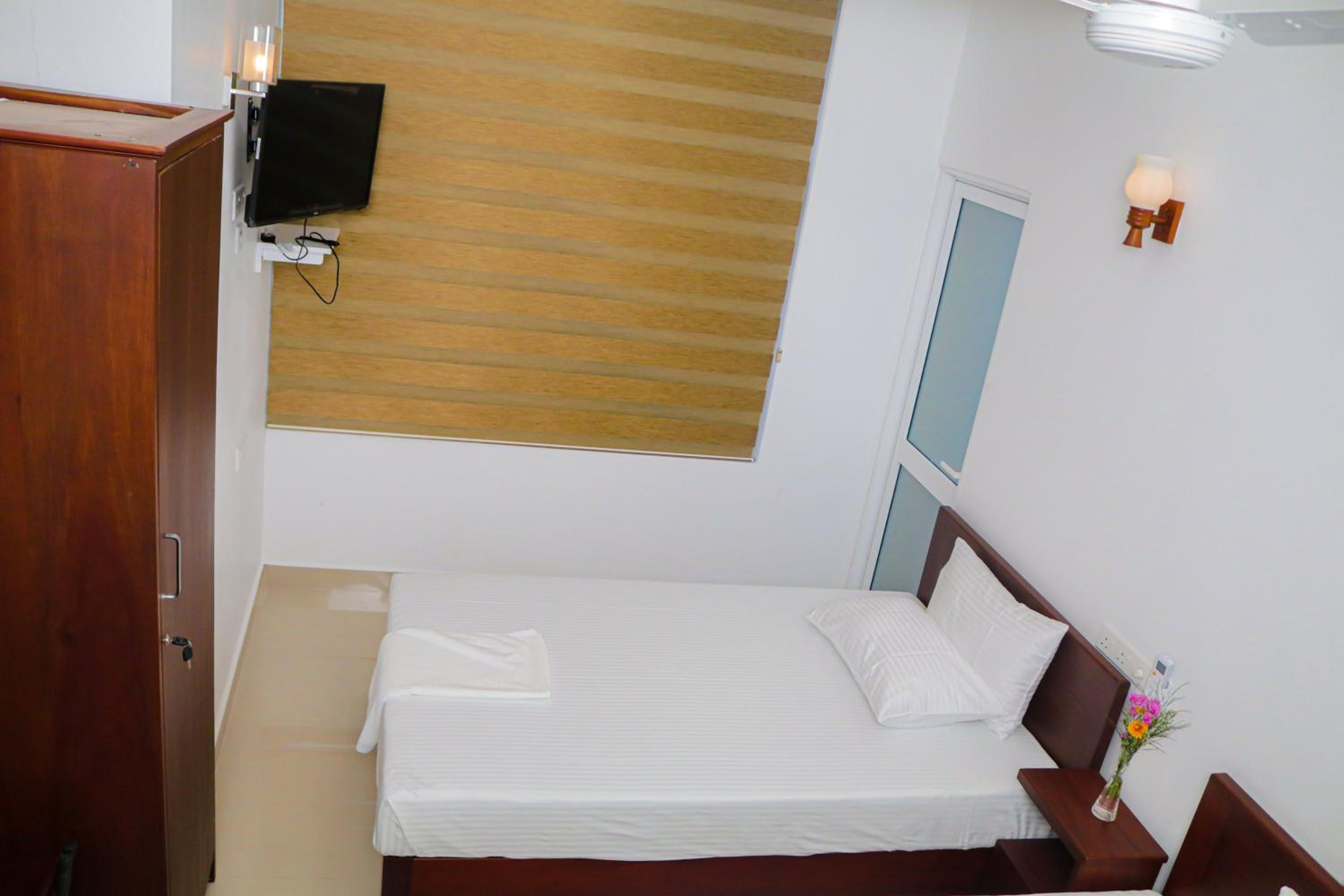 Pretty central location, easy and not expensive to order a taxi / tuktuk via PickMe app. Price for the room was fair. The property was very clean and friendly, I felt safe living there. Nice view from the rooftop. Restaurant on the rooftop can provide you with food from morning till night.