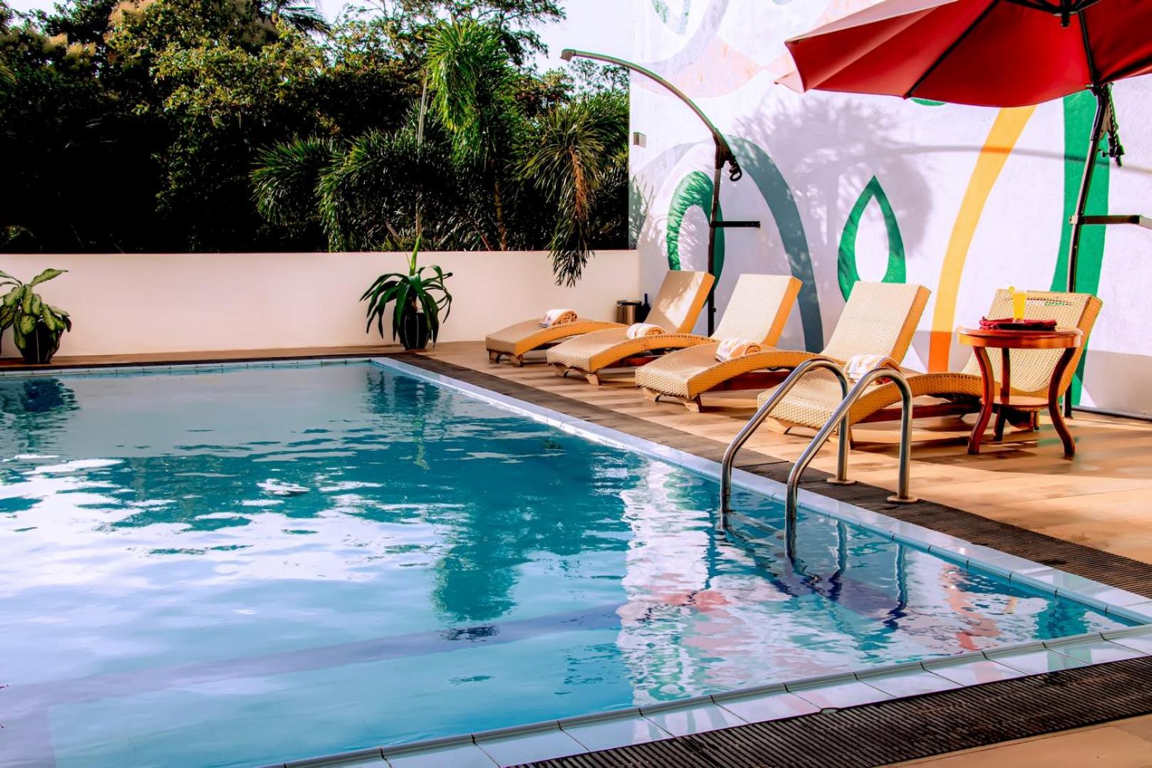 Kanola Luxury Hotel in Anuradhapura offers air-conditioned rooms with free WiFi and city views. Guests can relax on the terrace, take a dip in the indoor pool, or unwind in the shared lounge. The rooms are elegantly furnished with modern amenities including a flat-screen TV, safety deposit box, and private bathroom. Some rooms even feature a balcony for a panoramic view of the surroundings.