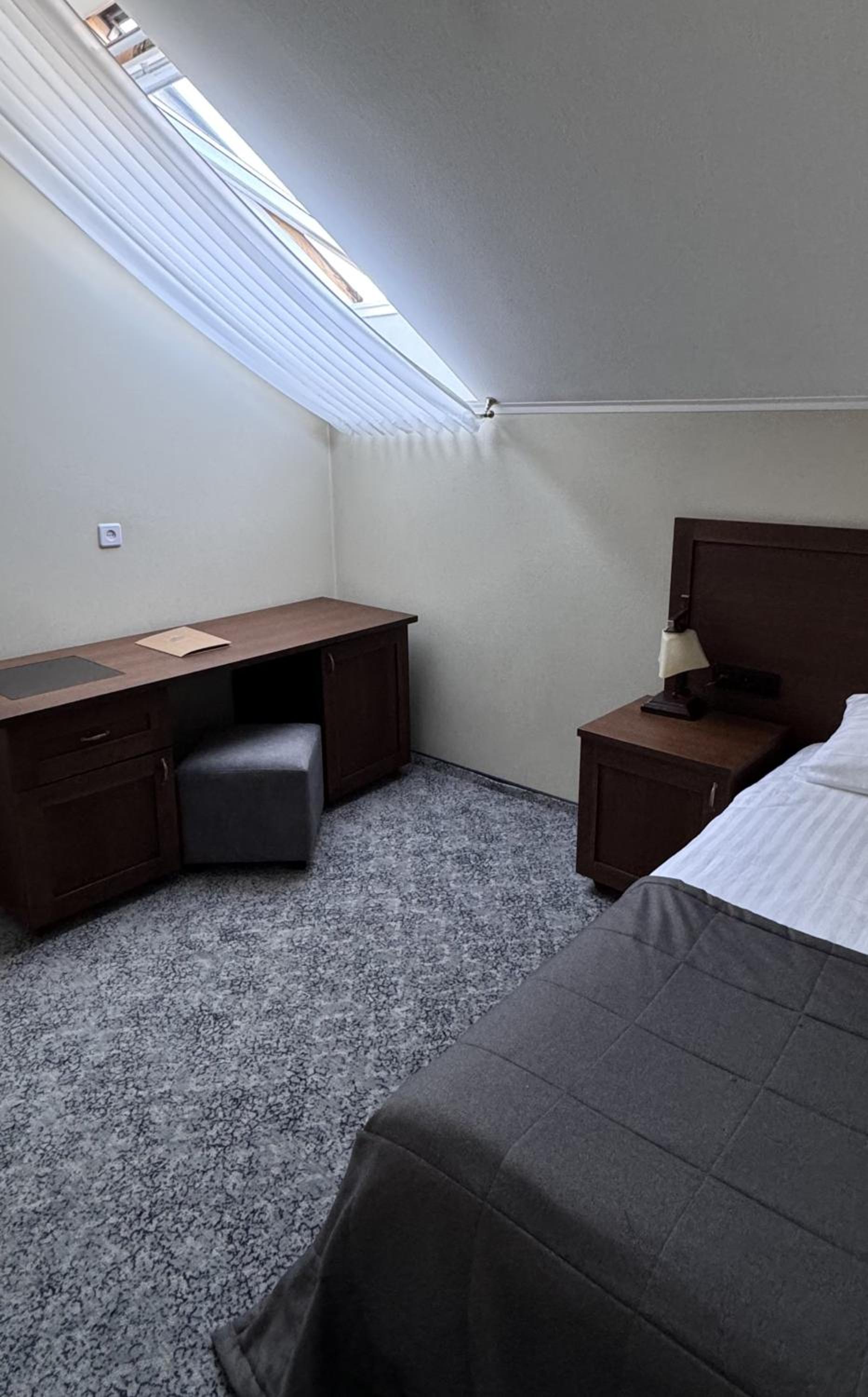 Kambarys 3 aukšte kampe. Langas - stoglangyje.