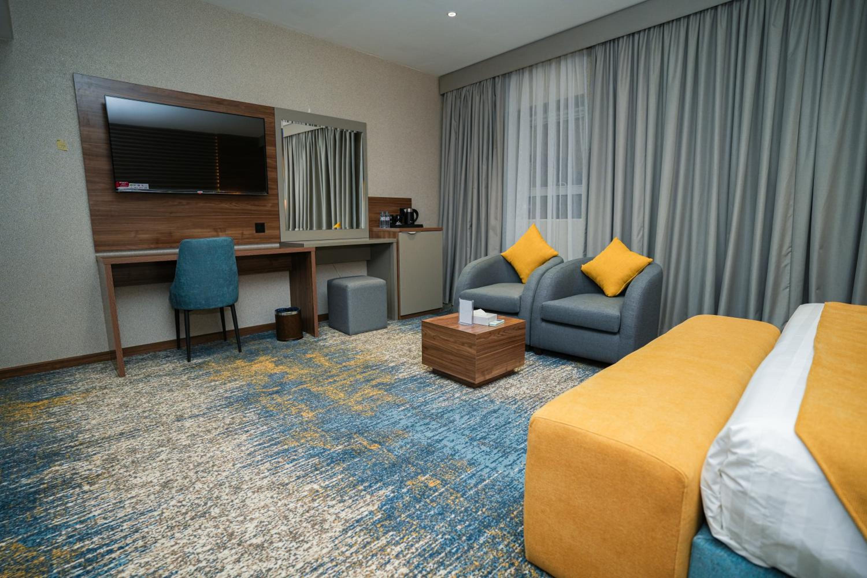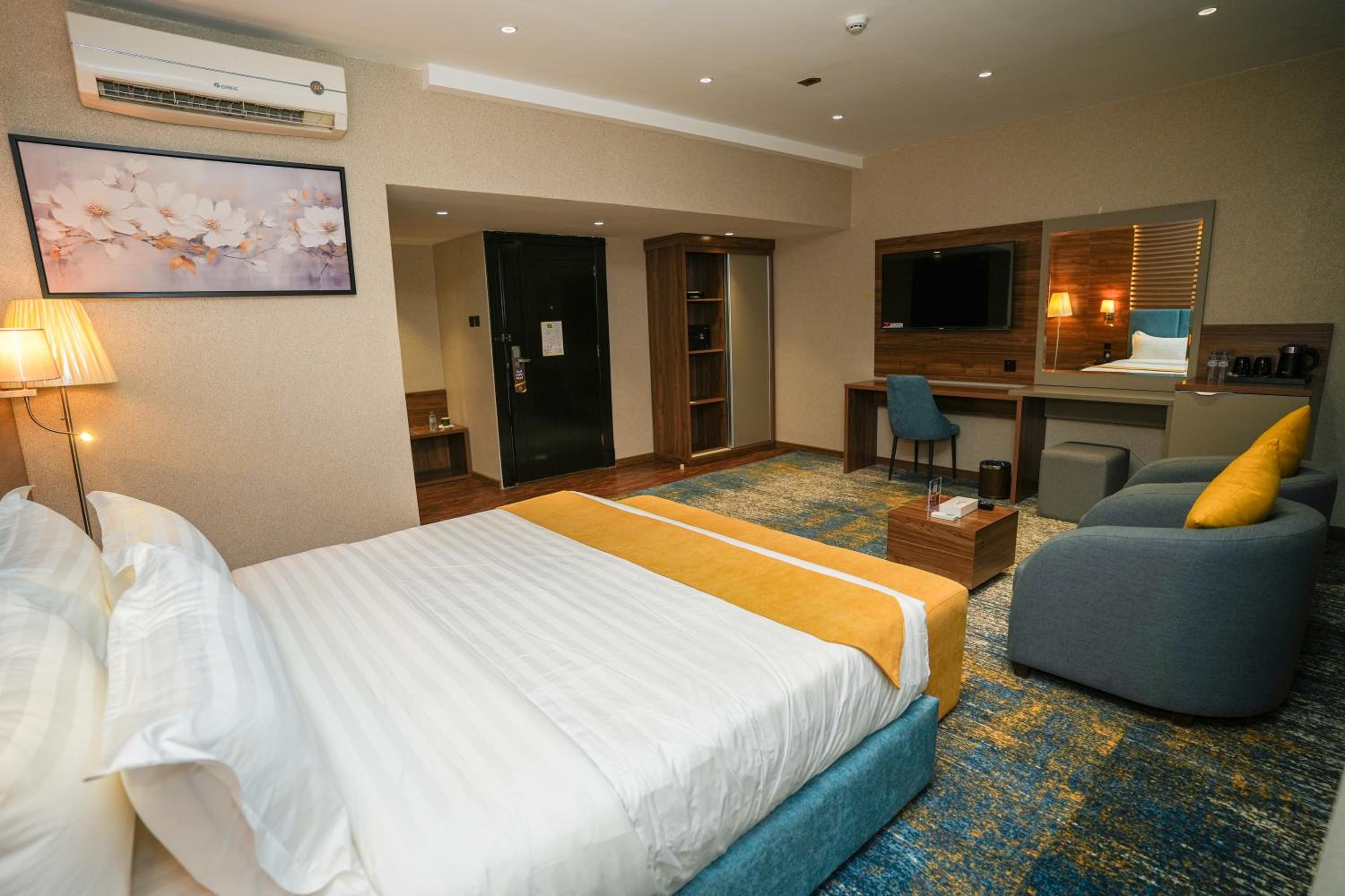 Experience contemporary comfort at Haven Plaza in Riyadh. Each unit is equipped with a satellite TV, air-conditioning, a spacious living area, and a well-stocked minibar. The suites also feature a cozy dining table, perfect for enjoying meals in the comfort of your room.