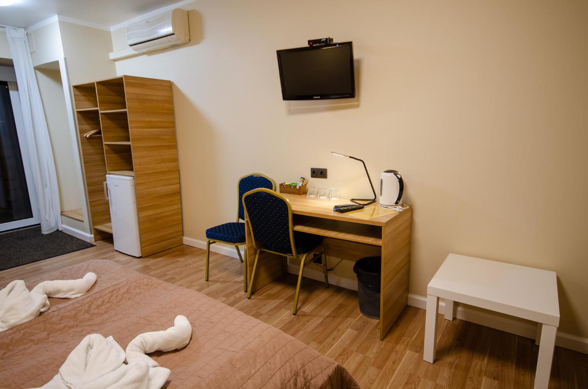 Each air-conditioned room at Veldzes Nams is equipped with basic kitchenware, an electric kettle, LCD TV, and cozy wooden furniture, ensuring a comfortable and convenient stay for all guests.