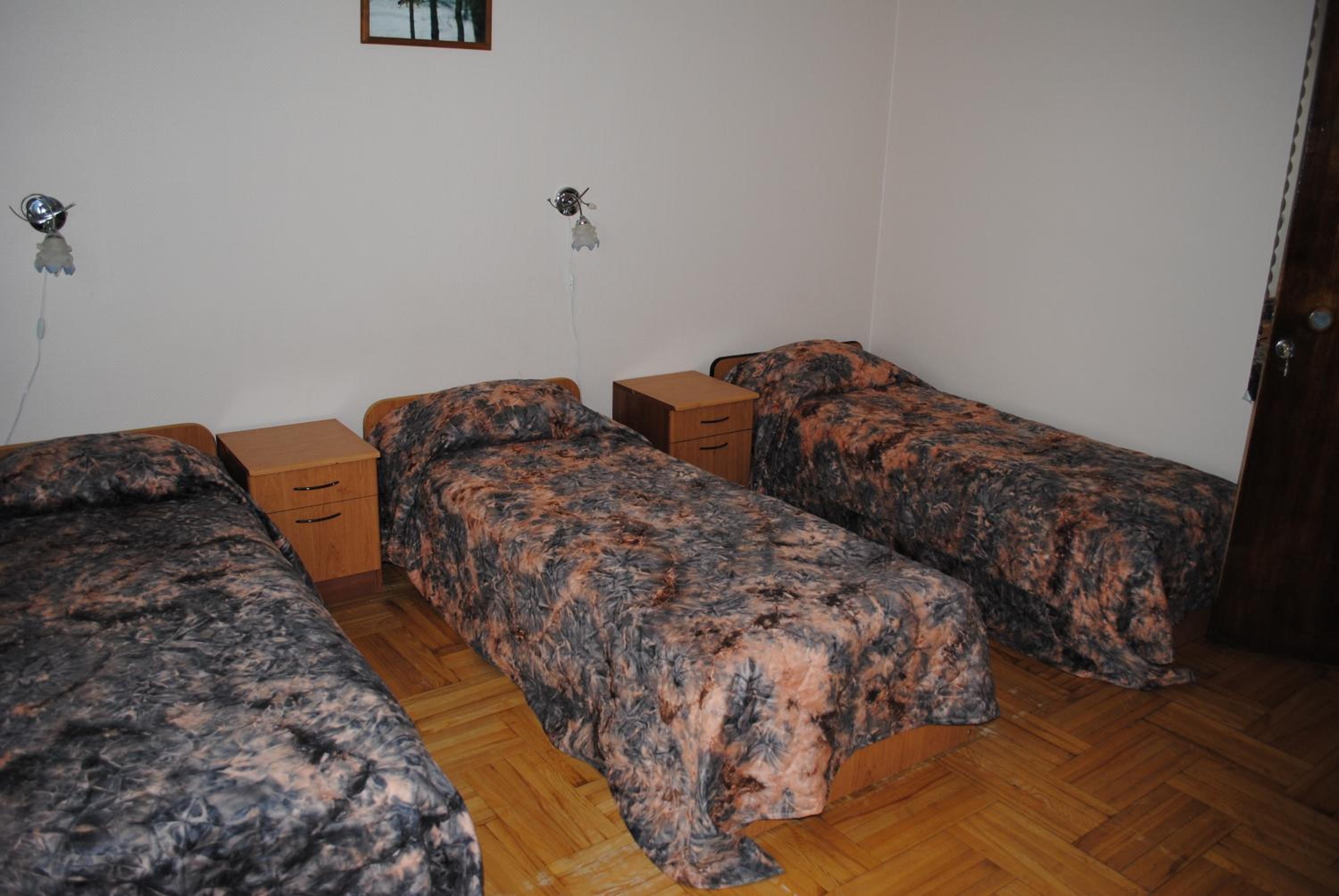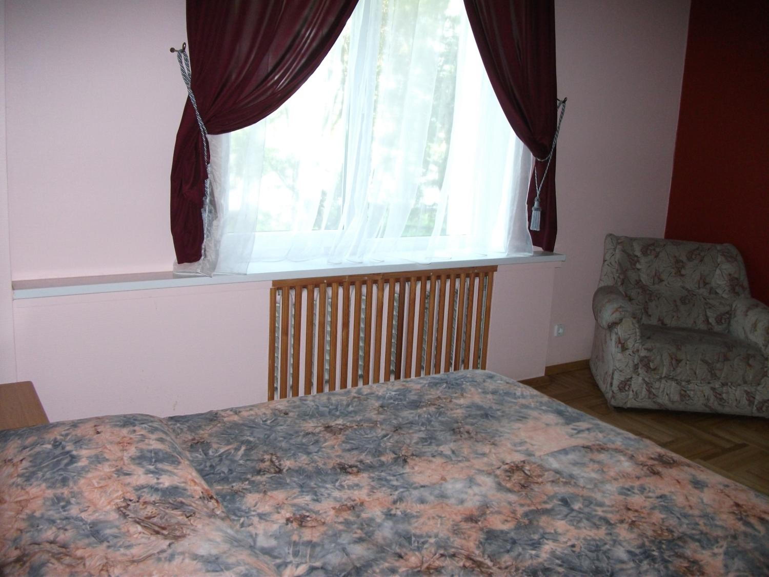Kambarių apstatymas tarybinio bendrabučio, kvapas vonios kambaryje, po langais ilgai ir garsiai vakarojantys kiti viešbutuko gyventojai