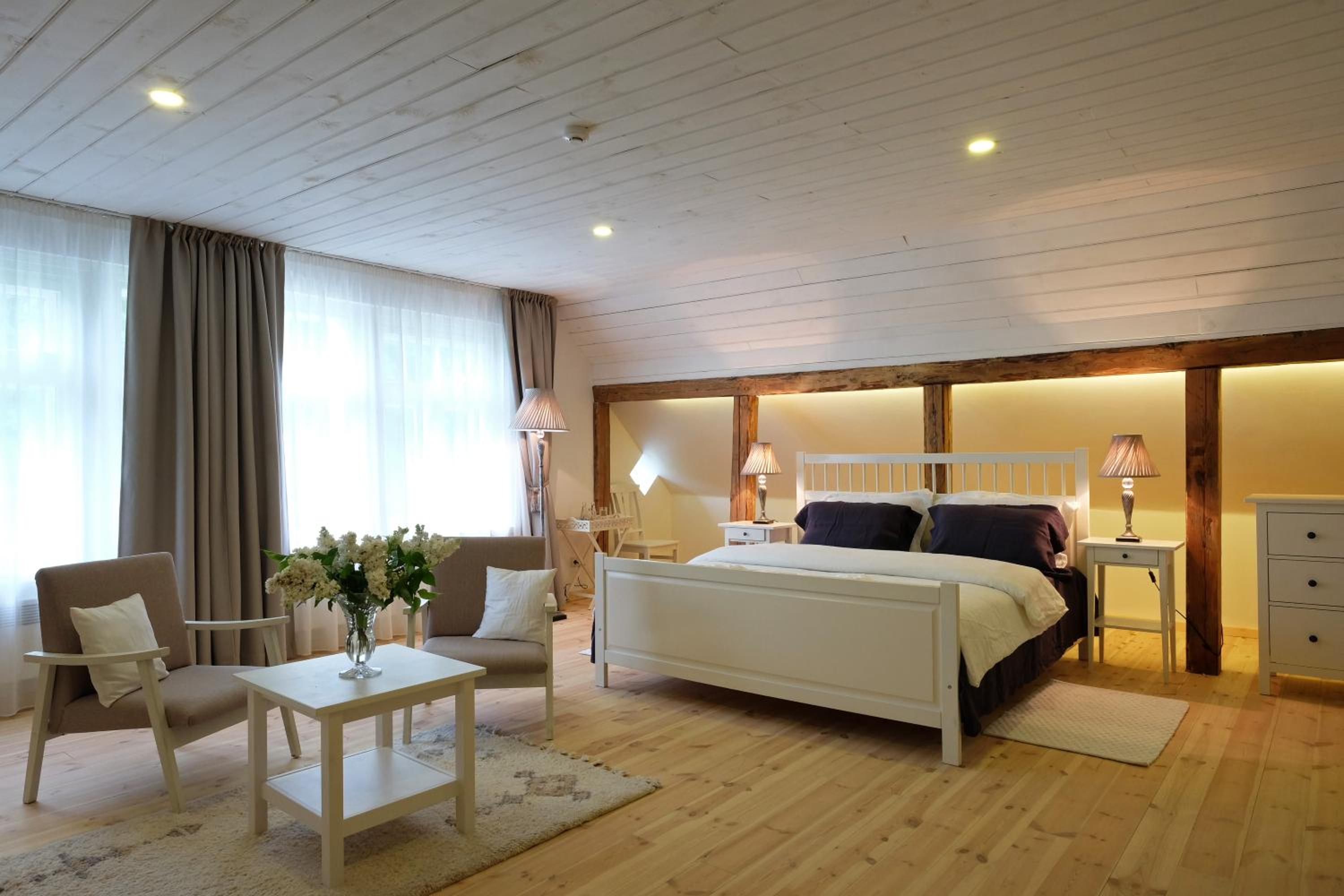 Beautiful interior, cozy and peaceful. Tasty breakfast.