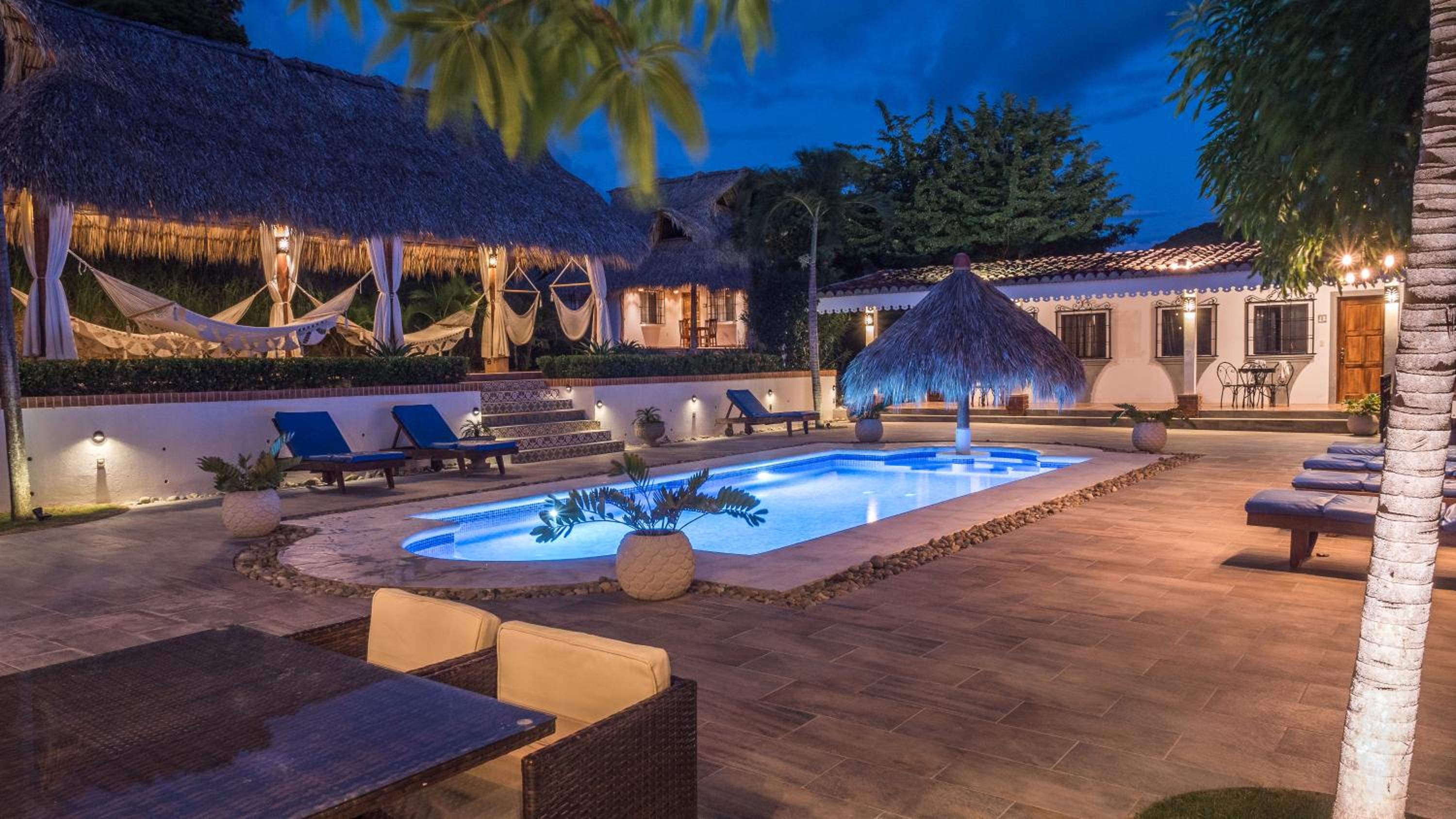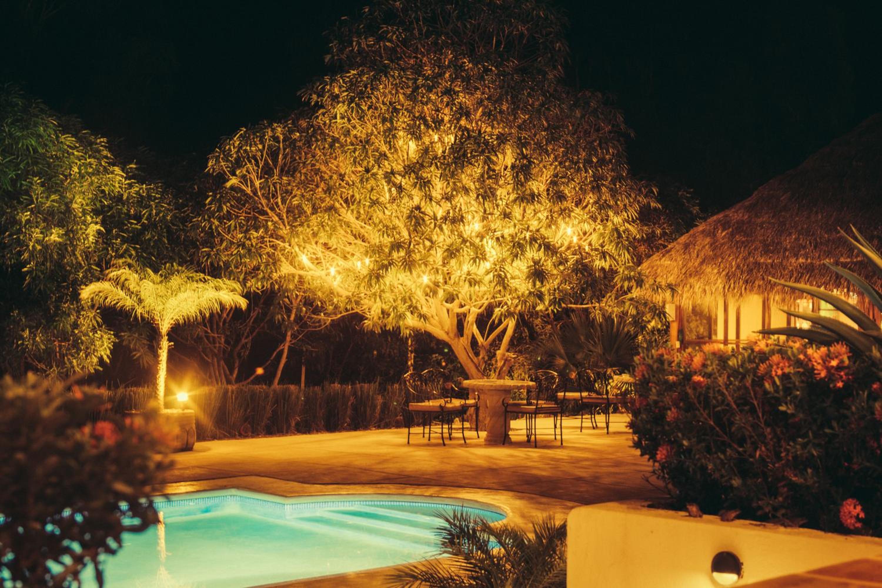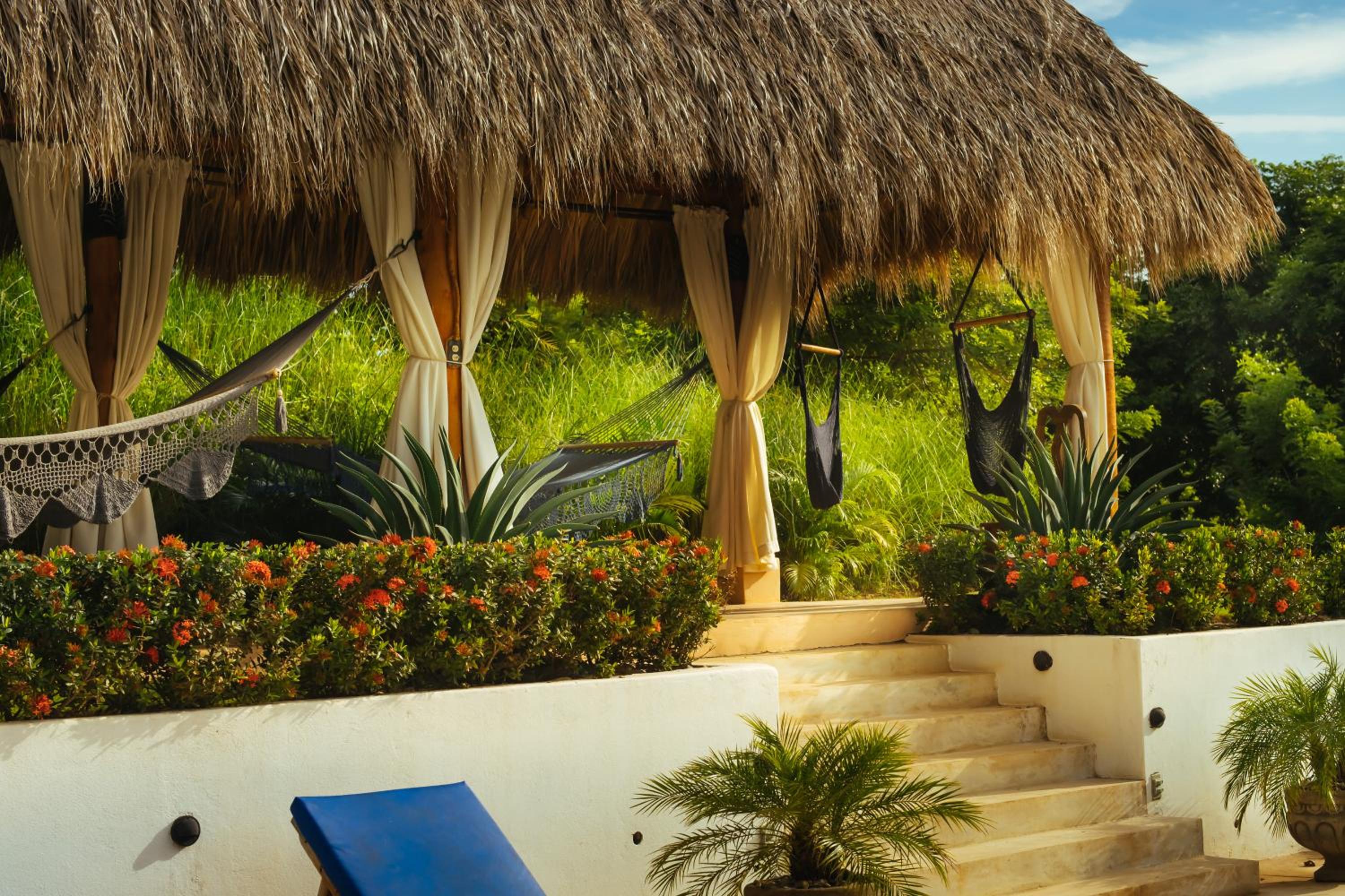 The beautiful gardens around the pool, the delicious food especially the fish tacos! The quiet spacious room with hammock outside. The friendly staff. The short pretty walk to the sunset beach that’s dotted with a few bar restaurants. All very relaxed.
