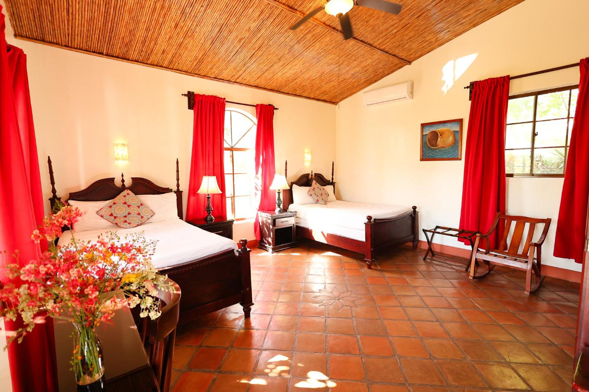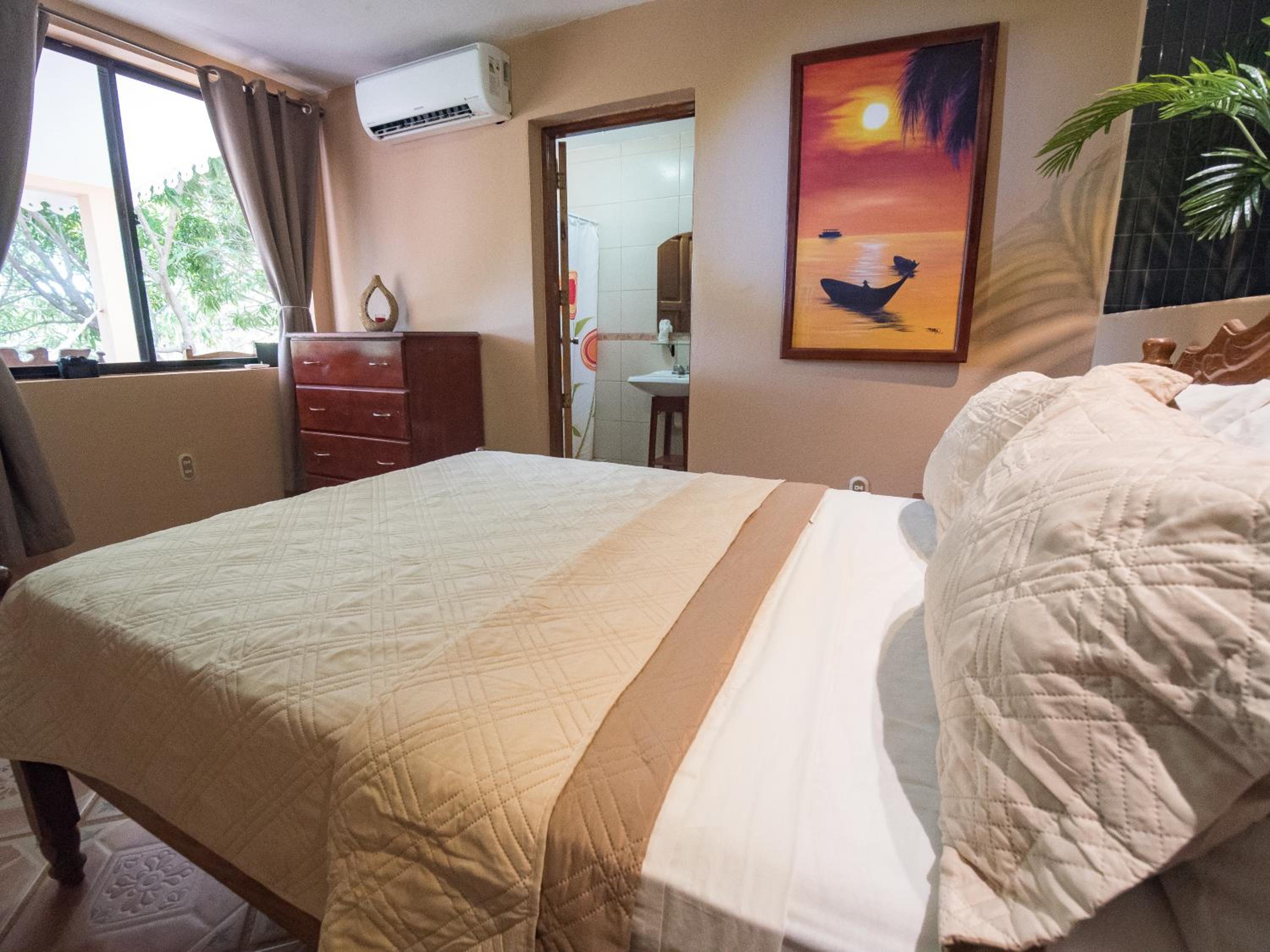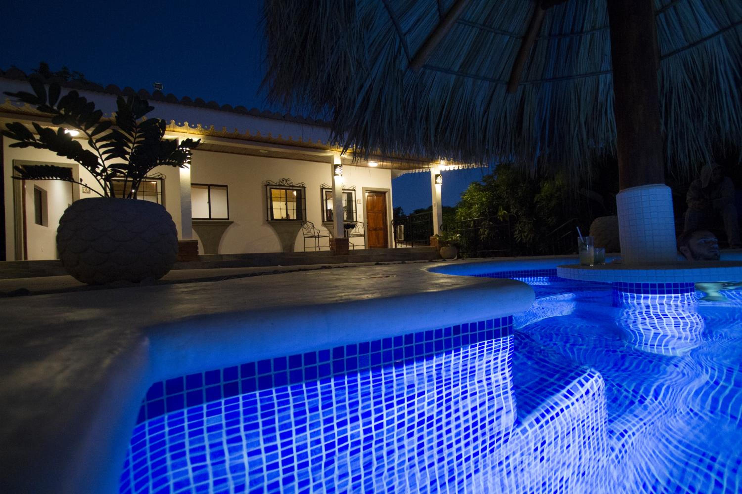 The beautiful gardens around the pool, the delicious food especially the fish tacos! The quiet spacious room with hammock outside. The friendly staff. The short pretty walk to the sunset beach that’s dotted with a few bar restaurants. All very relaxed.