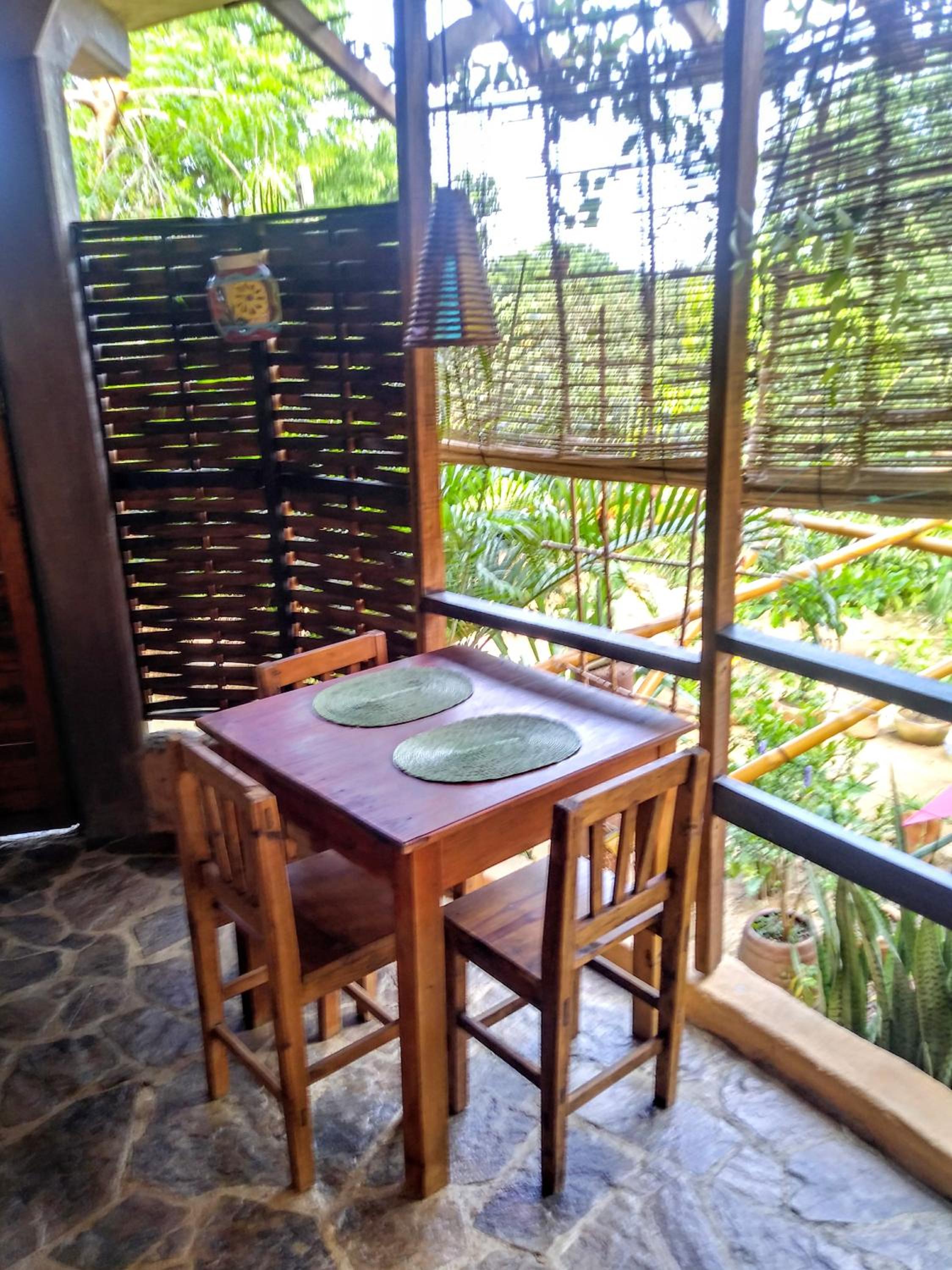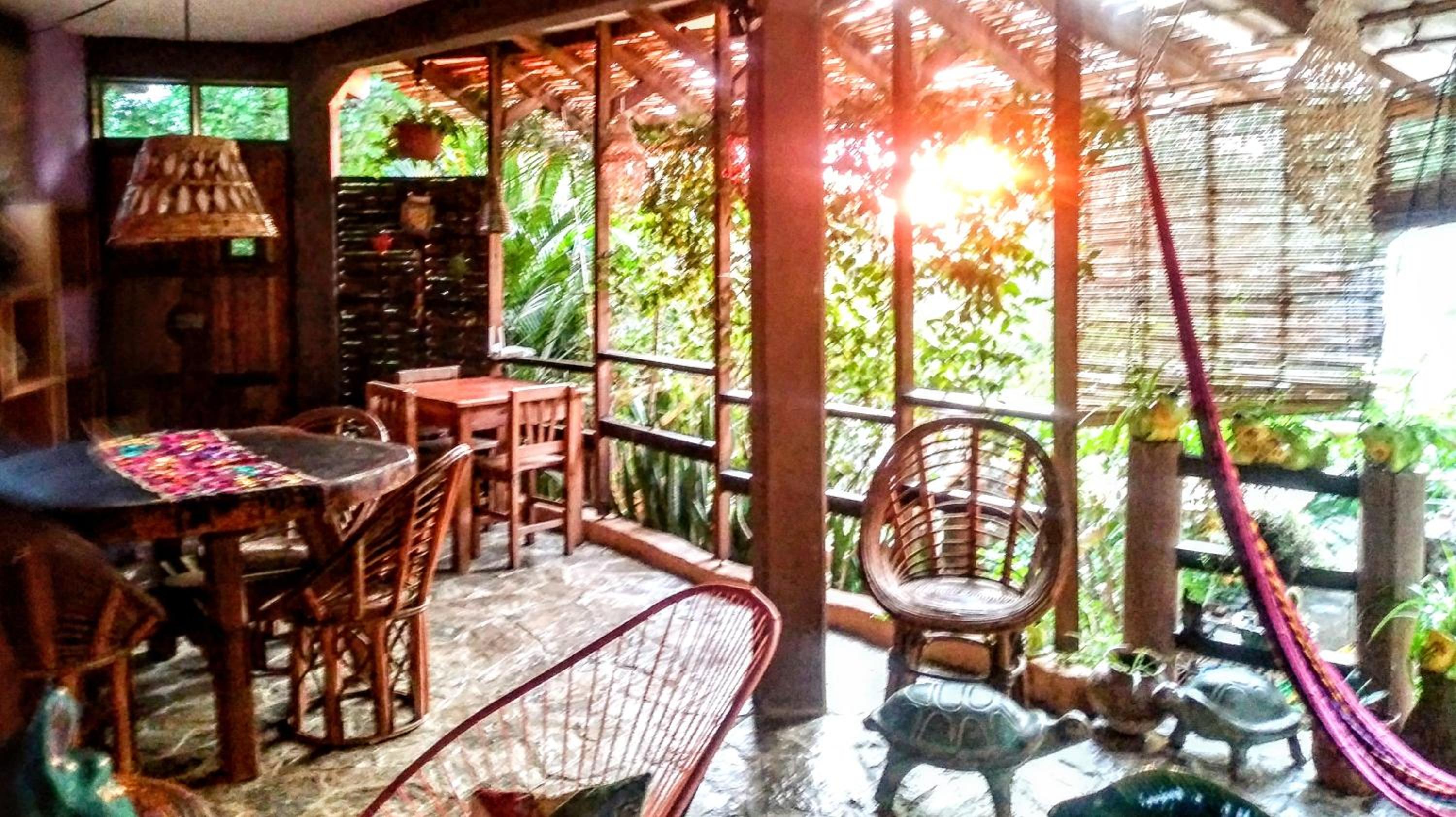 De plek, vlak bij het strand maar volledig verscholen tussen prachtige planten en bomen. Het ligt op een rustige plek niet aan een doorgaande weg dus heerlijk rustig. Onze kamer was van alle gemakken voorzien en volledig insecten vrij. De gezamenlijke keuken is van alle gemakken voorzien en er zijn verschillende gezellige (schaduw) zit plekjes om te eten, te lezen of een spelletje te doen. In de ochtend staat er een pot lekkere koffie klaar en in de koelkast staat altijd koud water om te pakken. Wij zijn hier 5 nachten geweest en vonden het geweldig!