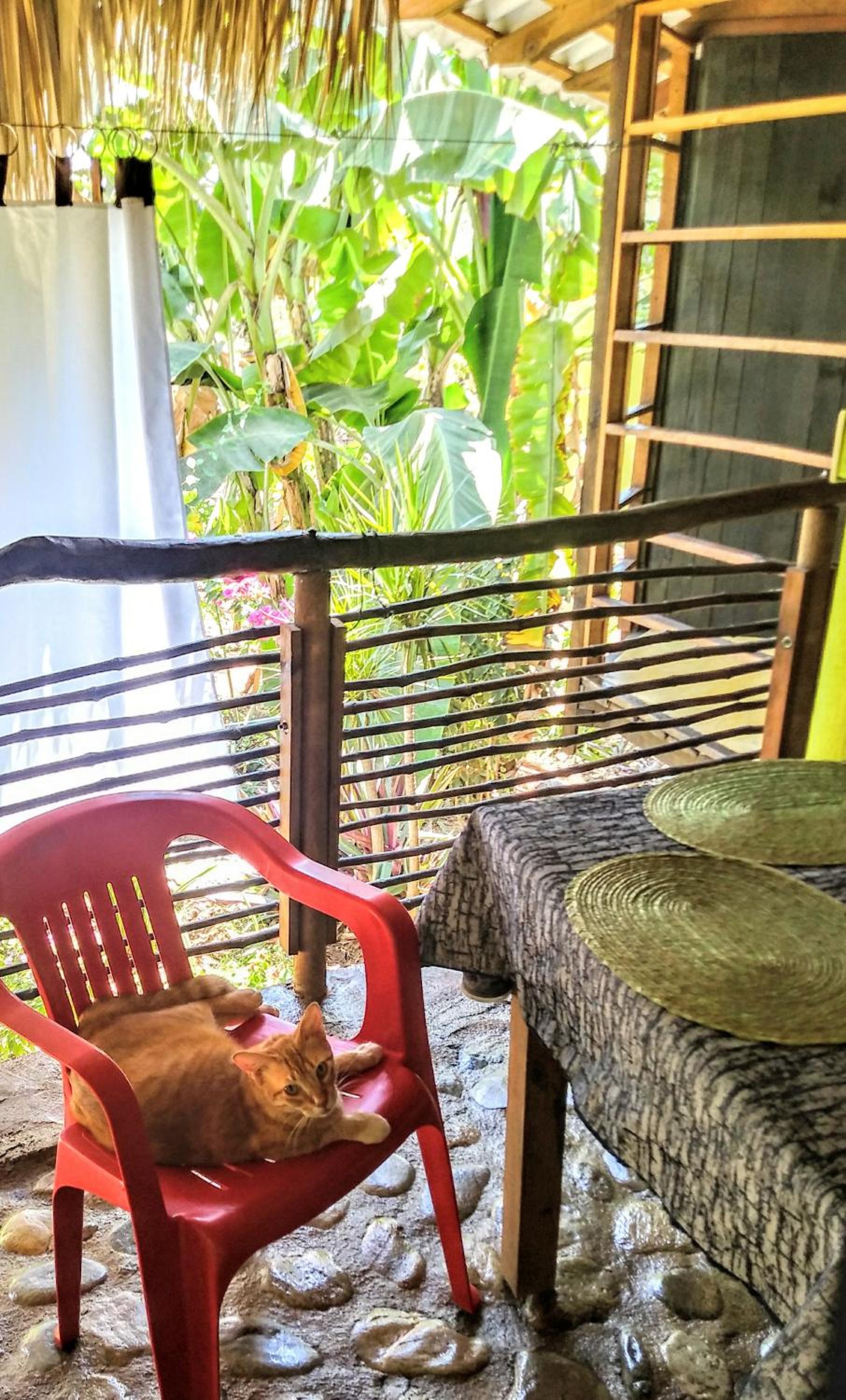 La beauté des lieux, du jardin luxuriant jusqu’aux matériaux de construction. Le café préparé par les hôtes le matin. Les animaux domestiques et les iguanes. La corde à linge et l’évier servant à laver le linge. La proximité de la Playa Bebé. Tout est très bien pensé pour un séjour confortable. Marco et Roberta sont très sympathiques.