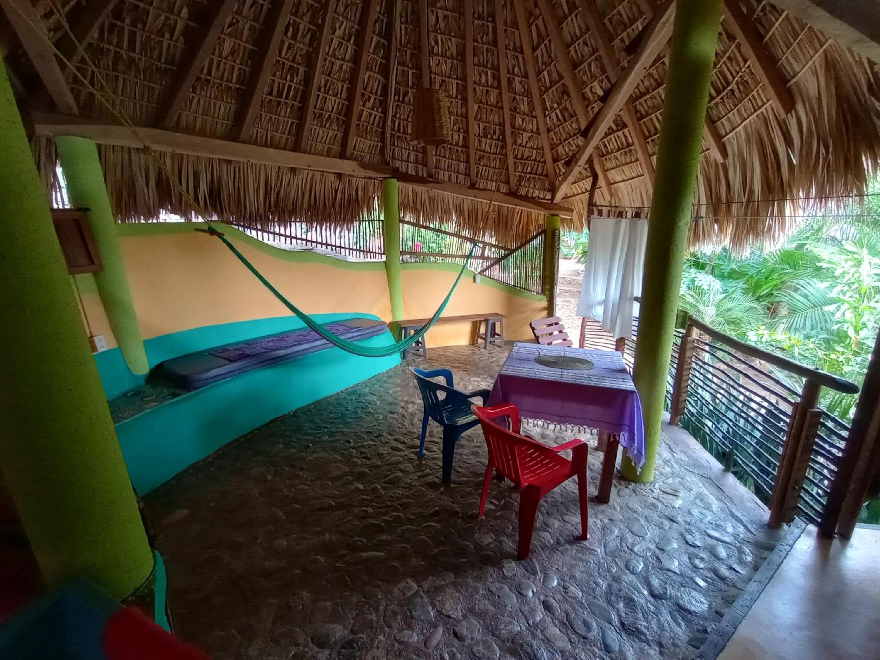 Me sentí muy bien recibida, Marco estuvo siempre en contacto por si algo necesitábamos y él y su pareja fueron siempre amables y atentos. Sus perritos son adorables y tranquilos. Nosotros nos quedamos en la cabaña y me gustó que la parte que es como un patiecito se siente fresca a pesar de que pueda hacer mucho sol. El jardín es hermoso y tuvimos la oportunidad de ver algunos animales libres, como tlacuaches, ranas, geckos e iguanas negras, además de oír distintos tipos de aves cantar. La playa está super cerca, es posible ir a pie y llegar en más o menos 5 minutos. También pudimos ir Punta Cometa para observar el atardecer, y a Ventanilla para visitar el manglar, ver cocodrilos y aves, además de liberar tortugas bebés. Llegamos en más o menos 10 minutos en taxi, aunque también es posible llegar en unas camionetas que se usan como transporte colectivo y pasan muy cerca de este alojamiento. Cobran más o menos 15 pesos por persona. Cuando necesitamos taxi, Marco fue muy amable y nos apoyó para llamarlo o reservarlo. Muchas gracias por todo!