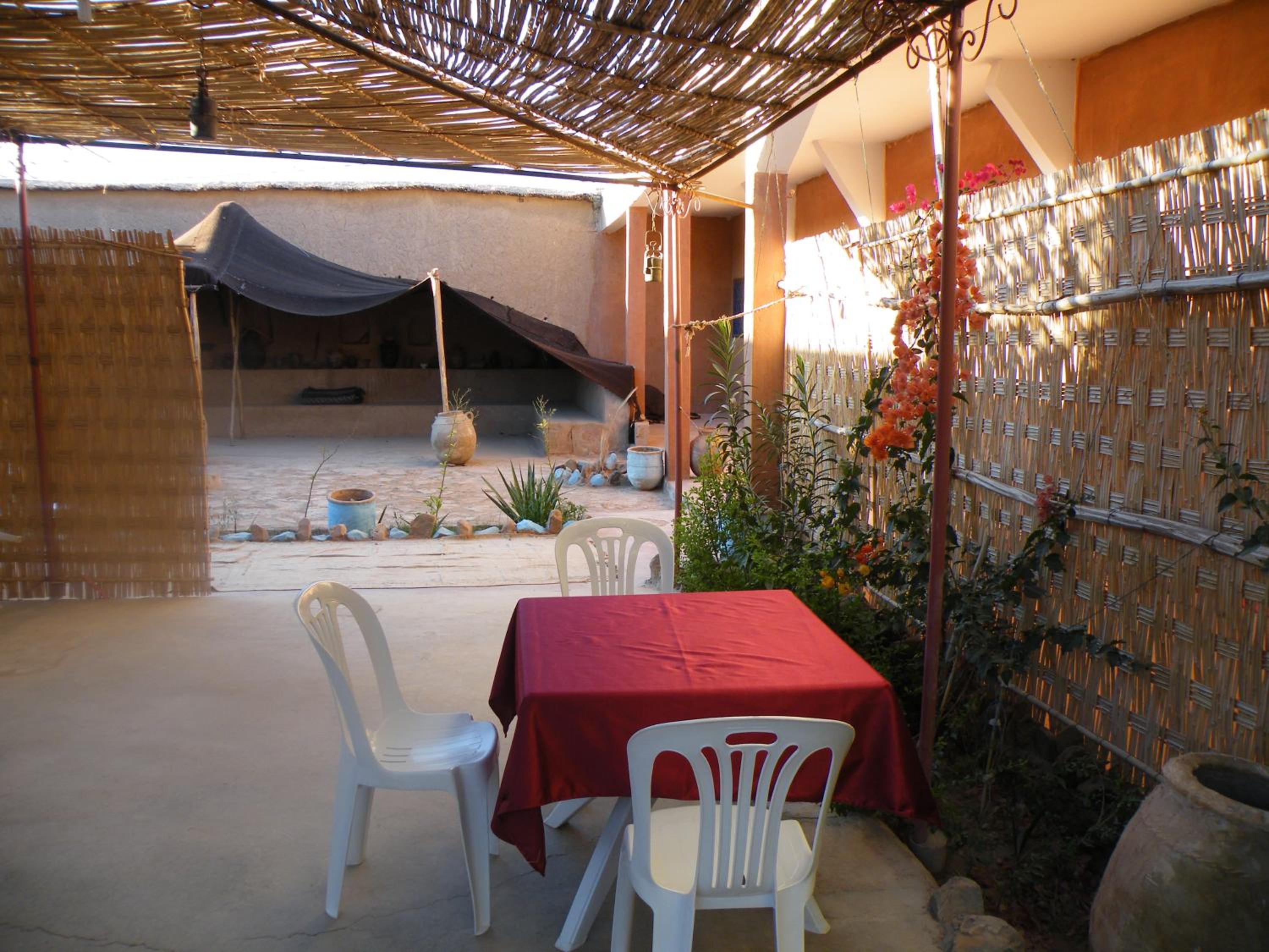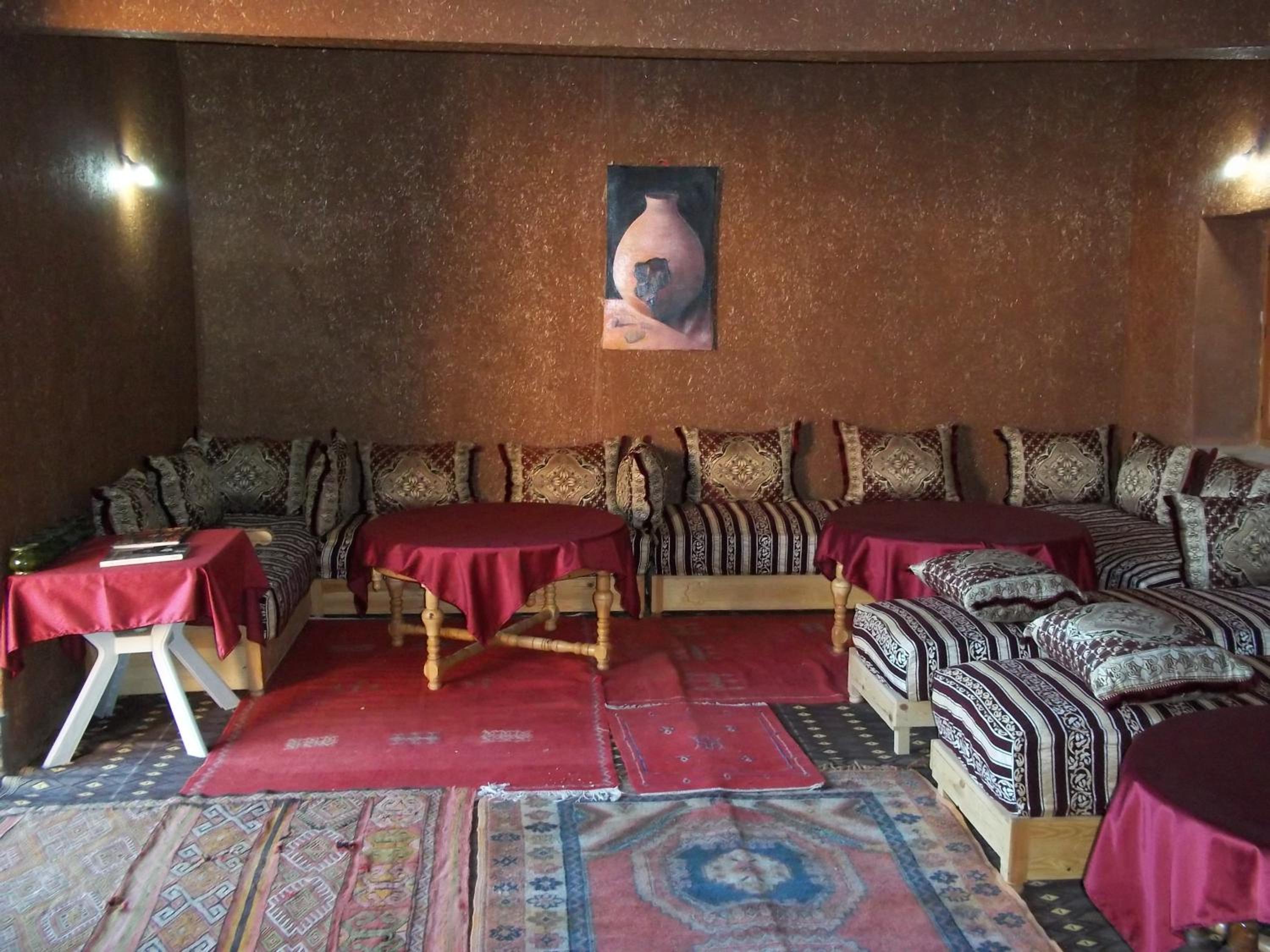 Er is een mooie buiten plaats waar je kon theedrinken en eten. Mooi en gezellig. Ook de manager Mustafa was heel vriendelijk en zorgzaam! De locatie is een goede startpunt voor je excursies naar de woestijn!