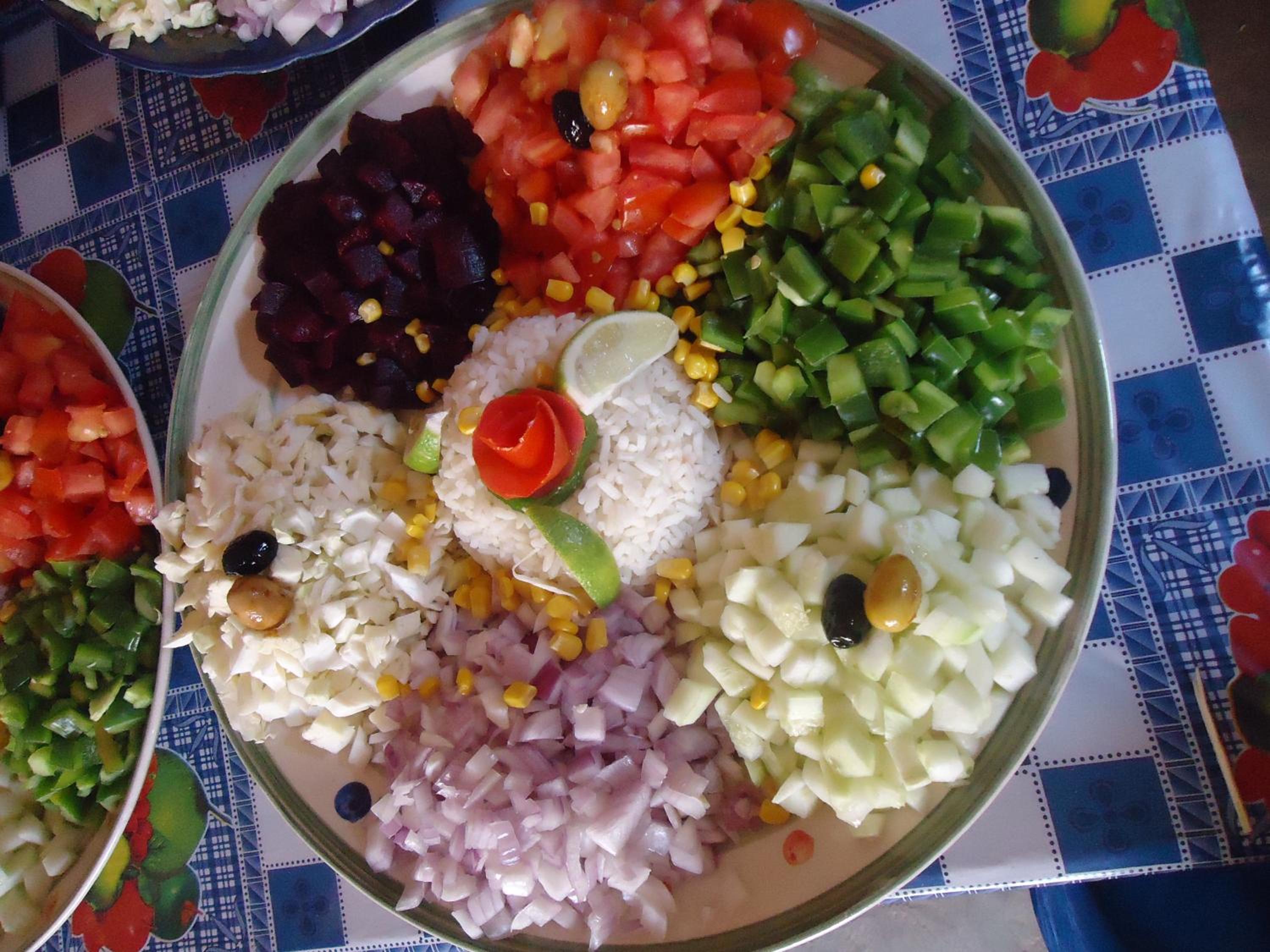 Het Marokkaanse ontbijt was erg uitgebreid met o.a. omelet, yoghurt en wel een liter just d'orange! Die we mee moesten nemen voor onderweg!