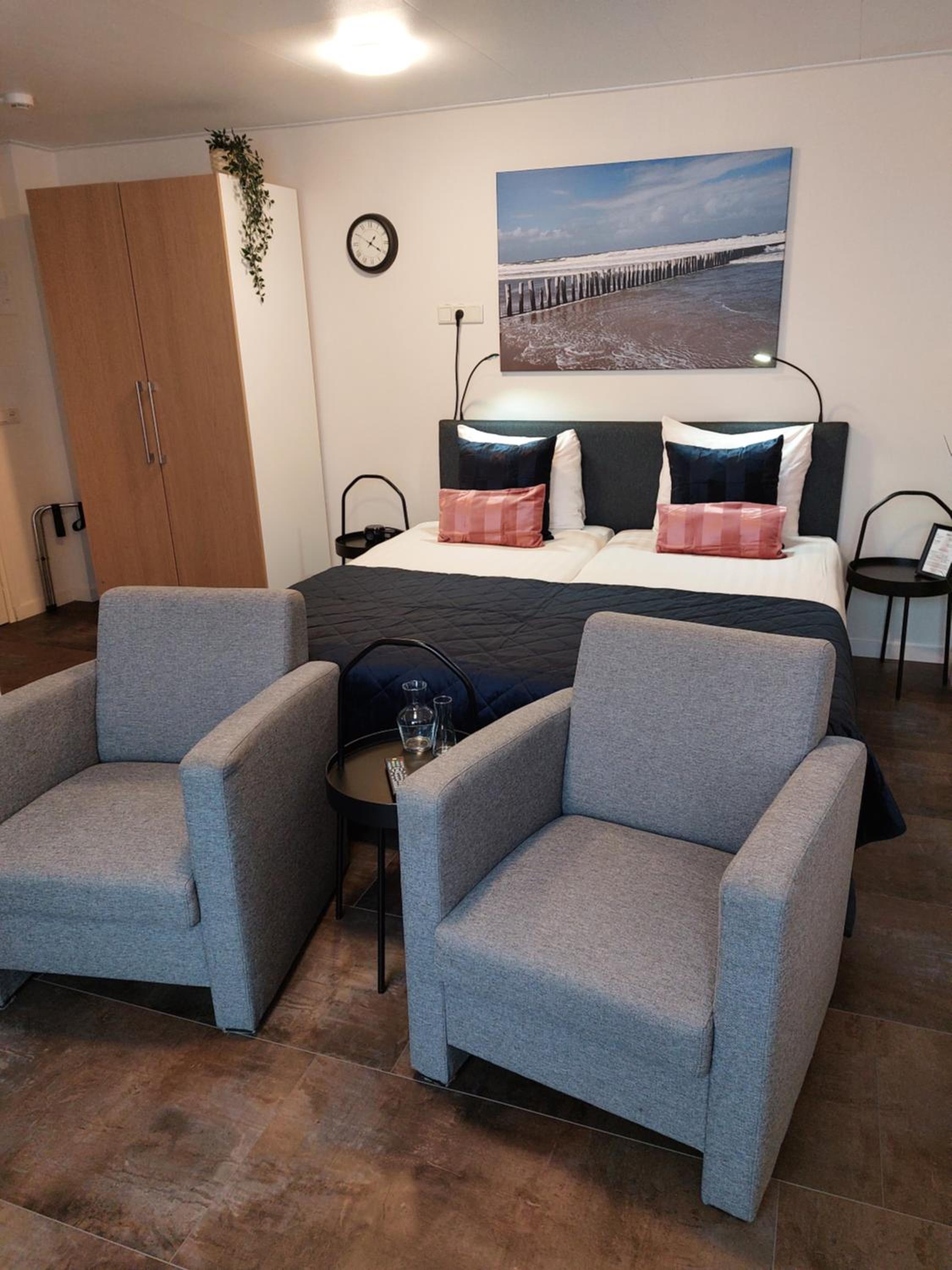 Bij aankomst werden we vriendelijk ontvangen. De kamers waren schoon.