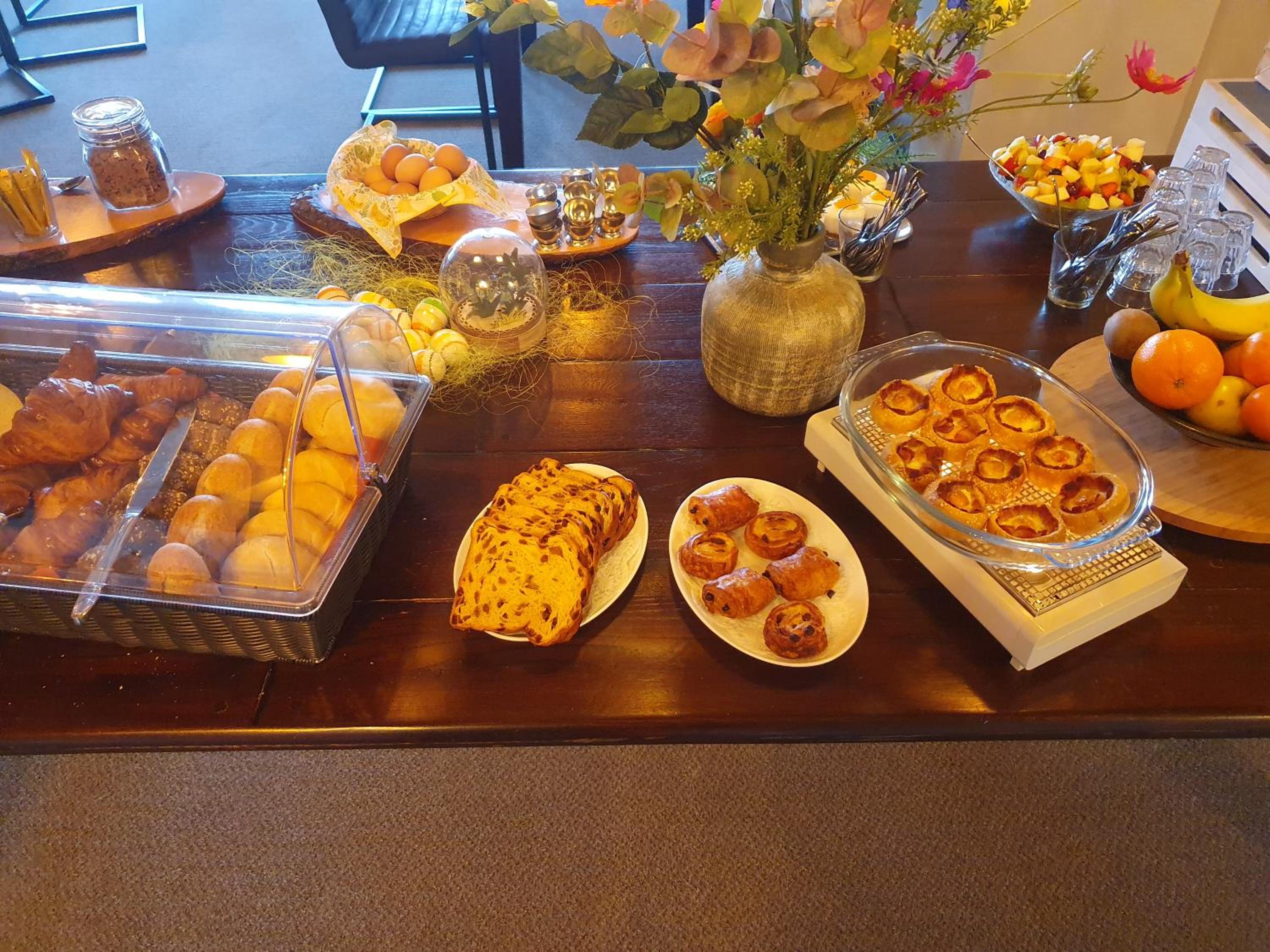 Goed ontbijt, mochten eerder in de kamer wat erg fijn was. Rustige locatie.