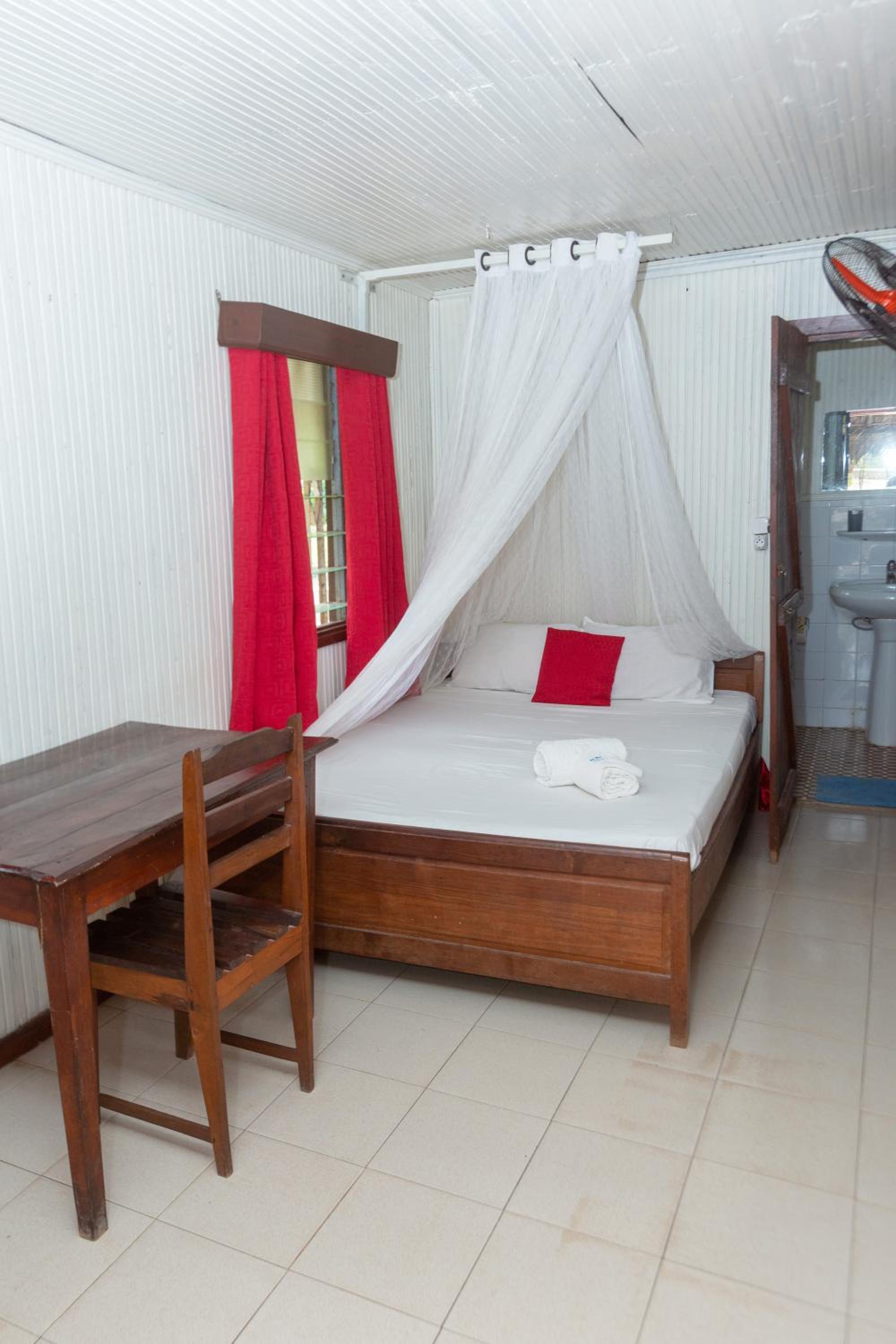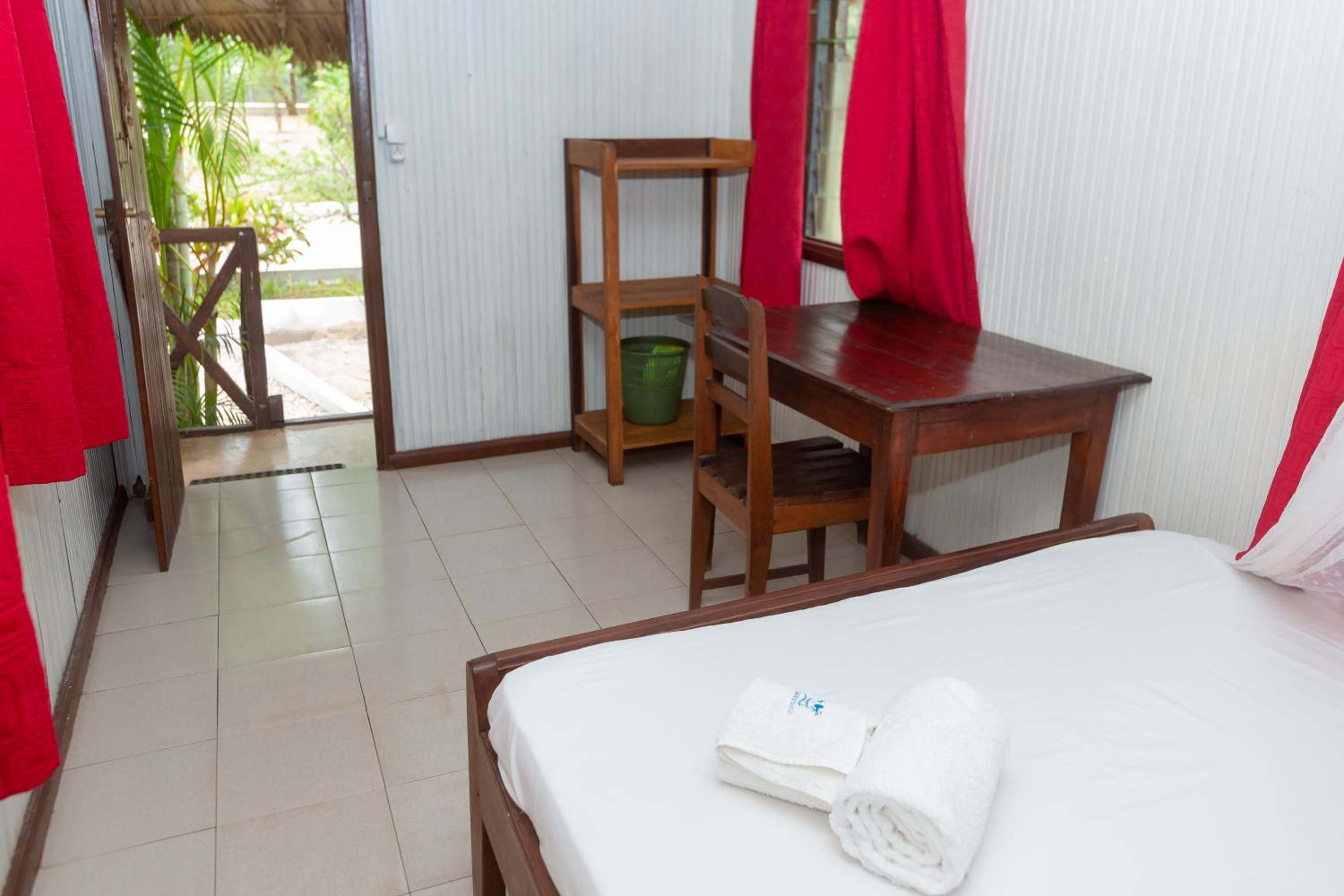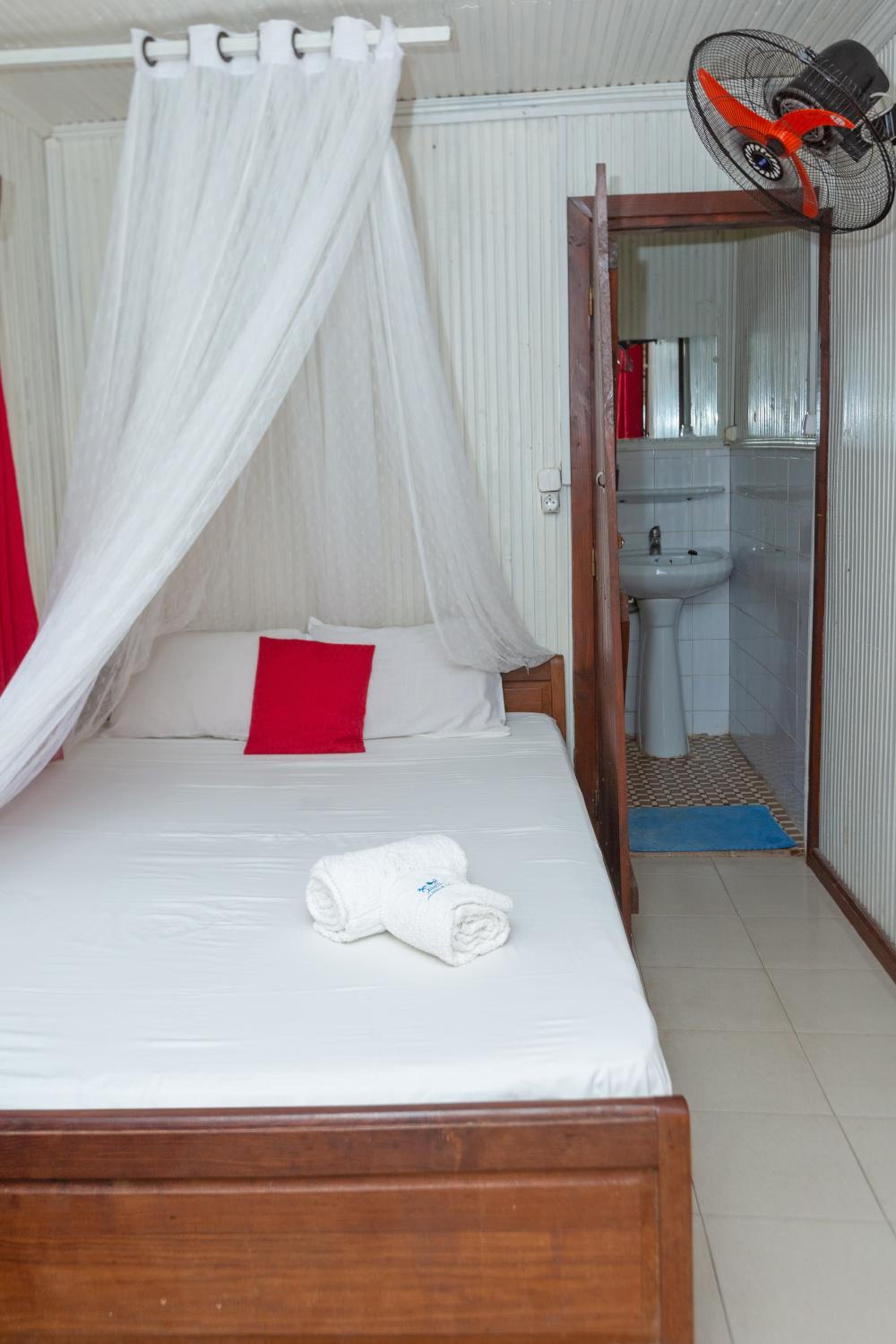 Malheureusement, ce n’est pas de la faute de l’hôtel, mais se taper en tuctuc un chemin complètement cabossée sur 800 m, ça se coupe pas mal . Peut-être les bungalow étaient un peu primitif. Et j’ai fait laver un T-shirt et un short m’accompagner aussi. Visiblement il faudrait apprendre à la femme qui lave le linge de laver le linge correctement, on nous l’a redonné avec les mêmes taches, je vais bien préciser est-ce qu’elle avait une machine, un lave-linge qui tourne les deux laver à 30°, mais je pense qu’ils l’ont fait à la main et il nous l’ auront rendu tel quel. Faut juste apprendre aux femmes de ménage à laver le linge correctement.