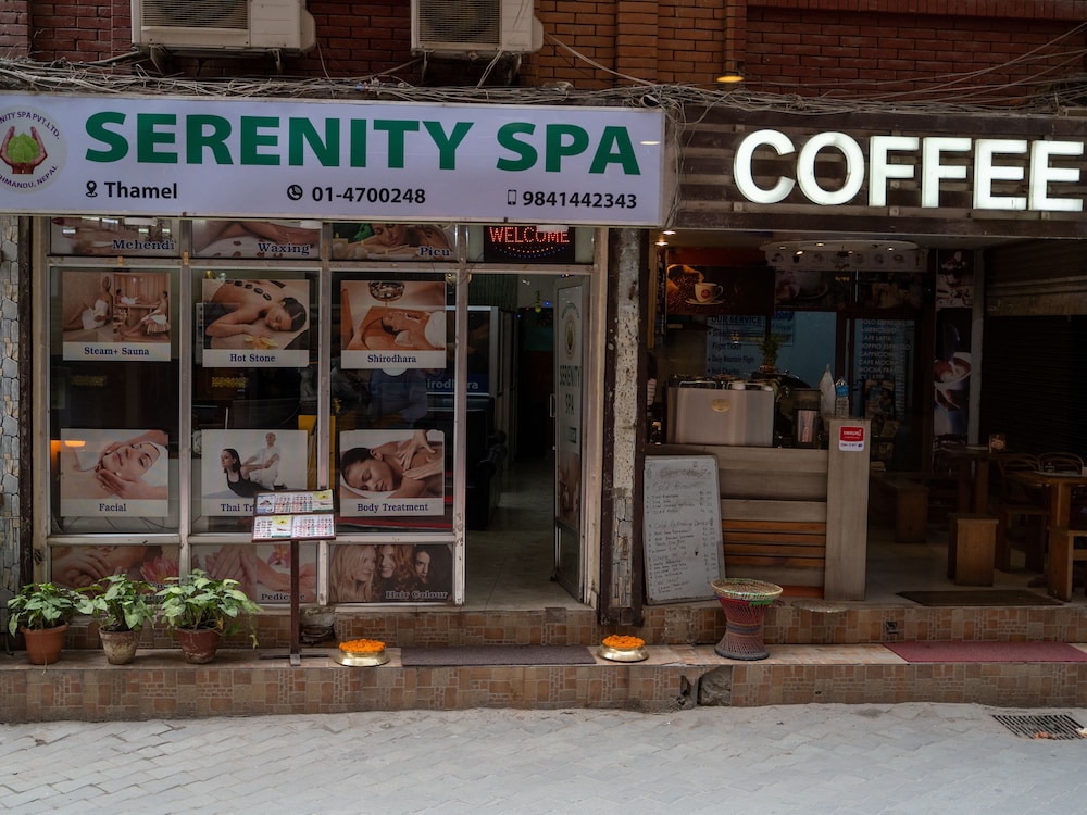 The hotel was located in the touristy area of Thamel, which is a little rough around the edges. The room had cockroaches (I killed 3), the sheets and towels were grey (the cleaning staff used the towels for wiping the floors), the bathroom was dirty (shelf above the sink, tile and toilet), and the sewer smell from the bathroom was unpleasant, however not unbearable. The staff just hang around playing with their phones, I would NOT recommend this hotel!!