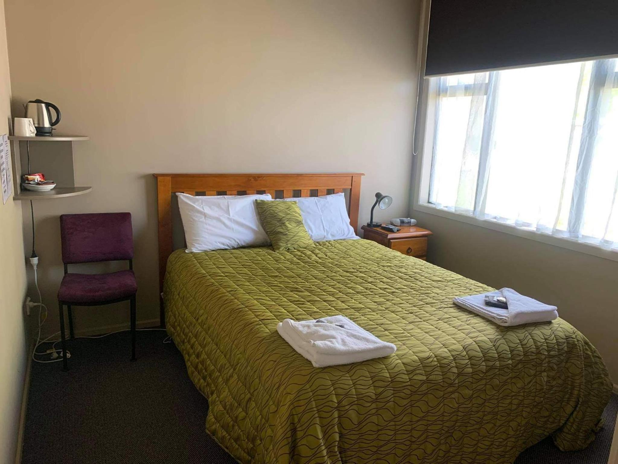 Both staff were excellent; very pleasant and nothing was a problem for them - thanks so much! While the premises were a little older, they were sparkling clean - not easy in this type of property. We had heaps of room, a very large bathroom and were very comfortable. Meals were fabulous in the bar.