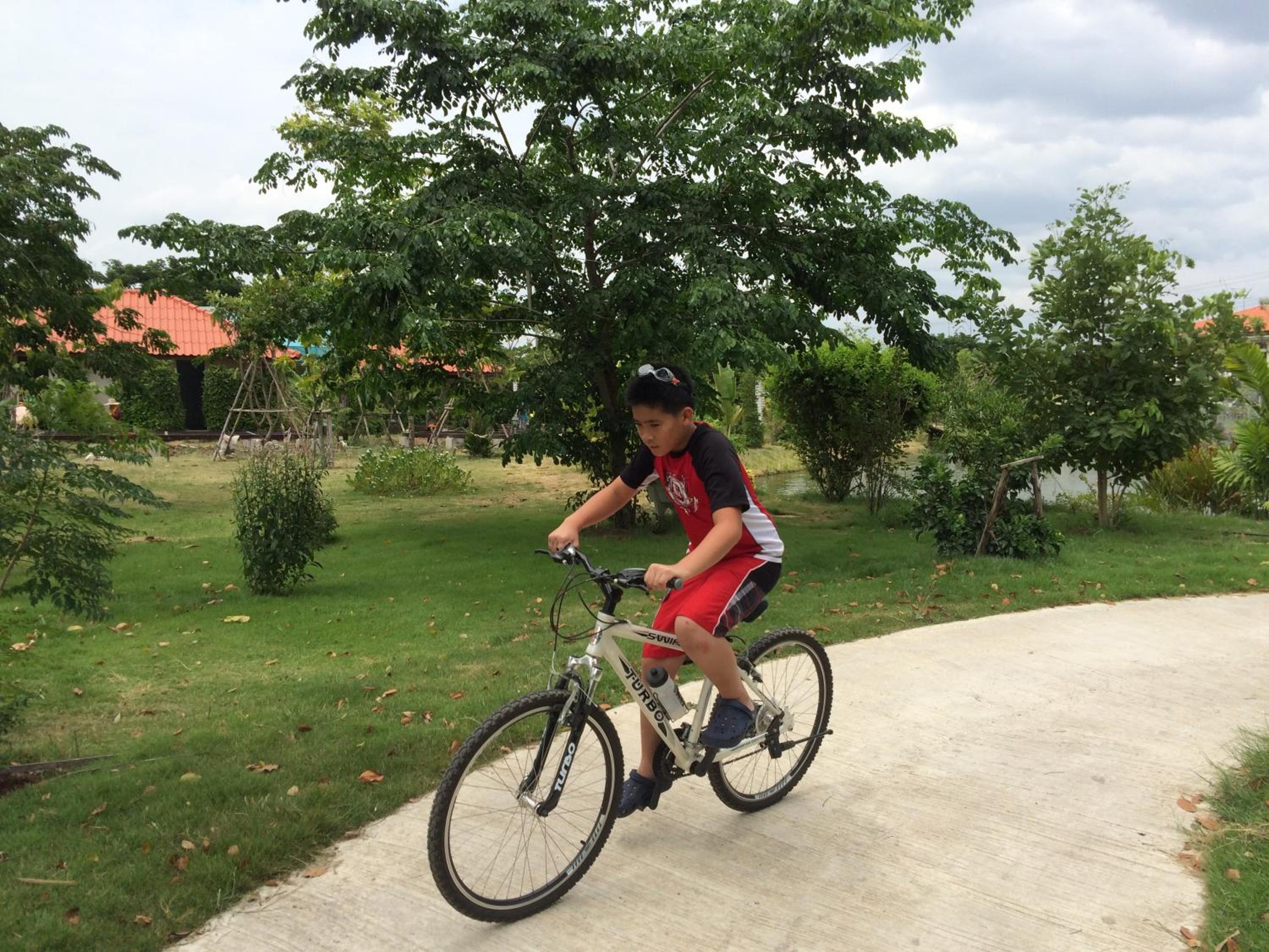 very quiet place, far from any city noise, parc with shady trees and a small pond with pedal boat , proper access for helpless person, very kind and diligent service people, 7/11 available at couple hundred meters.