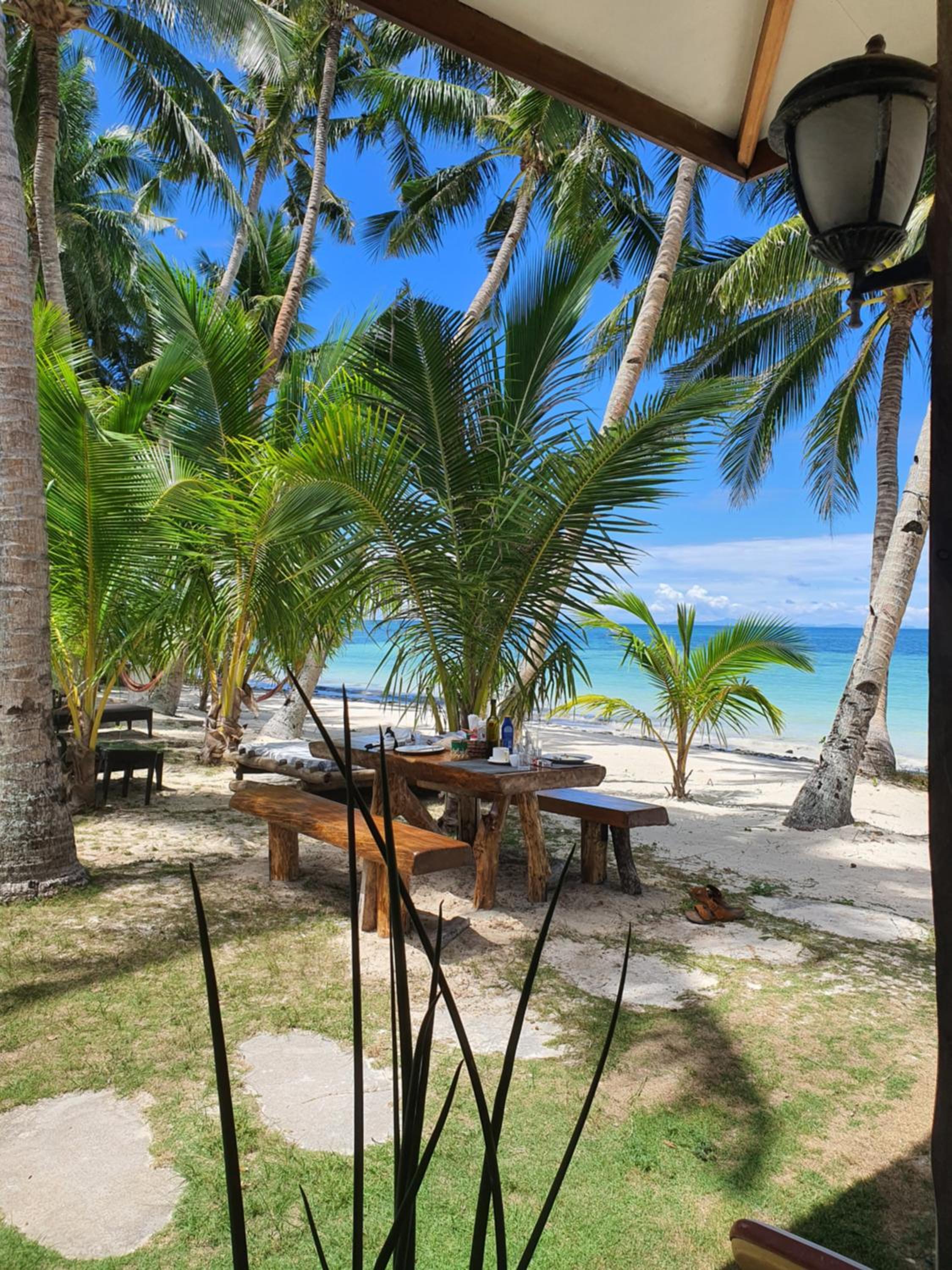 en premier le contact humain exceptionnel avec daisy,rose,jackie,jelyn,dinna, jang jang,vangie. toutes aussi, charmantes, arrangeantes, souriantes, arrivée sur place, nous découvrons notre bungalow en bois, face a la mer avec eau froide et son crime, mais c’est tout ce qu on aime. À notre demande elle faisait notre chambre en grand tous les jours. Elles nous ont même préparé le petit déjeuner car on part très tôt le lendemain et mis au frigidaire un petit paradis l’endroit de nos rêves. Merci. À toutes