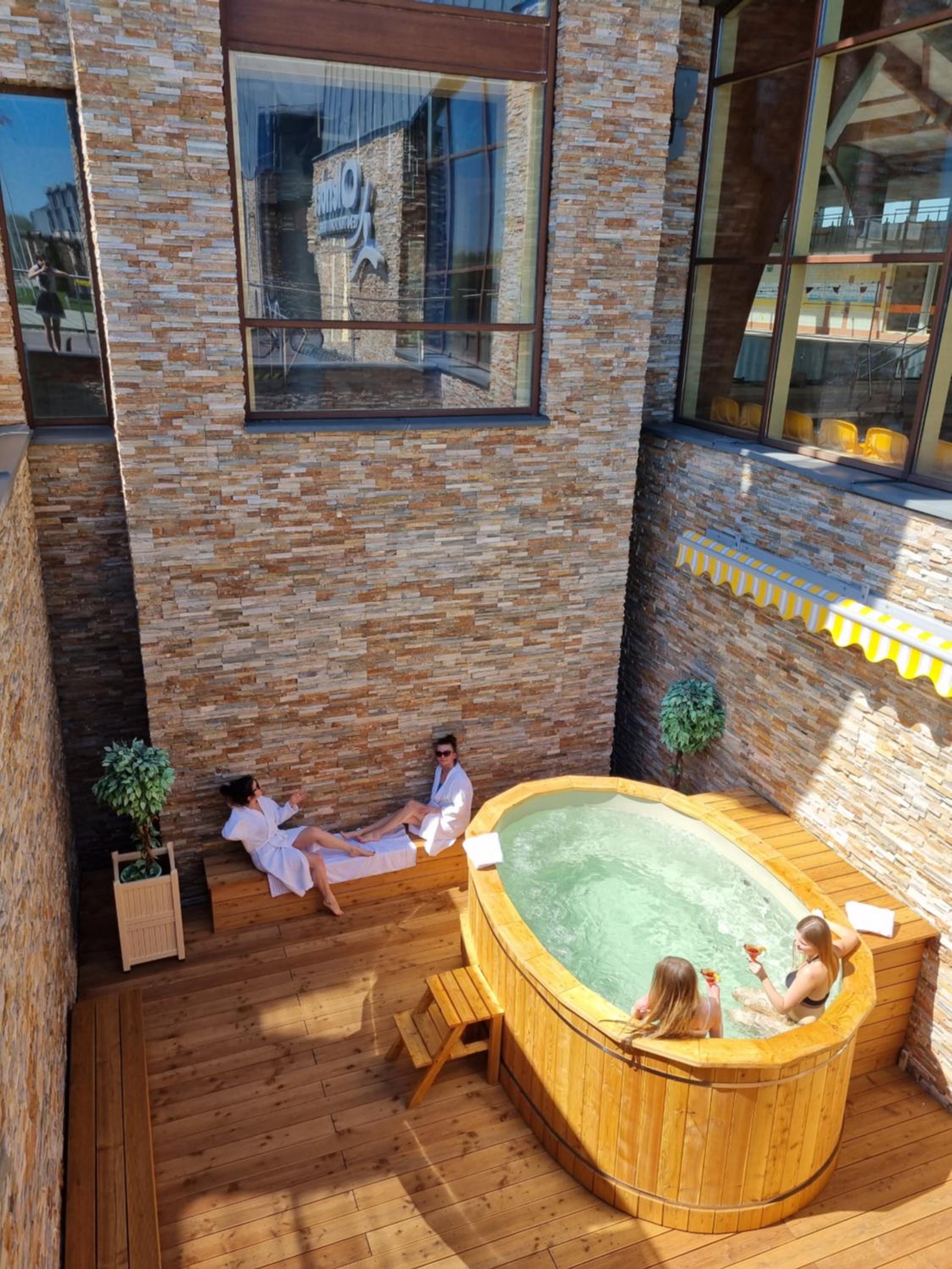 Dodatkowo nie podobało mi się to że nie można z saun korzystać w strojach. Niech ktoś spróbuje założyć go mokrego ponownie na ciało, masakra. Dodatkowo niektóre osoby, szczególnie mężczyźni przemieszczają się po pomieszczeniu w części między saunami nie okrywając swoich intymnych części ciała co było żenujące pomimo posiadających ręczników.