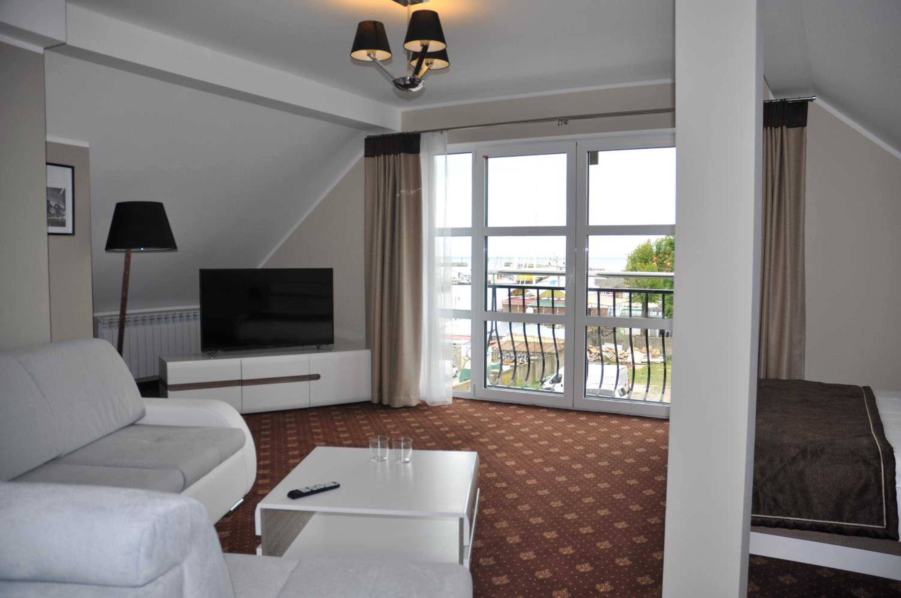 Indulge in elegantly decorated rooms at Hotel Morze, each equipped with modern amenities and some offering stunning sea views from private balconies.