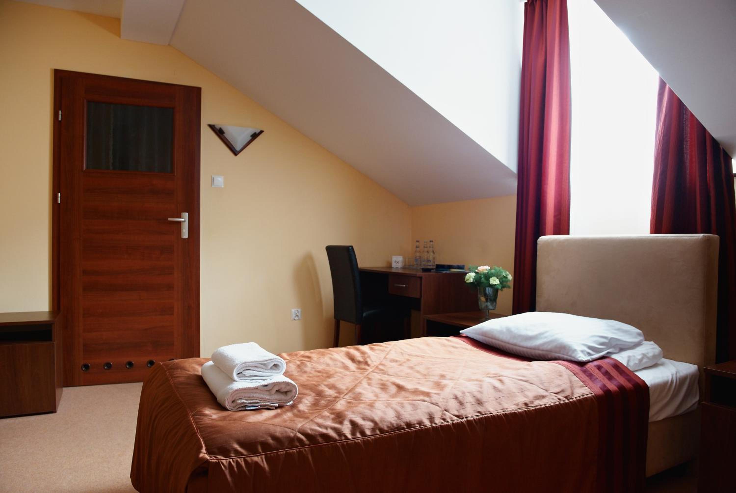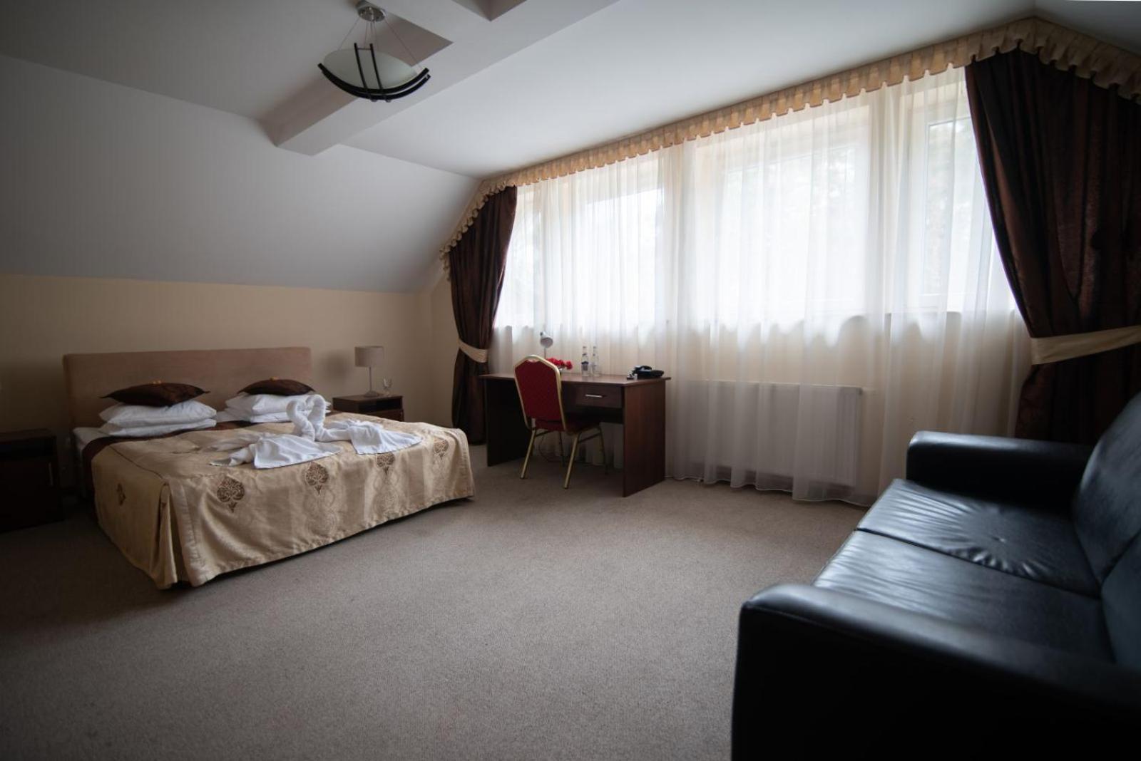 Escape to our hotel's classic rooms adorned in warm pastel hues, each equipped with modern amenities including free Wi-Fi and satellite LCD TV. Experience a peaceful stay in a tranquil setting just a short distance from the bustling city of Zamość.