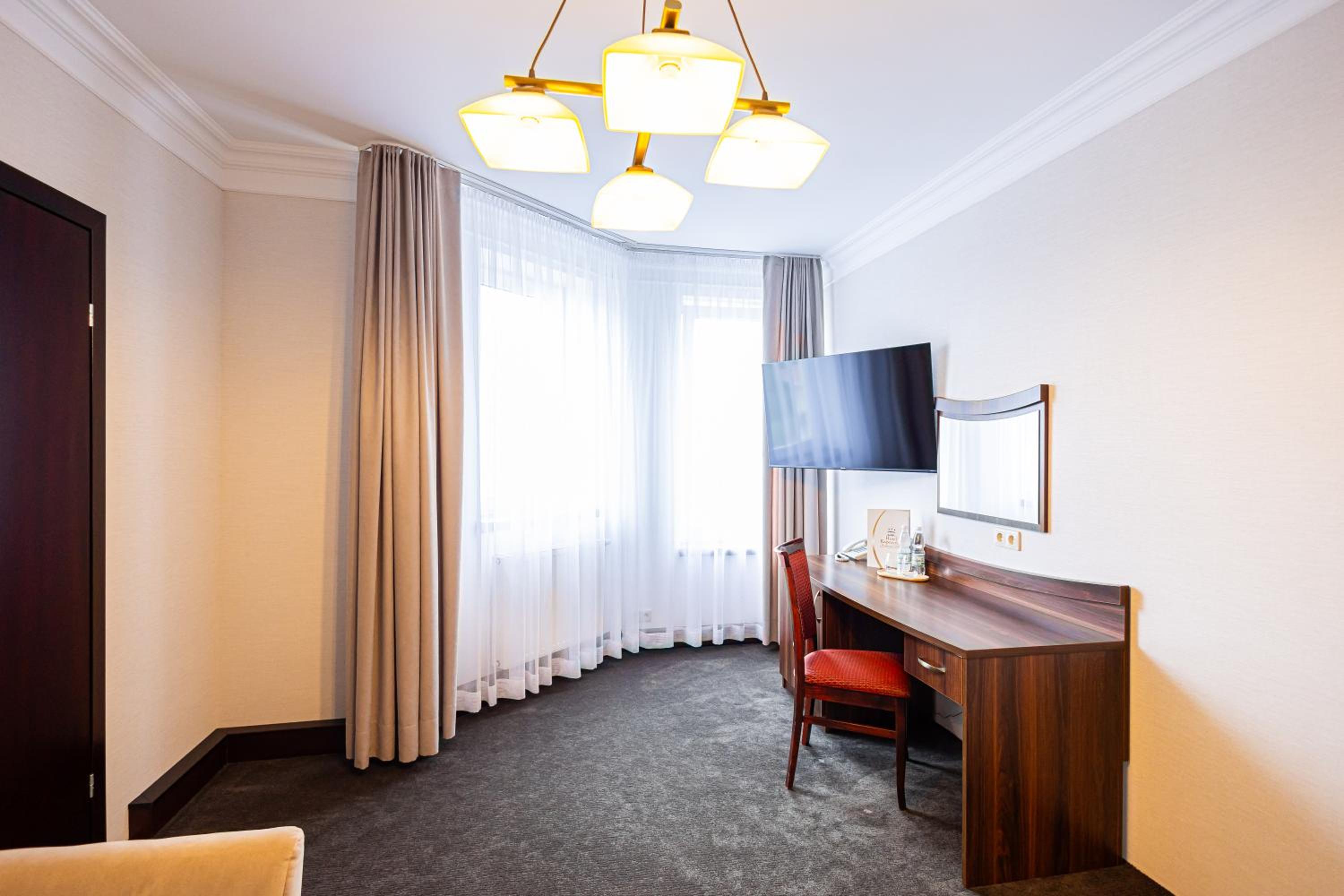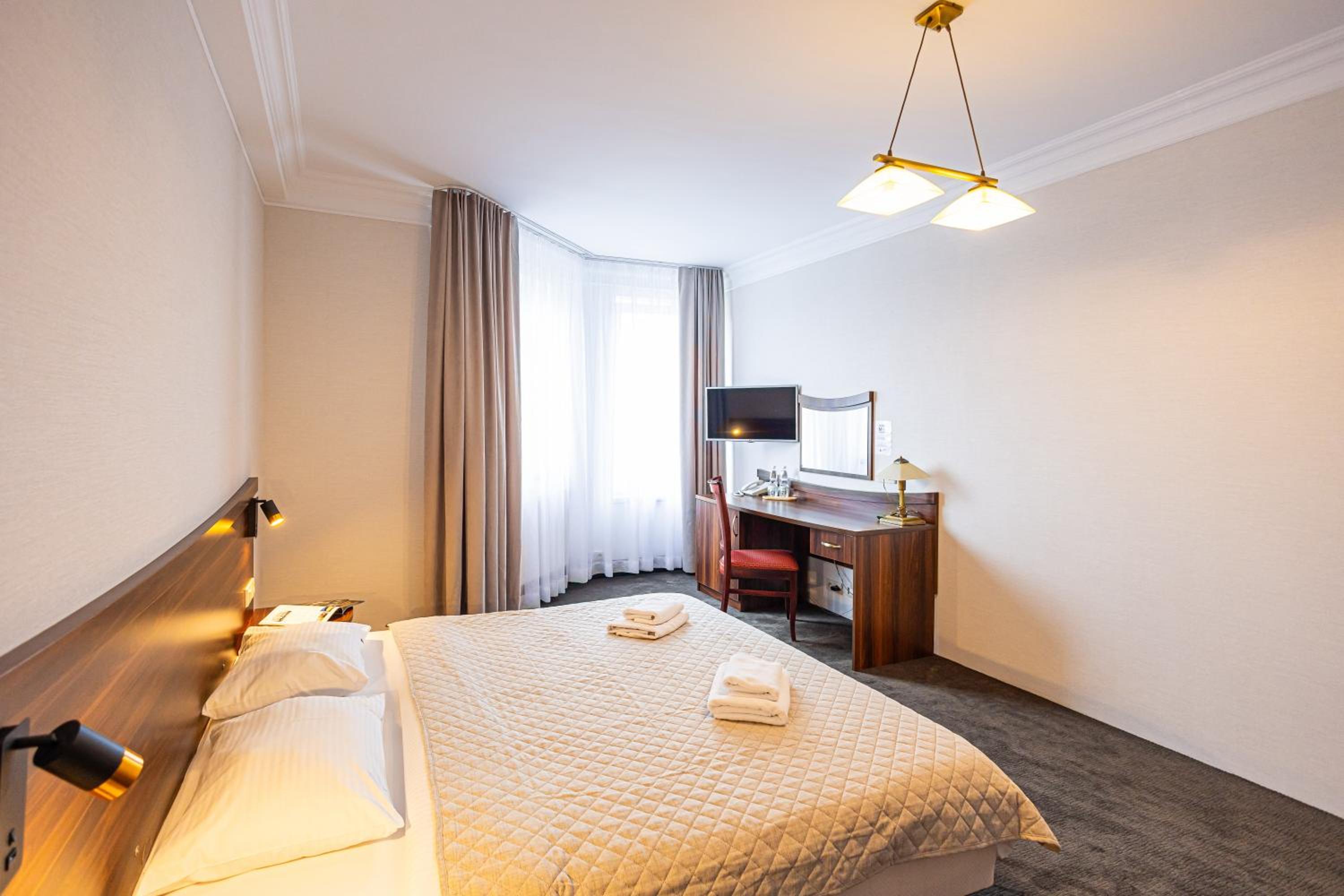 Die Ausstattung im Zimmer war sehr gut. Das Badezimmer war neu eingerichtet. Das Abendessen im Restaurant war sehr gut. Reichhaltige Speisekarte mit unterschiedlichen Speisen. Es gibt auch Bürger mit Beilagen.